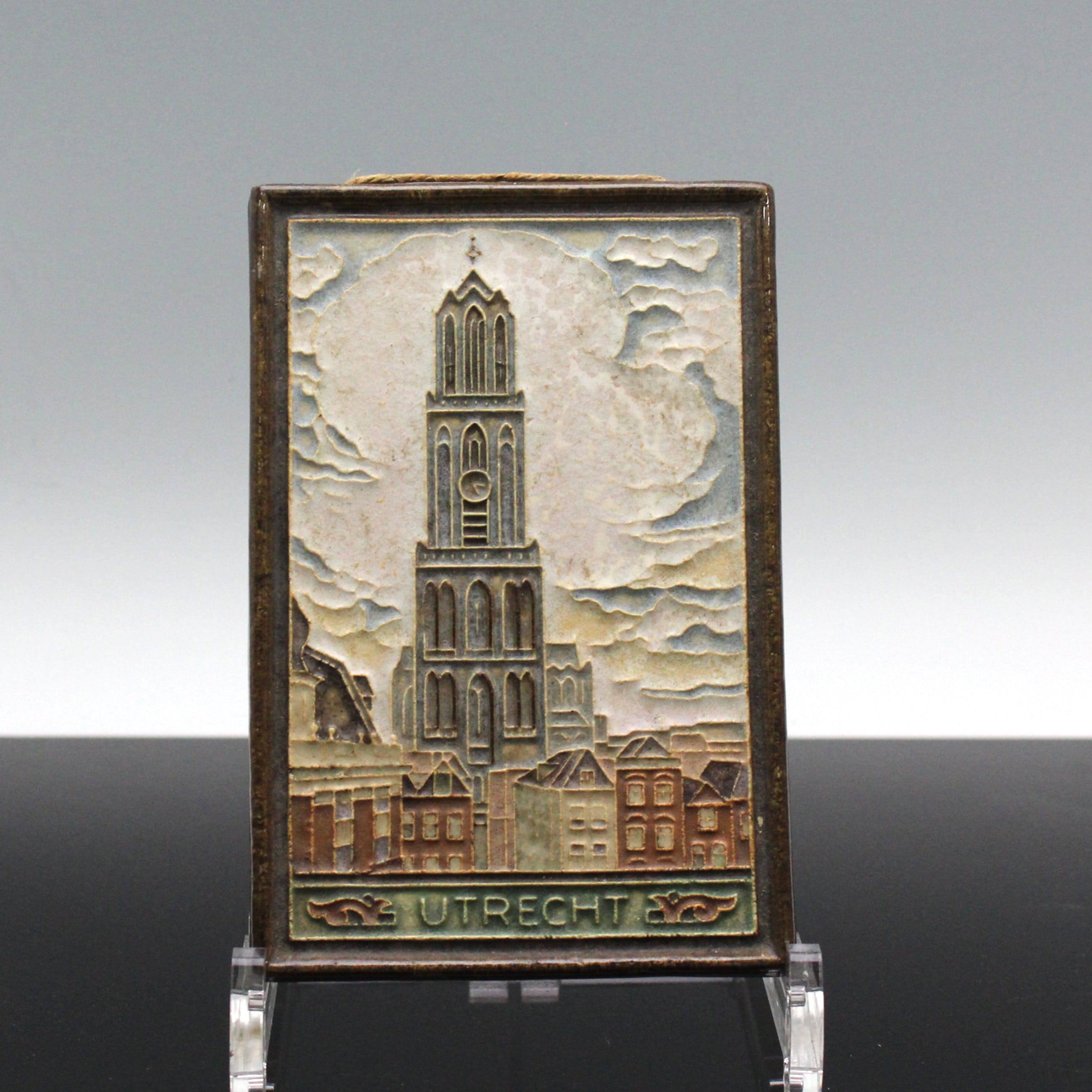 Een aardewerk tegel met afbeelding van de Dom Utrecht. Wordt aangetekend verstuurd.Ophalen in overleg mogelijk.