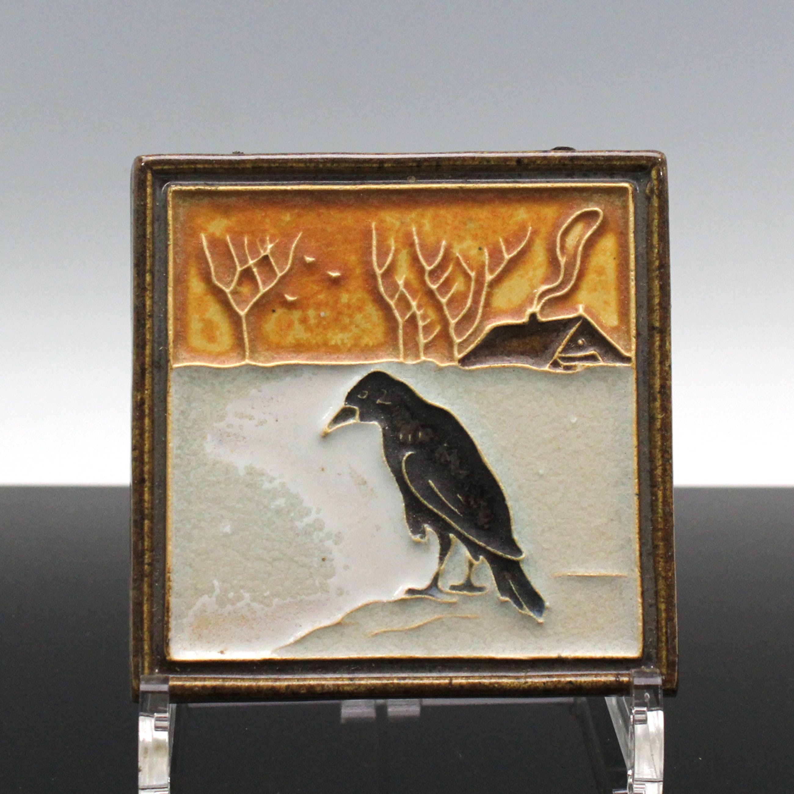 Een aardewerk wandtegel met kraai. Wordt aangetekend verstuurd.Ophalen in overleg mogelijk.