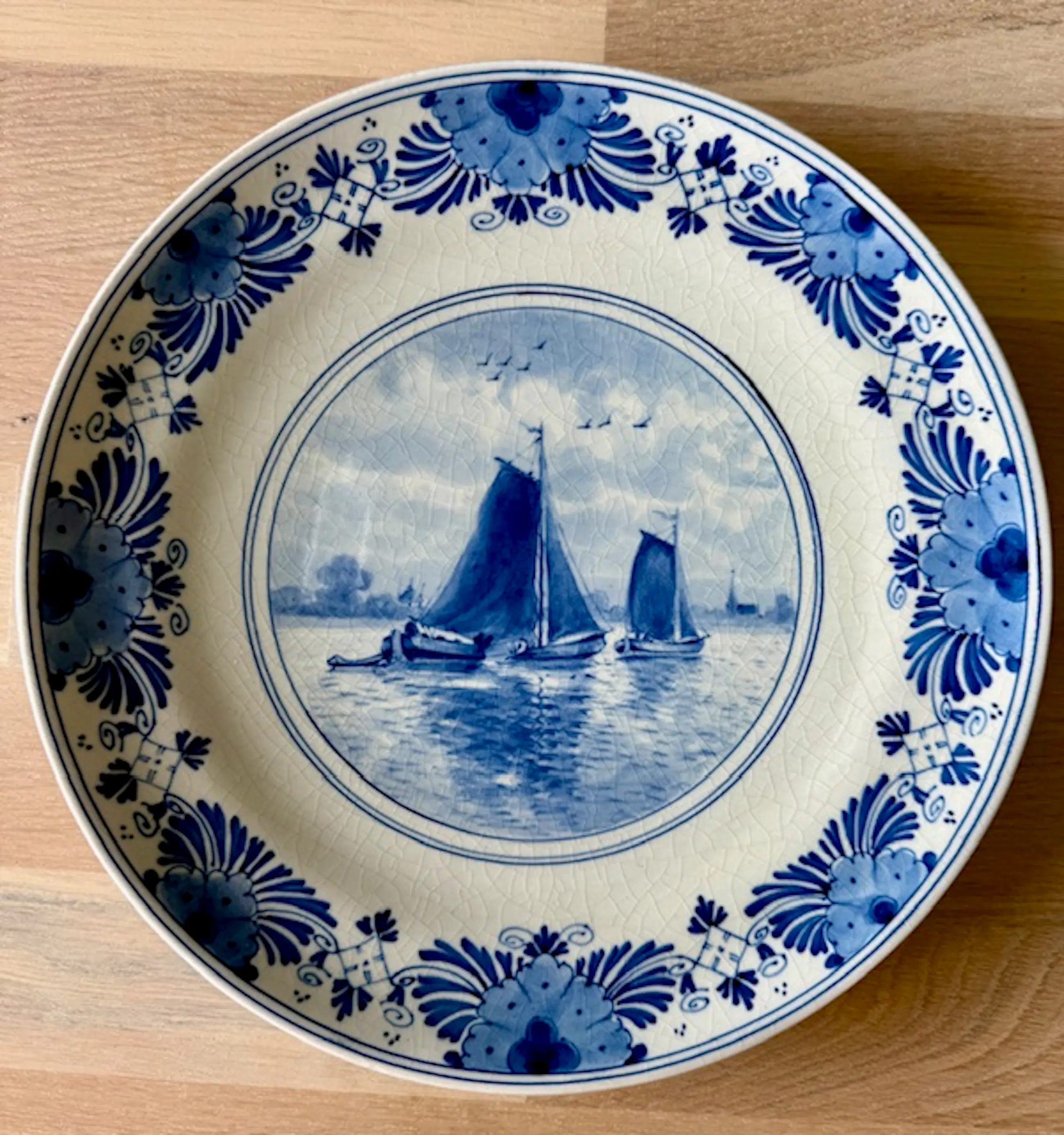 Porceleyne Fles - Sierbord met sloep en zeilbootjes