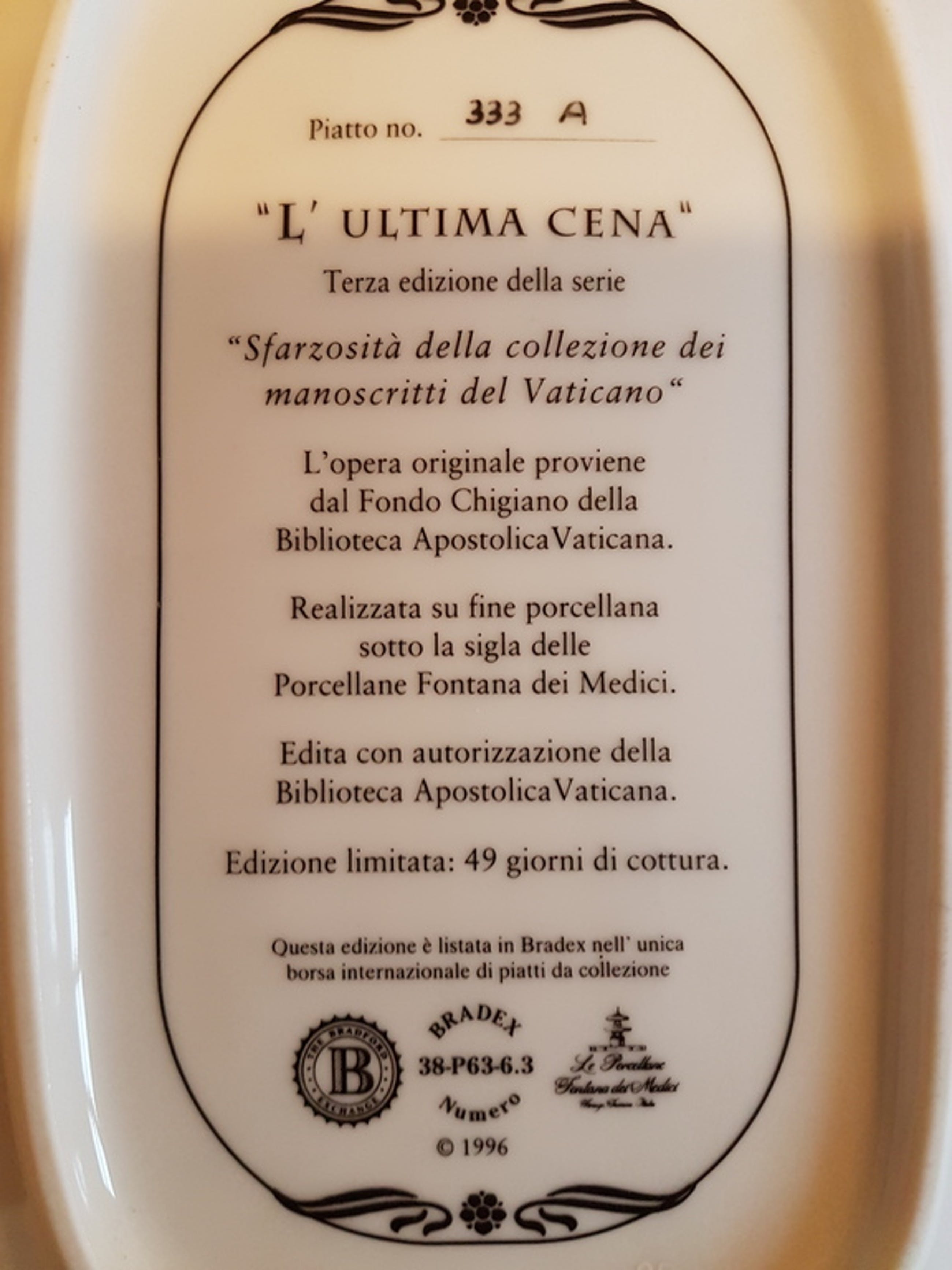 Porseleinen bord met de hand beschilderd-I Grandi Tesori del Vaticano-Ultima Cena