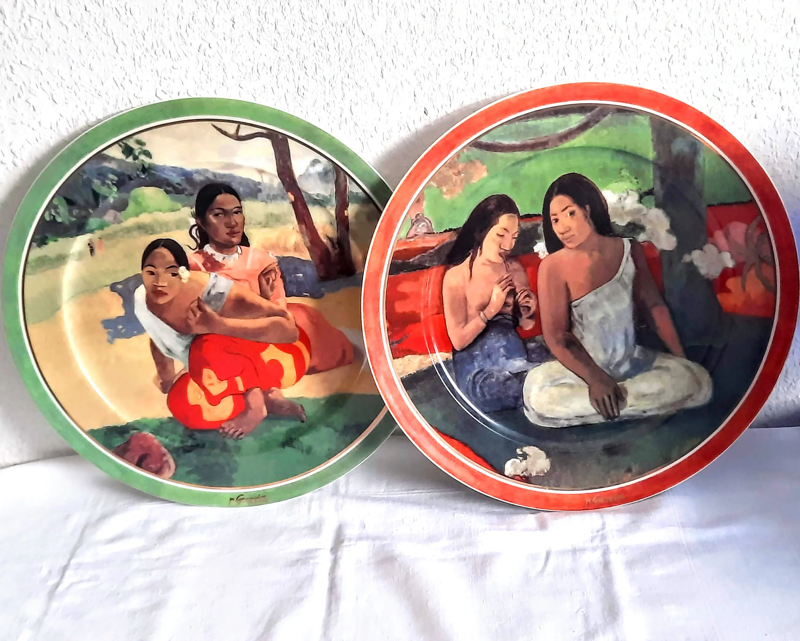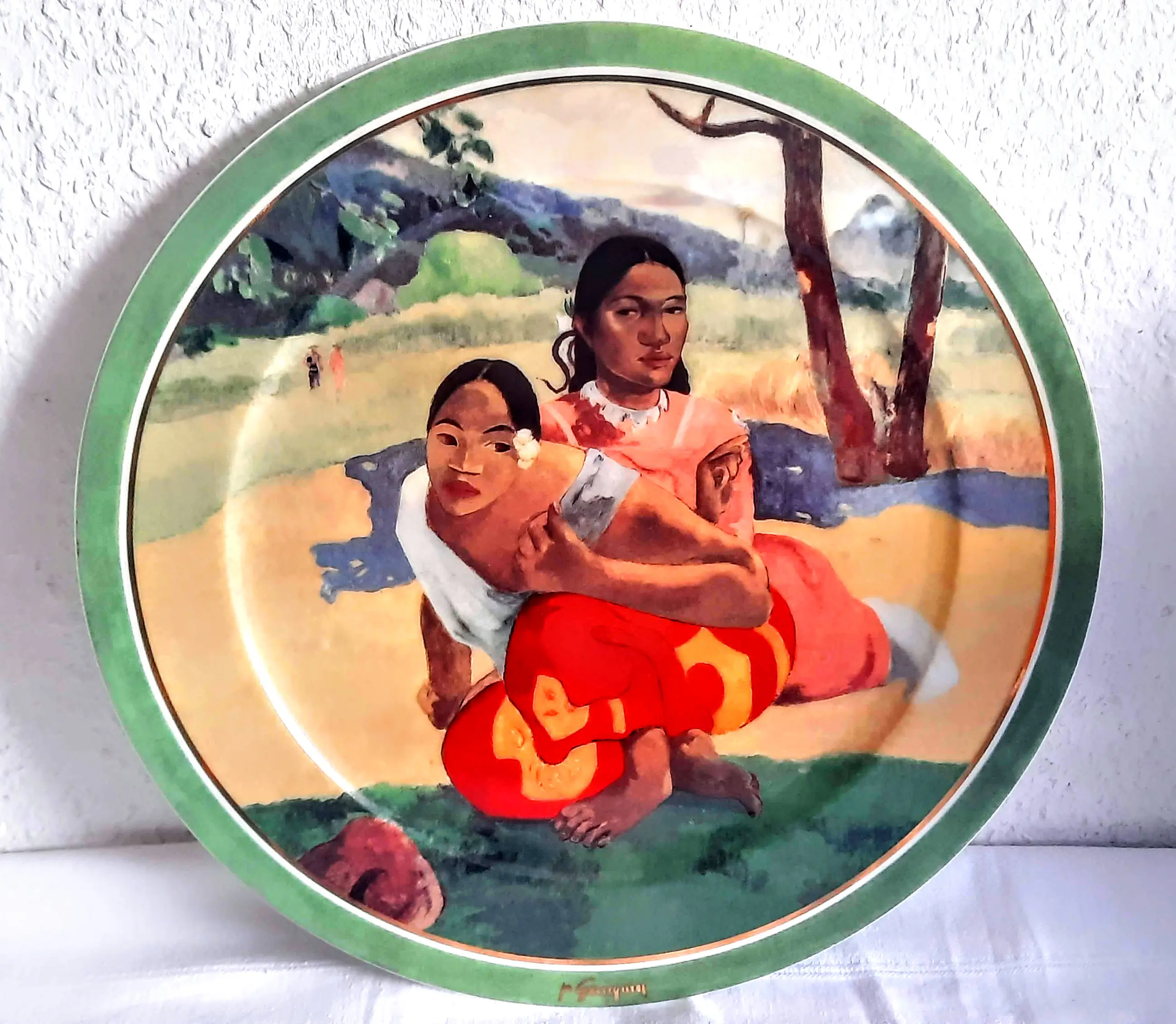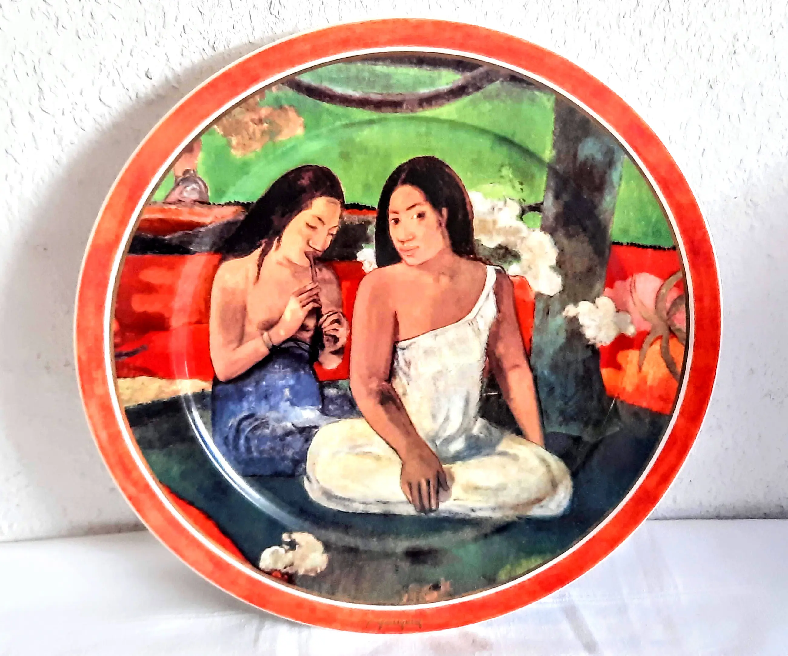 Het wandbord is 3 cm hoog, heeft een diameter van 31 cm en weegt 1190 gram. Het bord is aan de voorzijde gesigneerd door Paul Gauguin, aan de achterzijde voorzien van het Goebel-merk en is nummer 813 van een gelimiteerde oplage van 2000 stuks.
