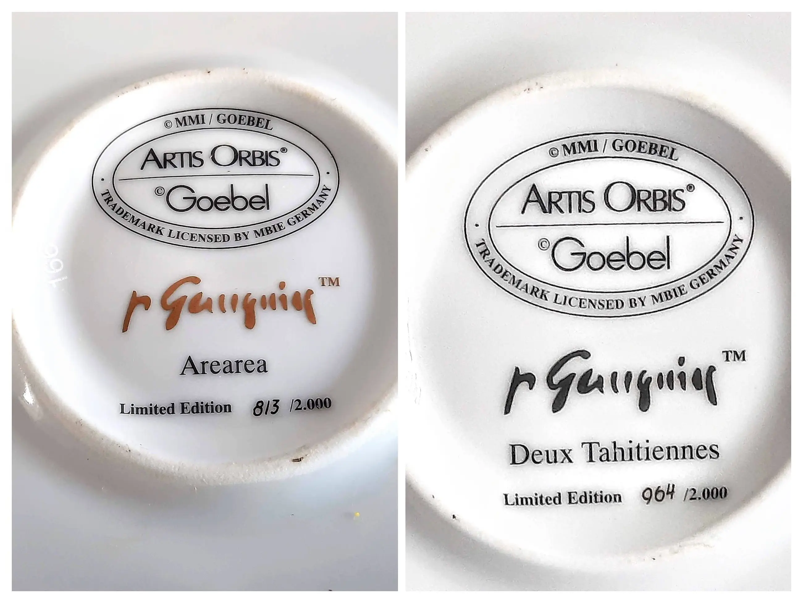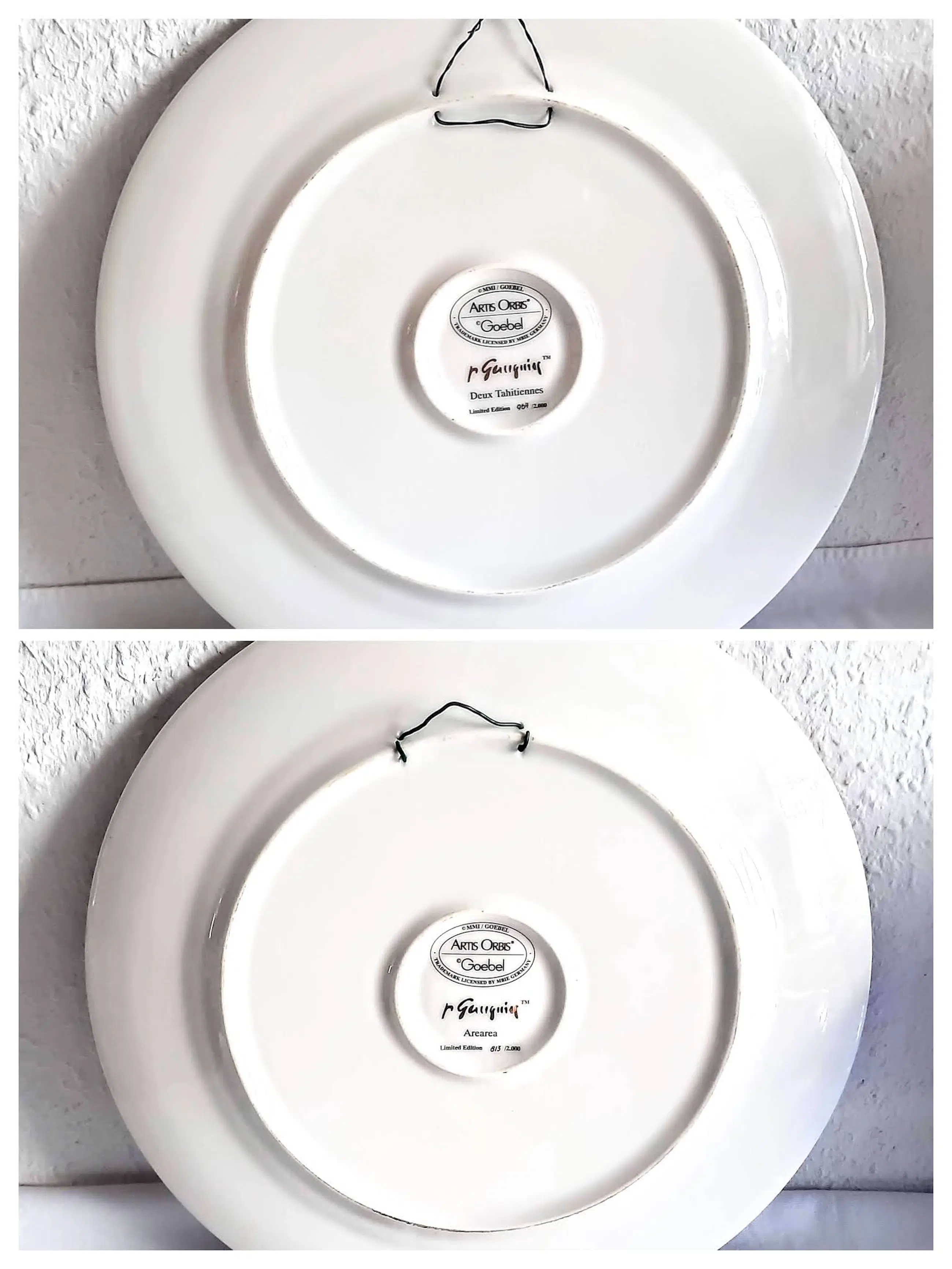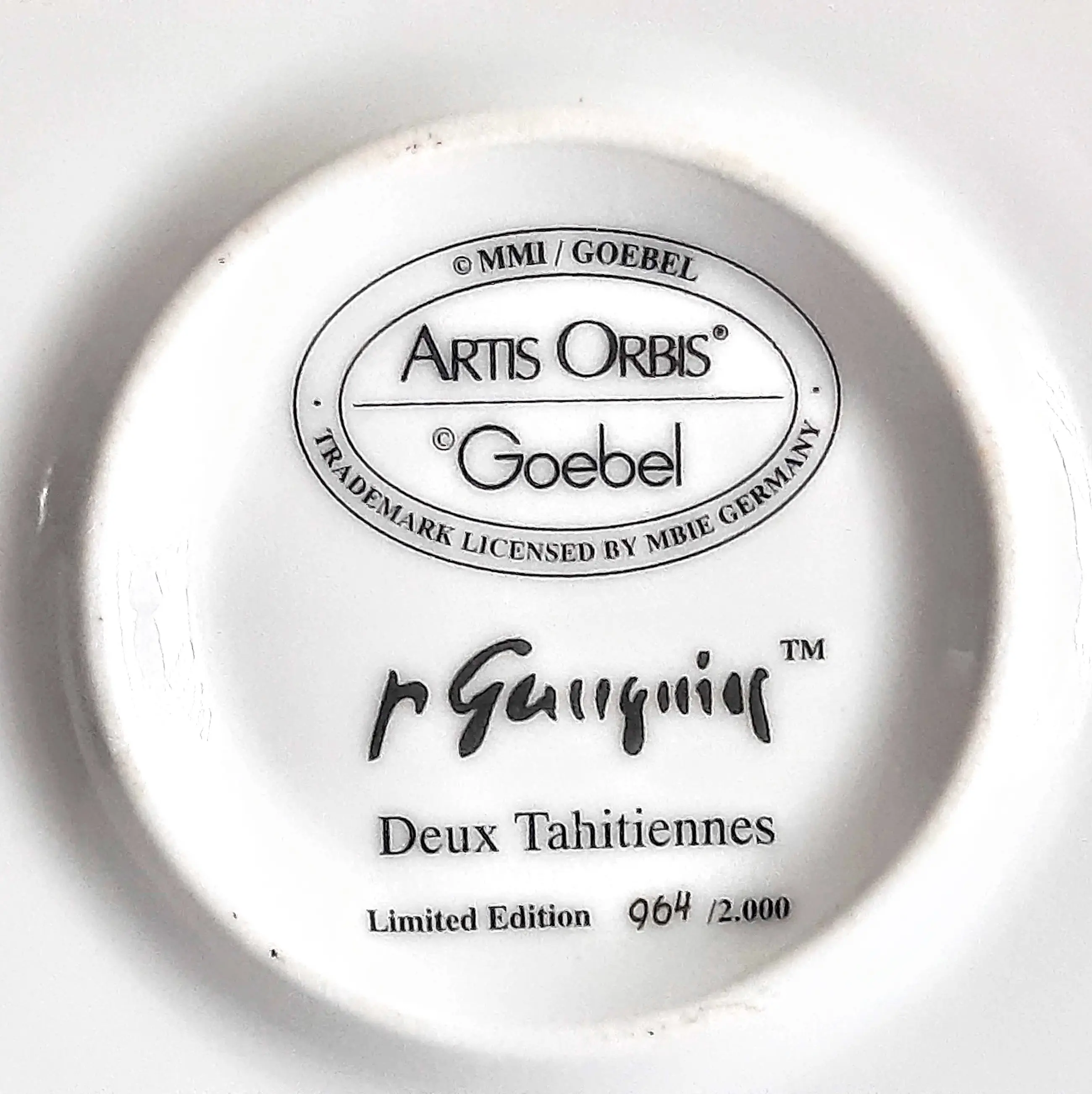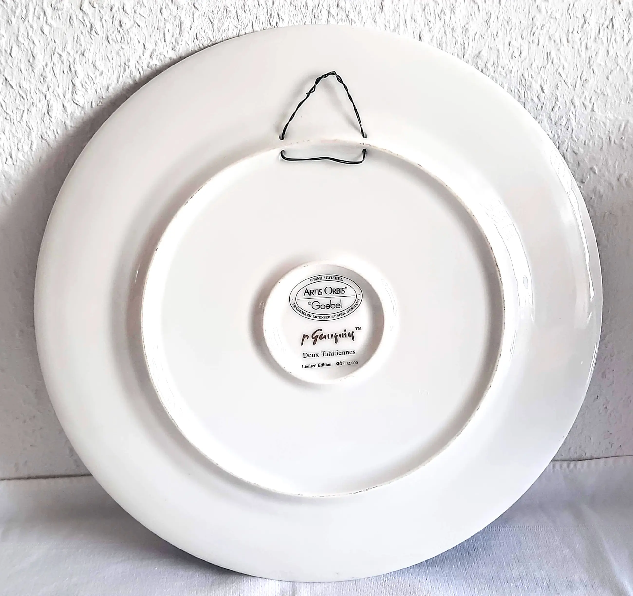 Het wandbord is 2 cm hoog, heeft een diameter van 32 cm en weegt 1200 gram. Het bord is aan de voorzijde gesigneerd door Paul Gauguin, aan de achterzijde voorzien van het Goebel-merk en is nummer 964 van een gelimiteerde oplage van 2000 stuks.