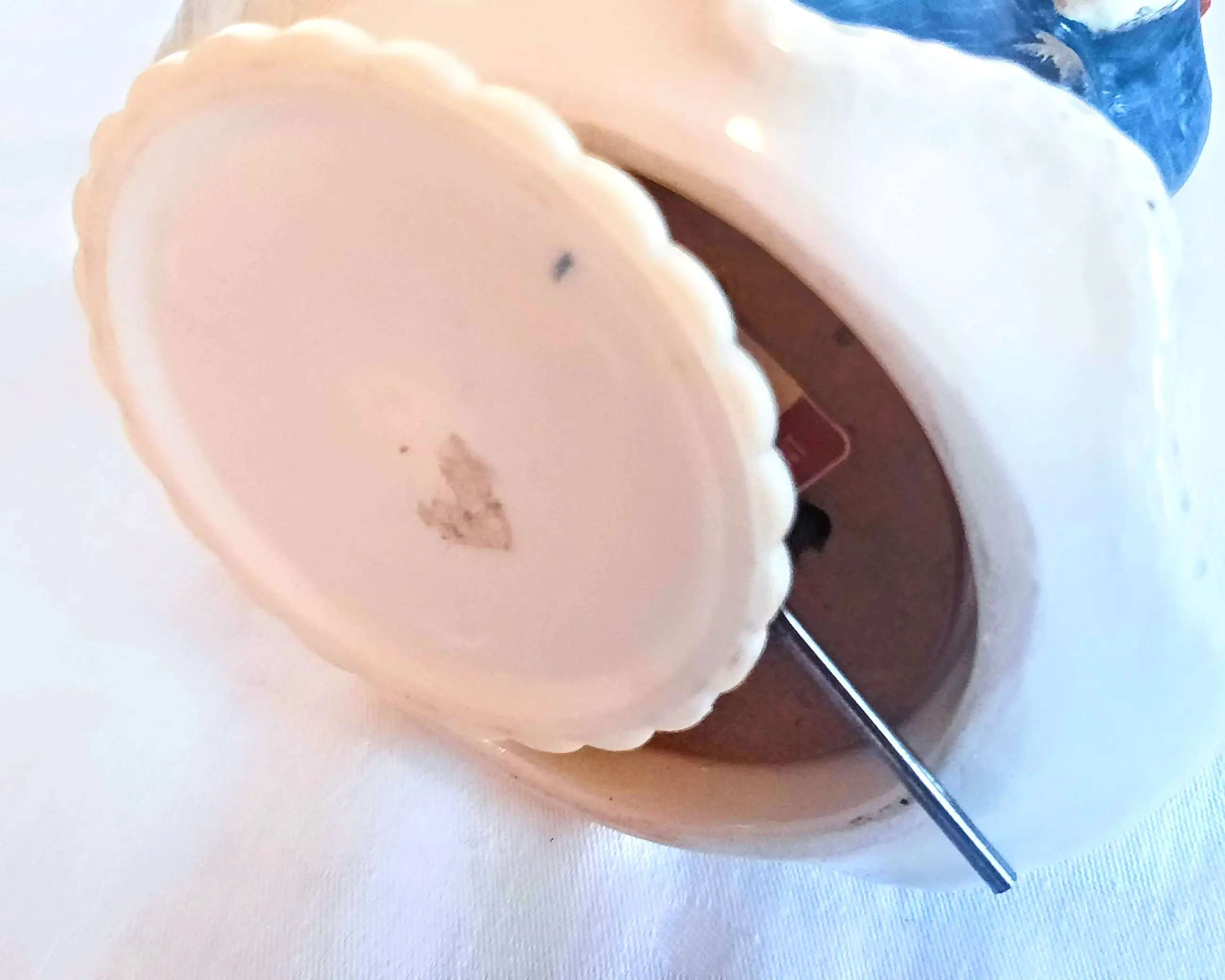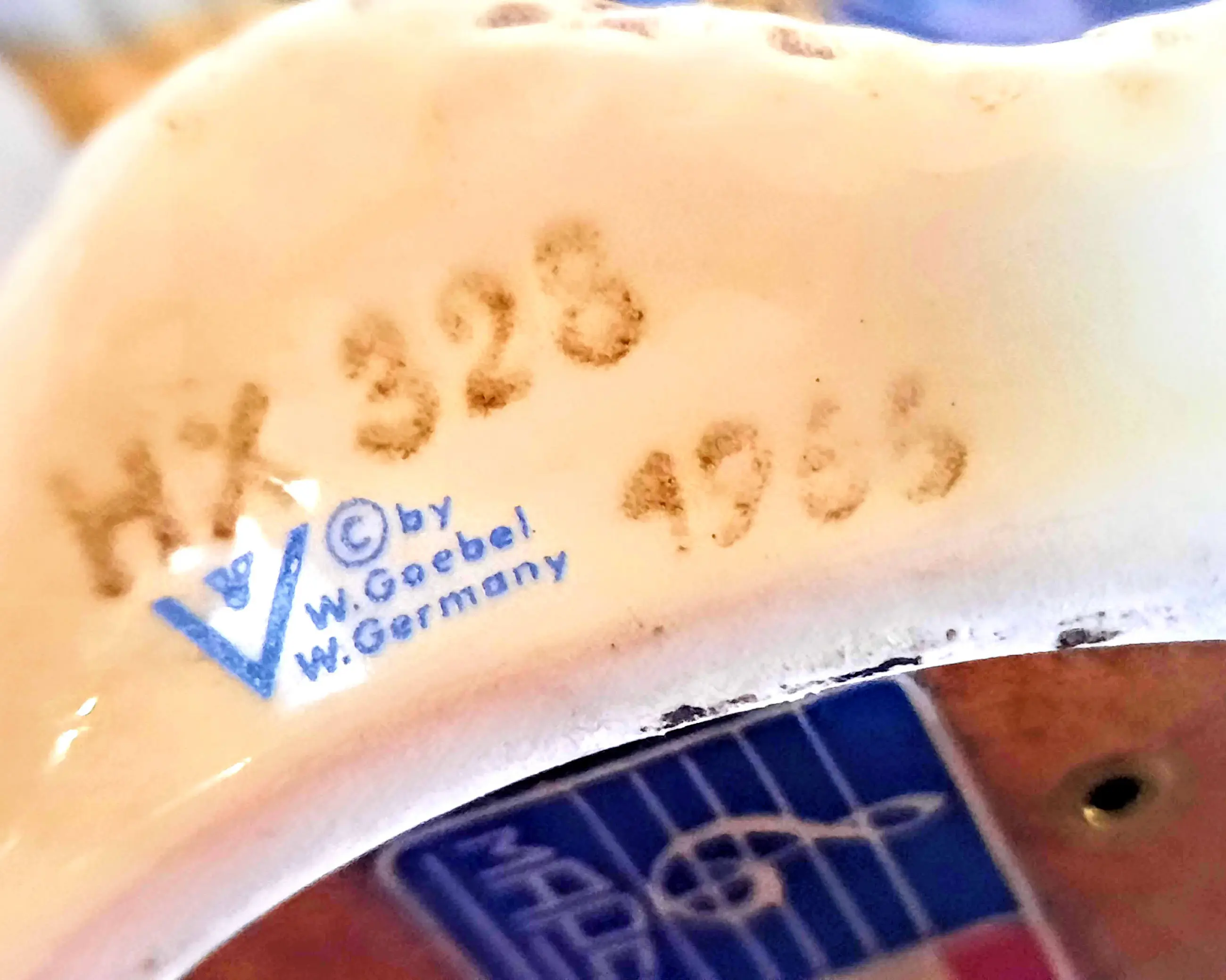 Het engelbeeldje op de standaard is voorzien van het Goebel-merkstempel en de aanduiding HX 328 1965. Ook op het muziekdoosje zit een merksticker van Swiss Musical Movement.