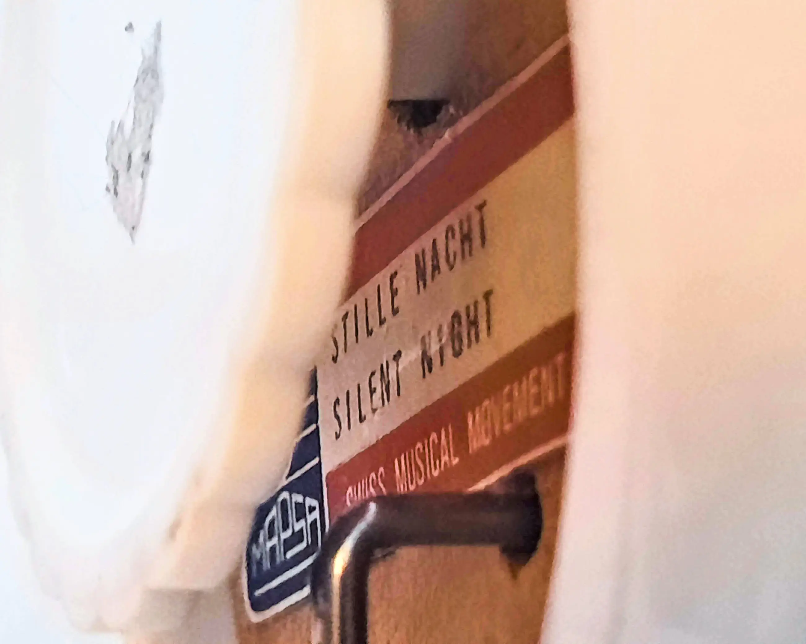 Het muziekdoosje speelt Stille Nacht, Heilige Nacht en het figuurtje draait op de melodie. Speelduur 3-4 minuten.