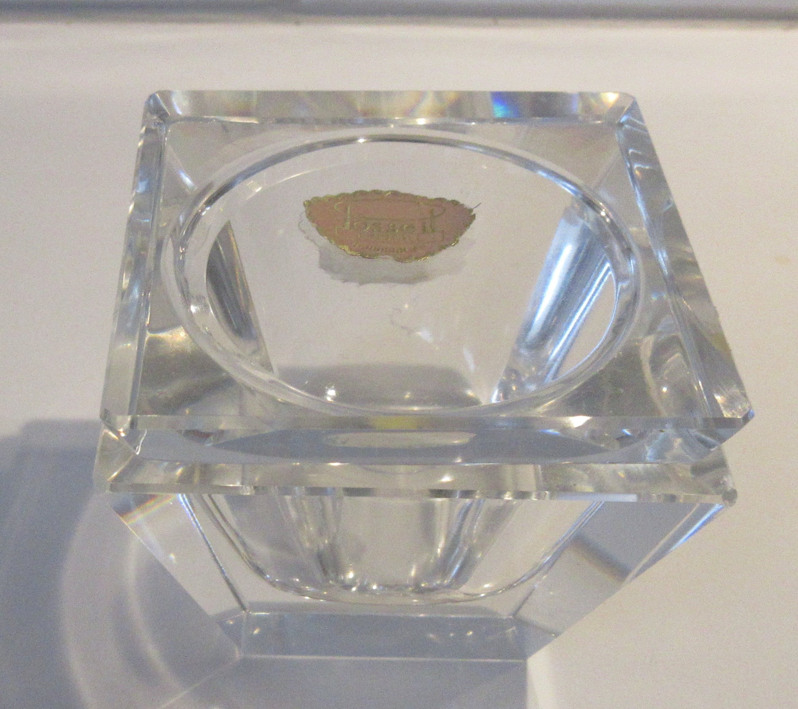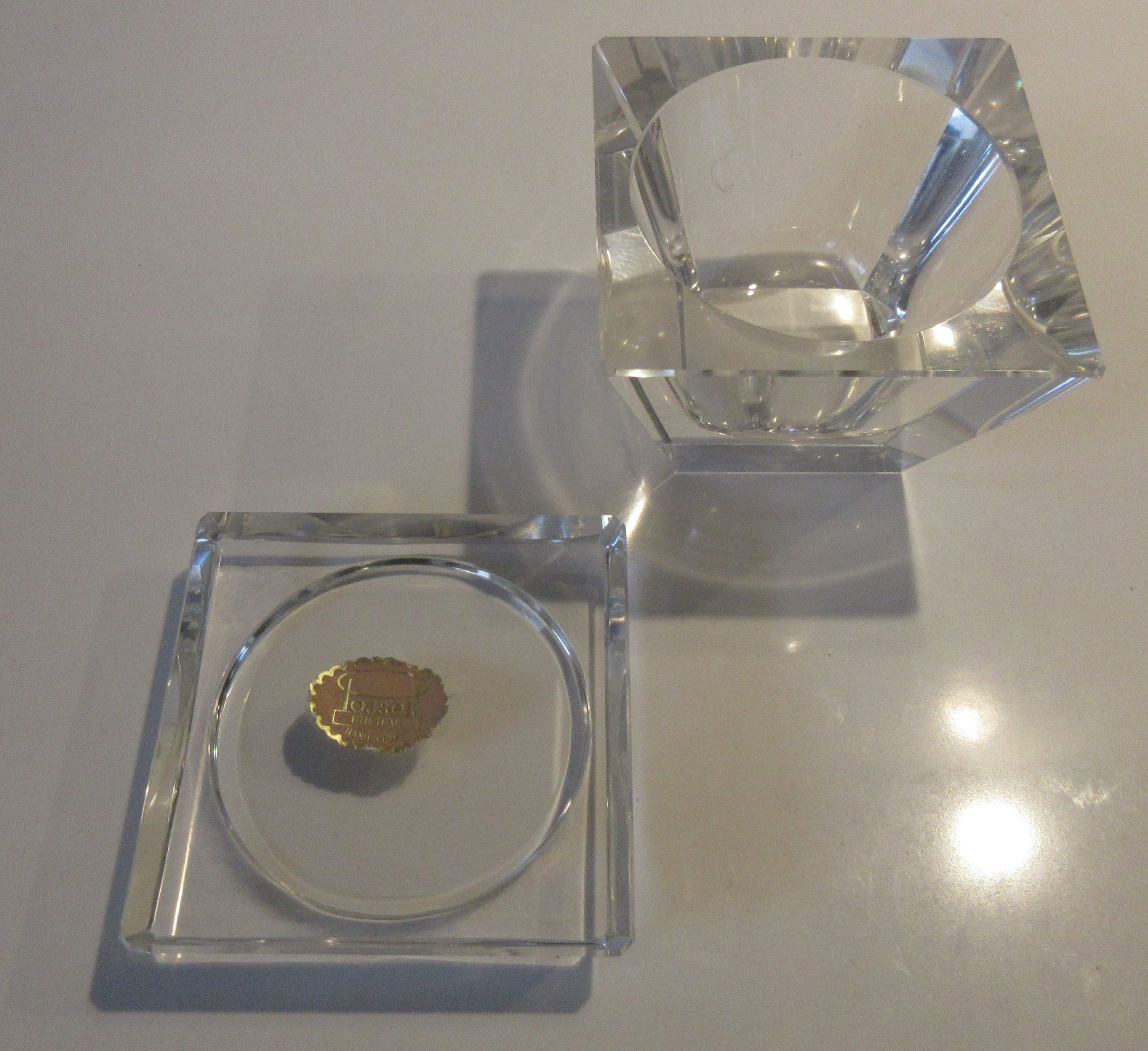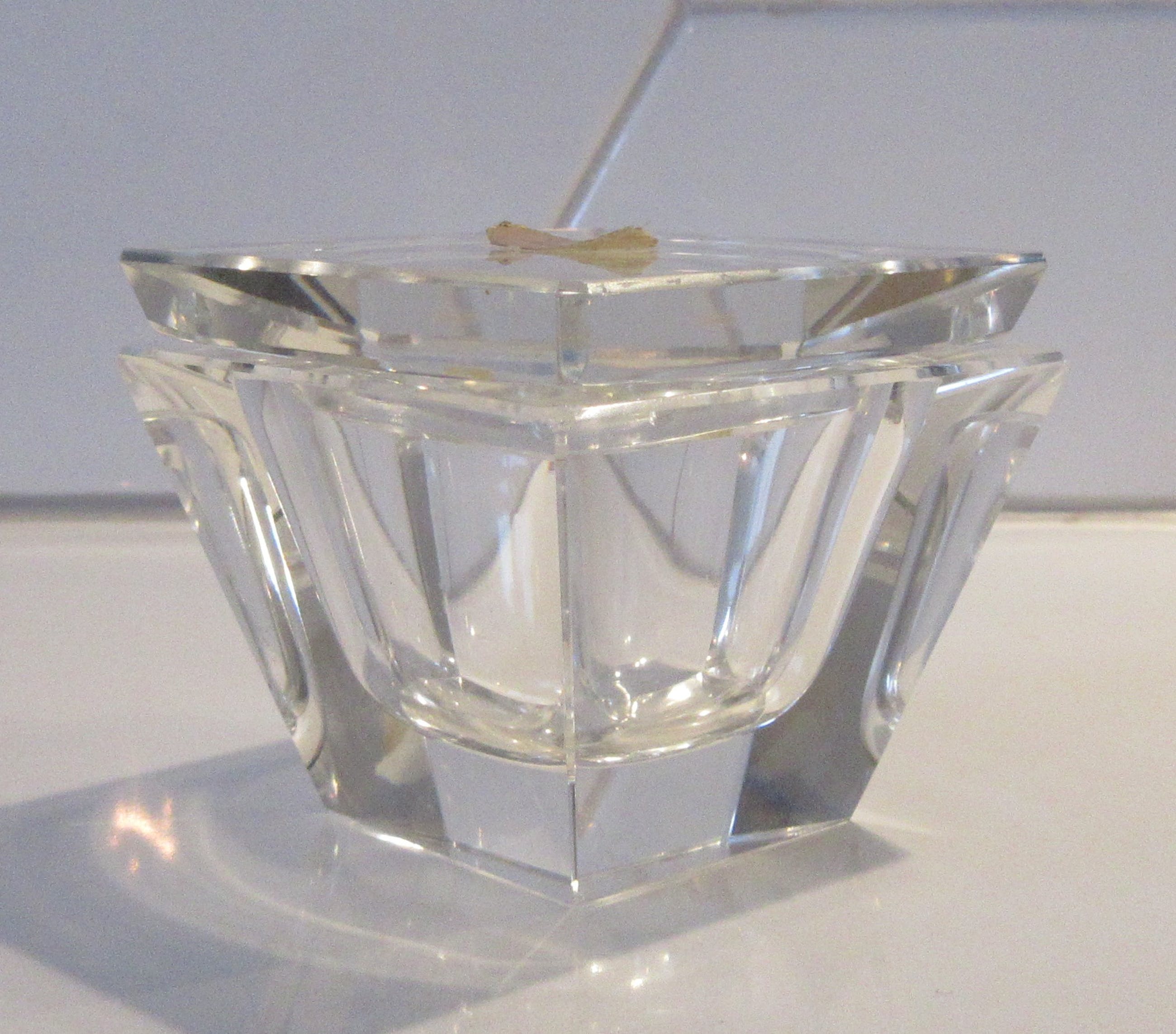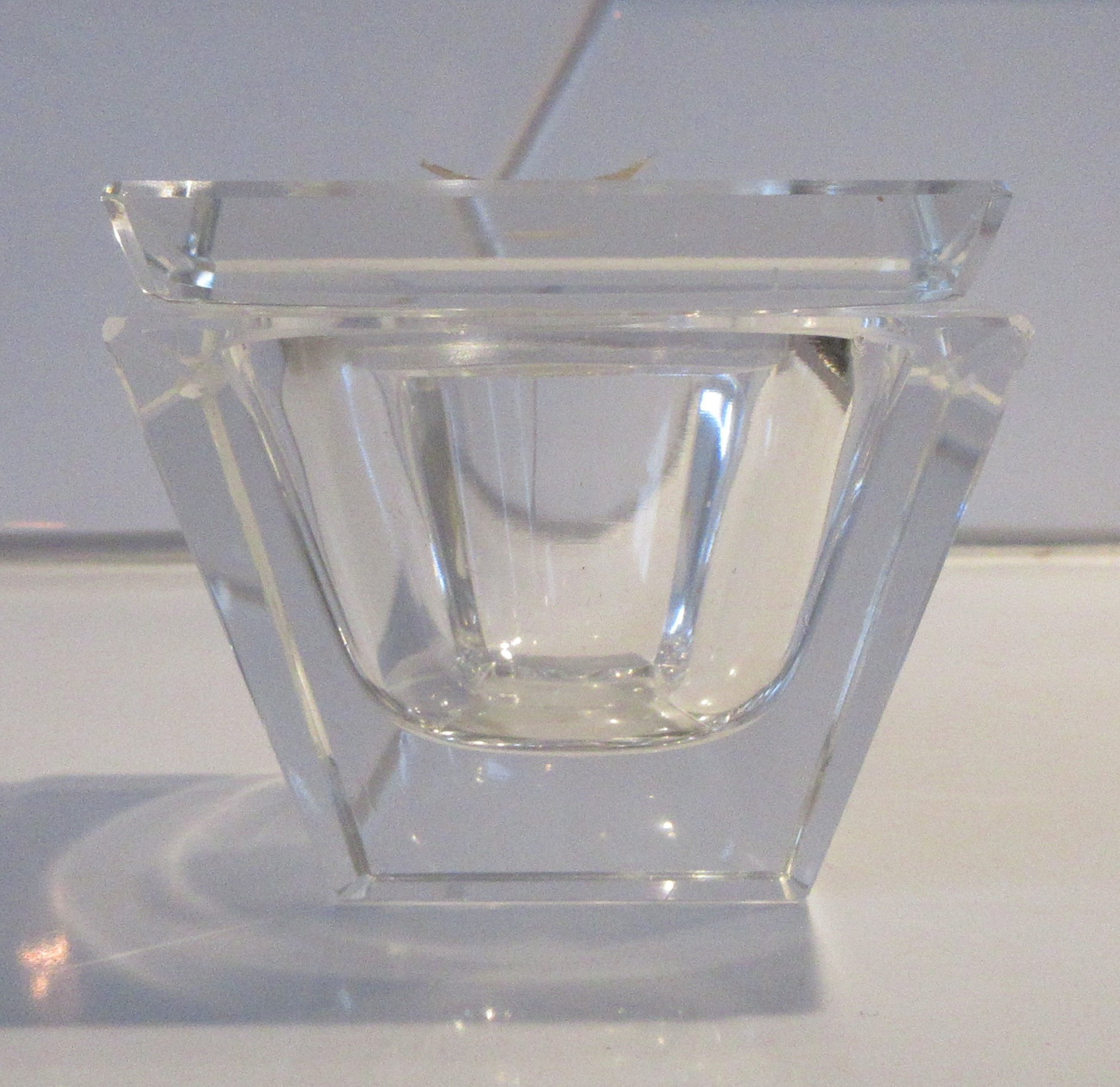 Kristrallen inktpot met deksel van Posselt uit Duitsland. In prima onbeschadigde conditie. Gemerkt met een sticker bovenaan de deksel.