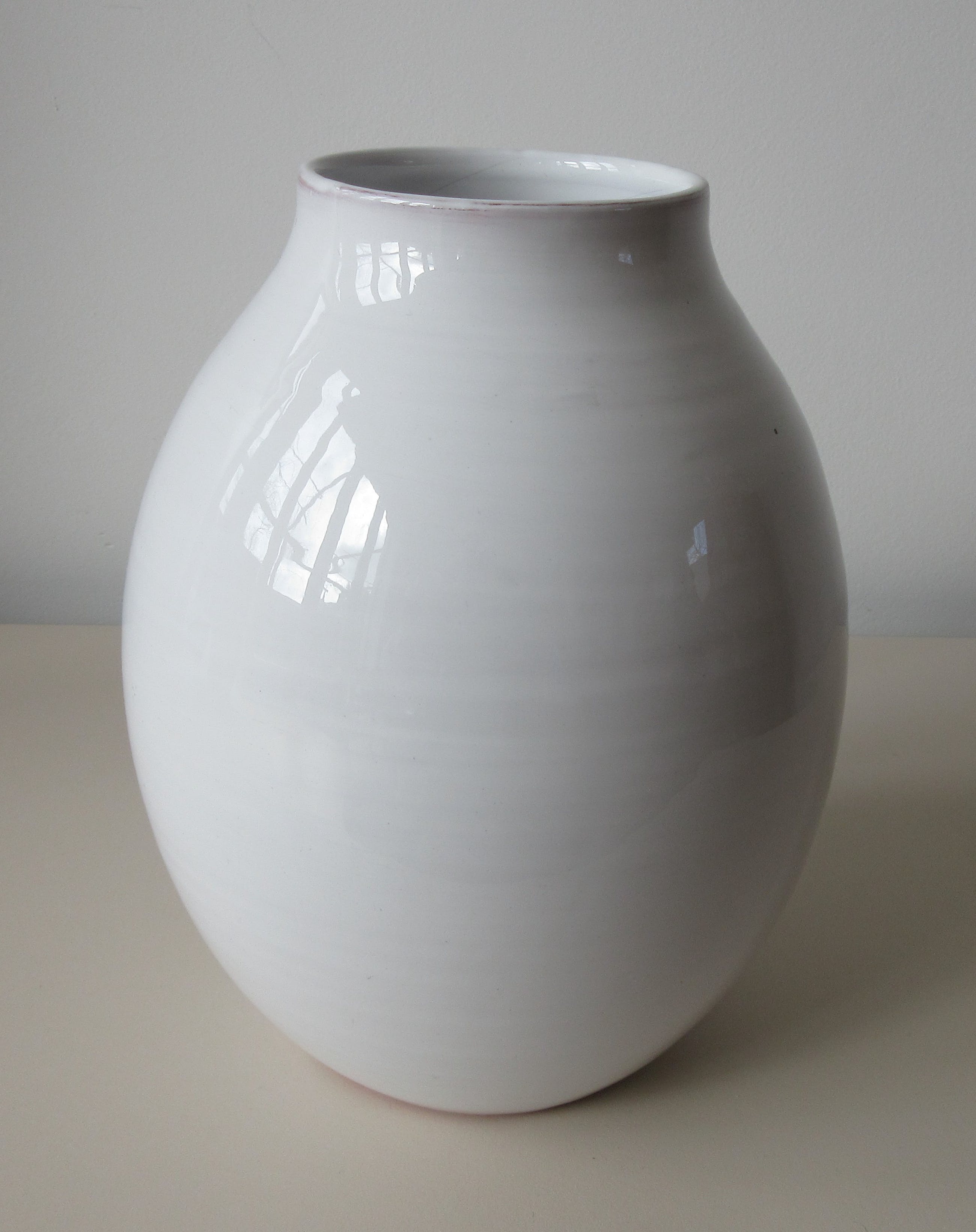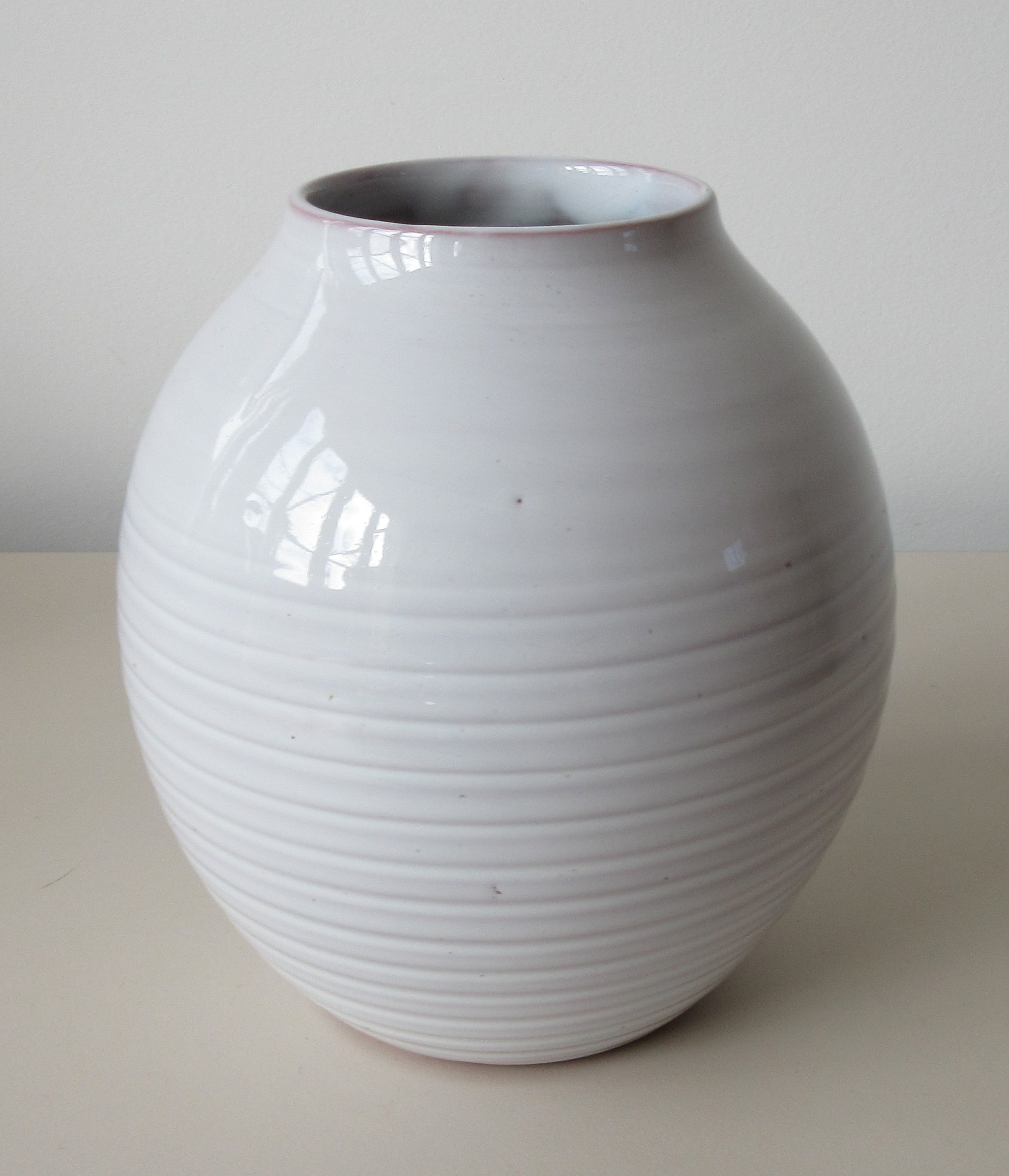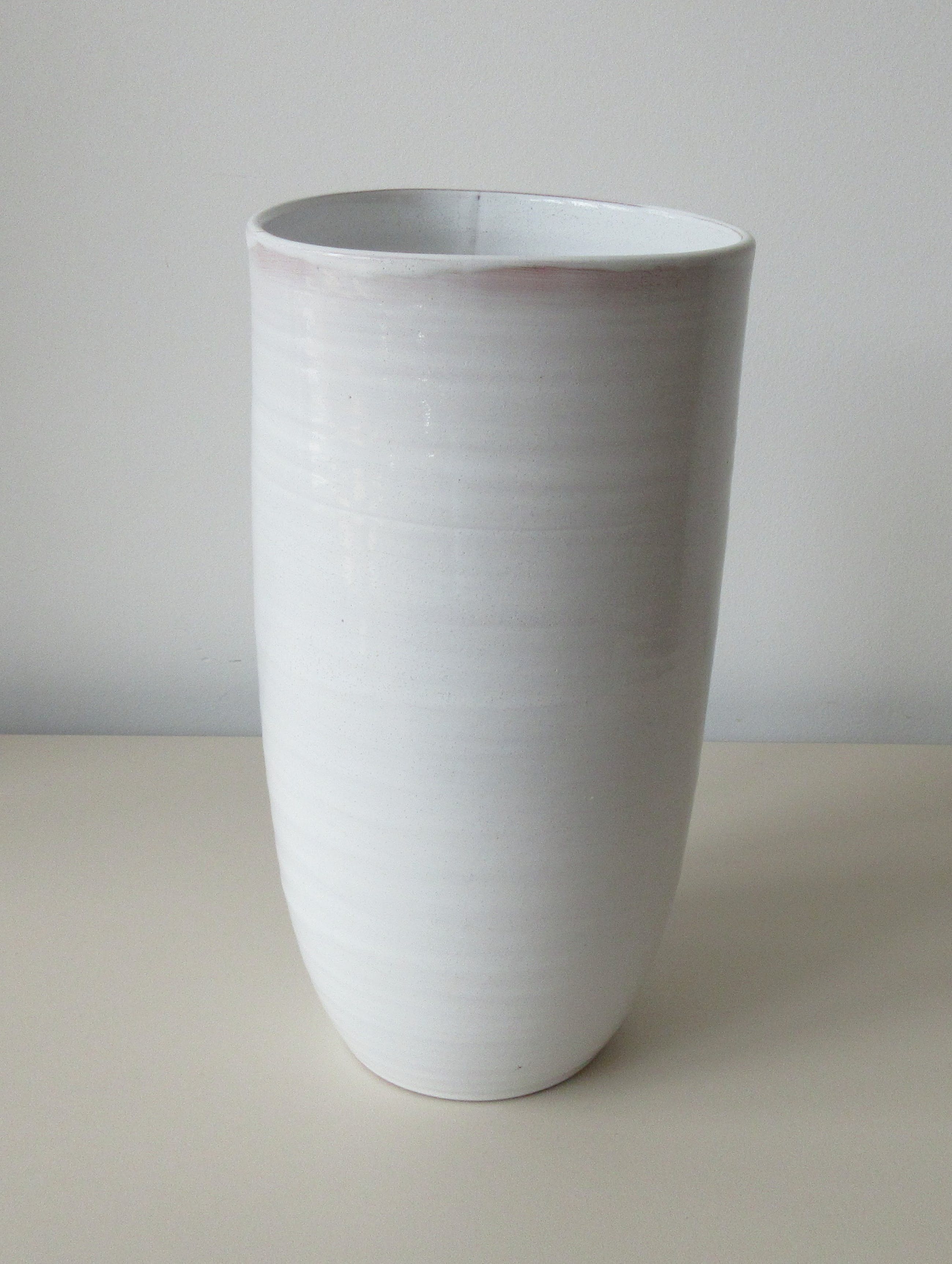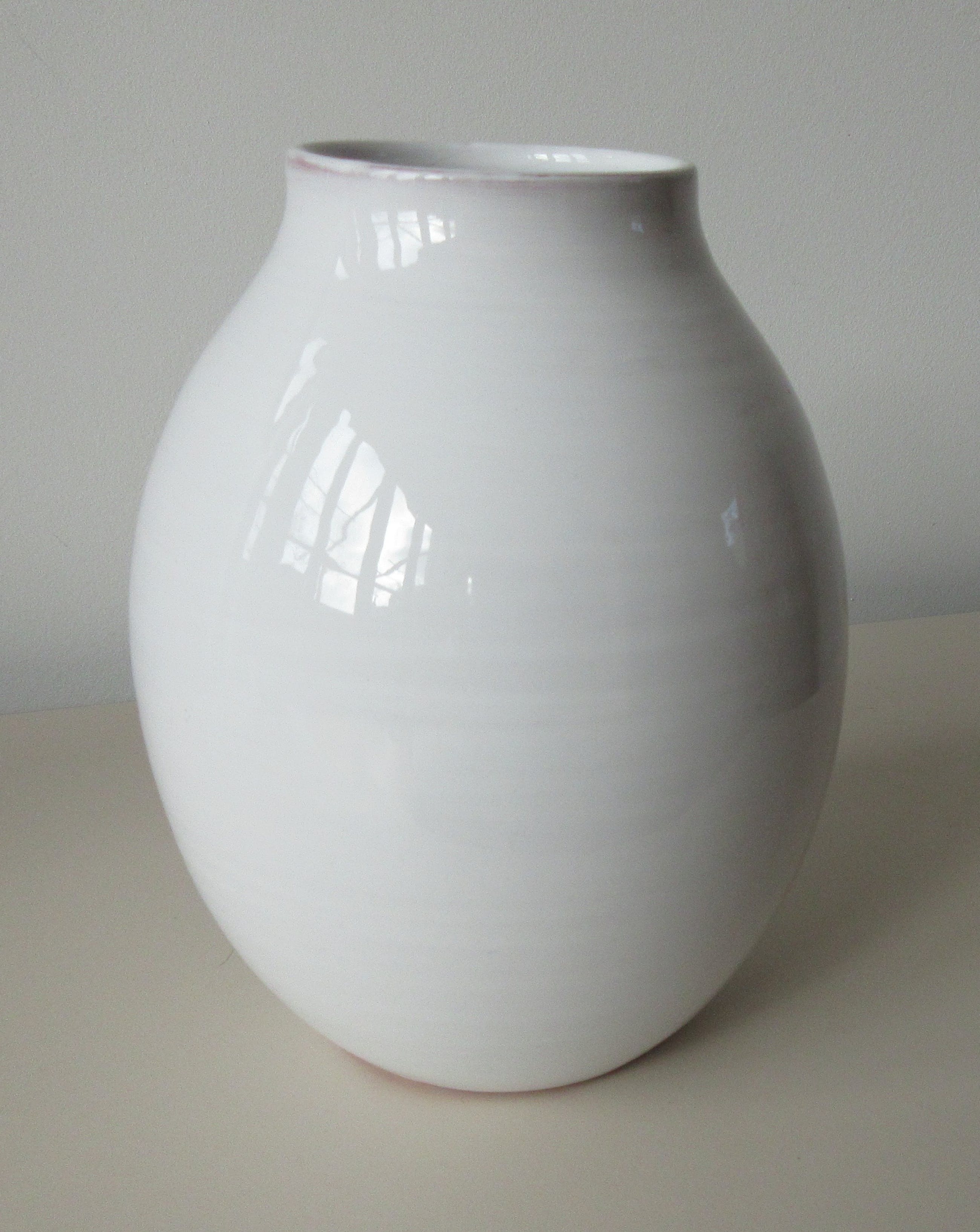 Drie stijlvolle wit geglazuurde Kunstaardewerk vazen modellen 306, 206 en 205 van De Nagtegaal uit Utrecht. De grootste vaas model 306 heeft een haarlijntje en de kleinste vaas model 205 heeft een minimale glazuur flinter aan de bovenrand van de vaas. Overall zijn de drie in zeer goede gebruikte conditie. Alle drie voorzien van ingedrukt merk en ingekrast modelnummer.