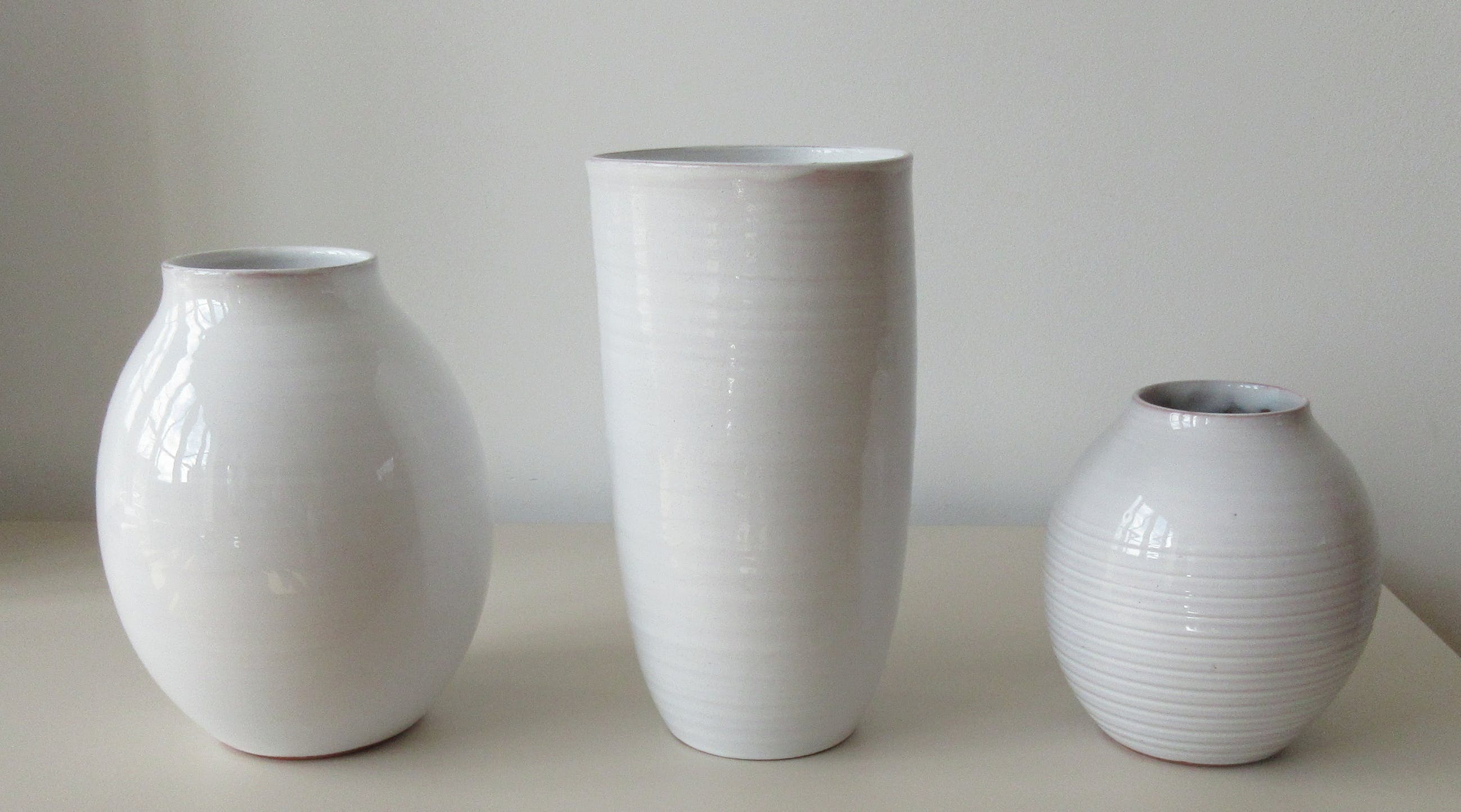 De grote vaas heeft een kleine haarlijn, de kleinste vaas een minimale glazuurflinter op de bovenrand