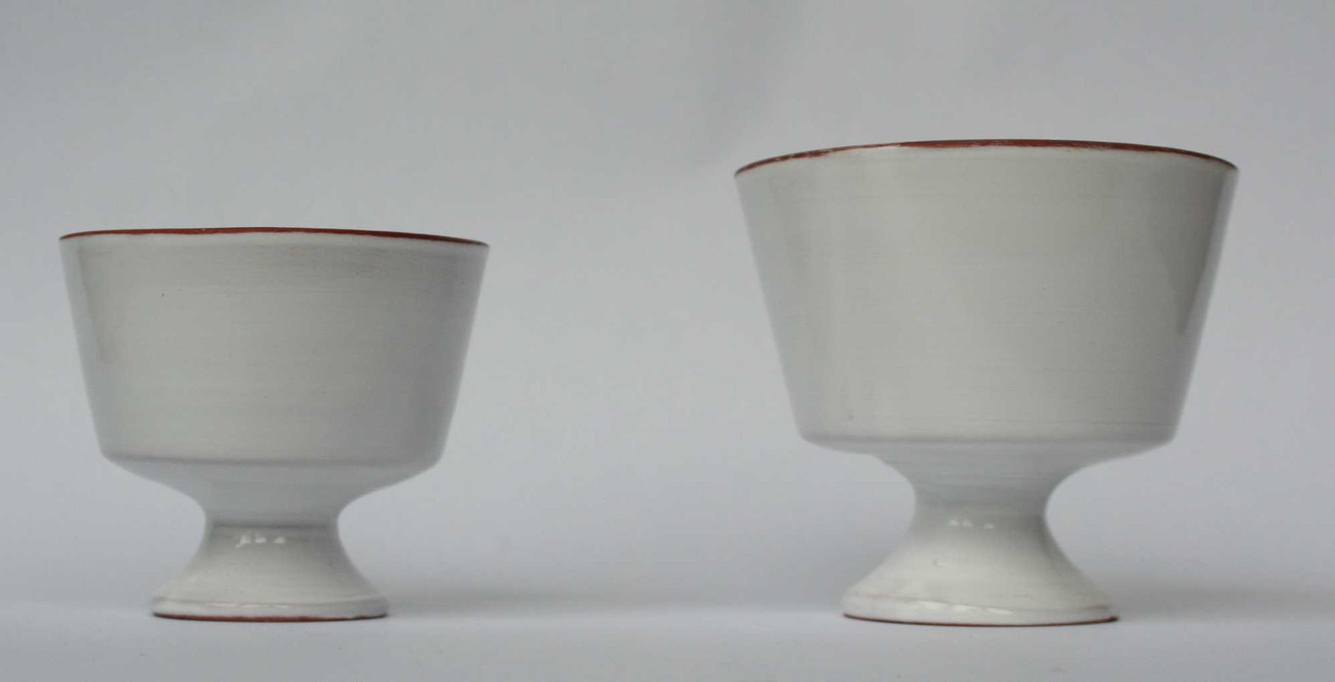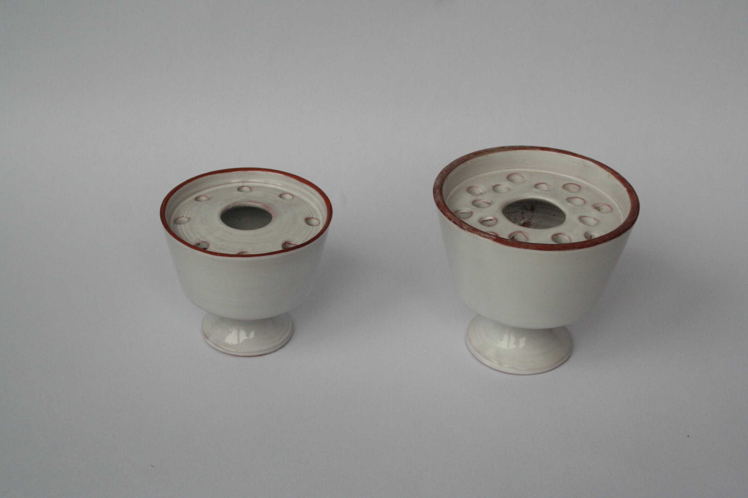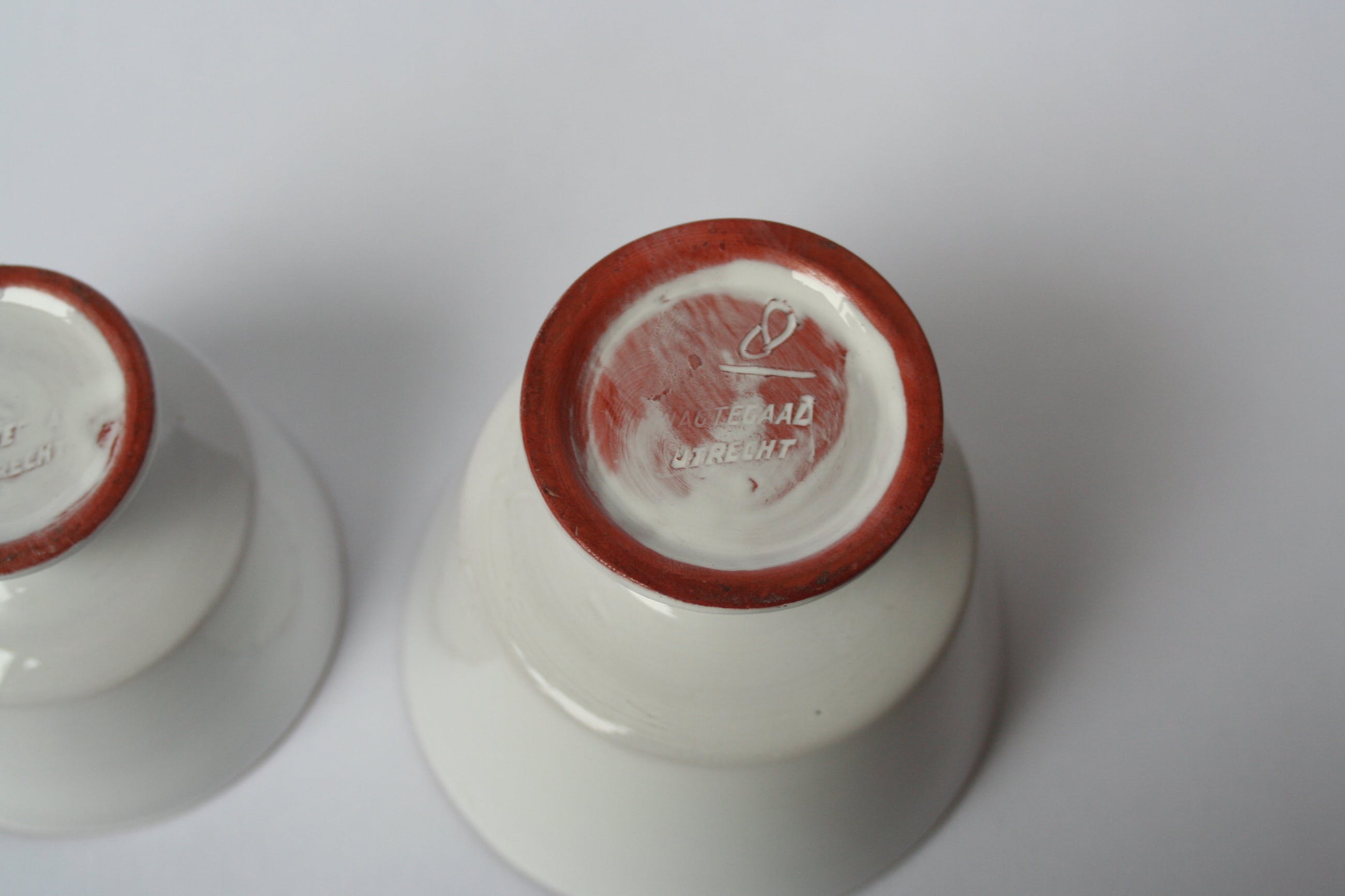 2 vaasjes van 10 diameter van 11. Kleinere van 8,5 hoog en 9,5 diameter. Gemerkt met Nagtegaal Utrecht.
