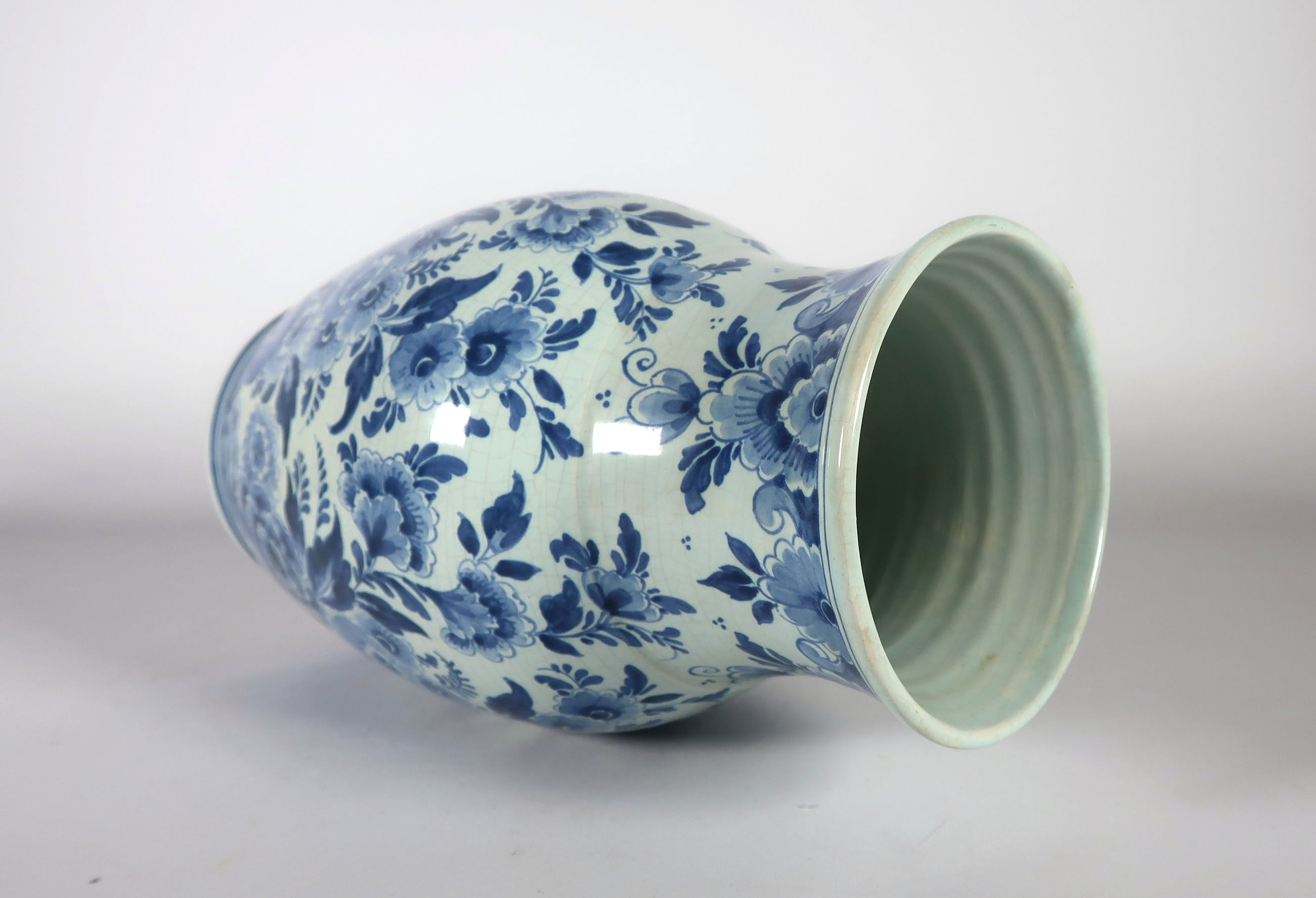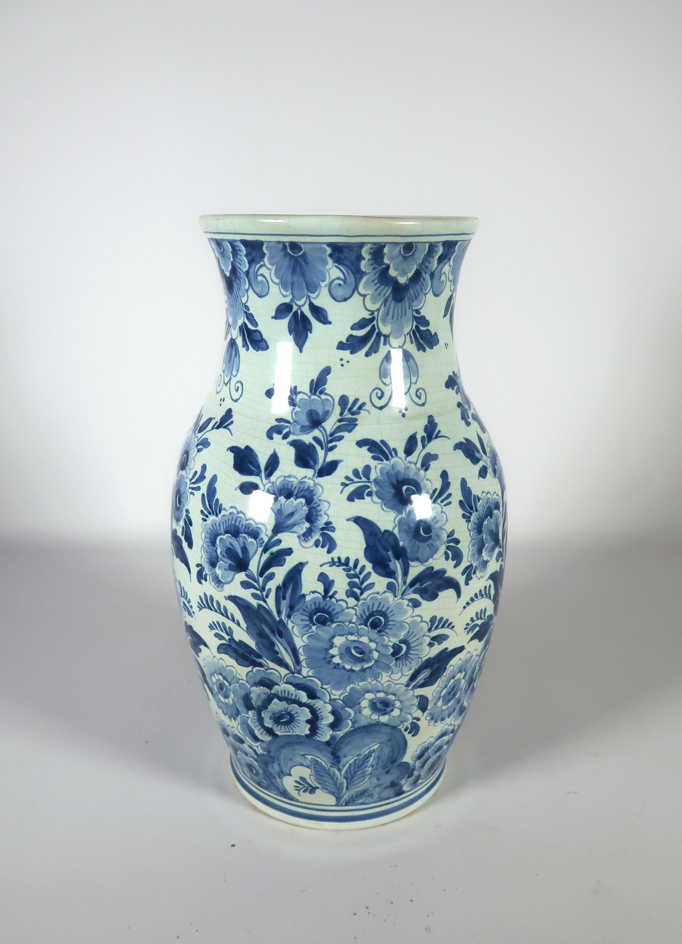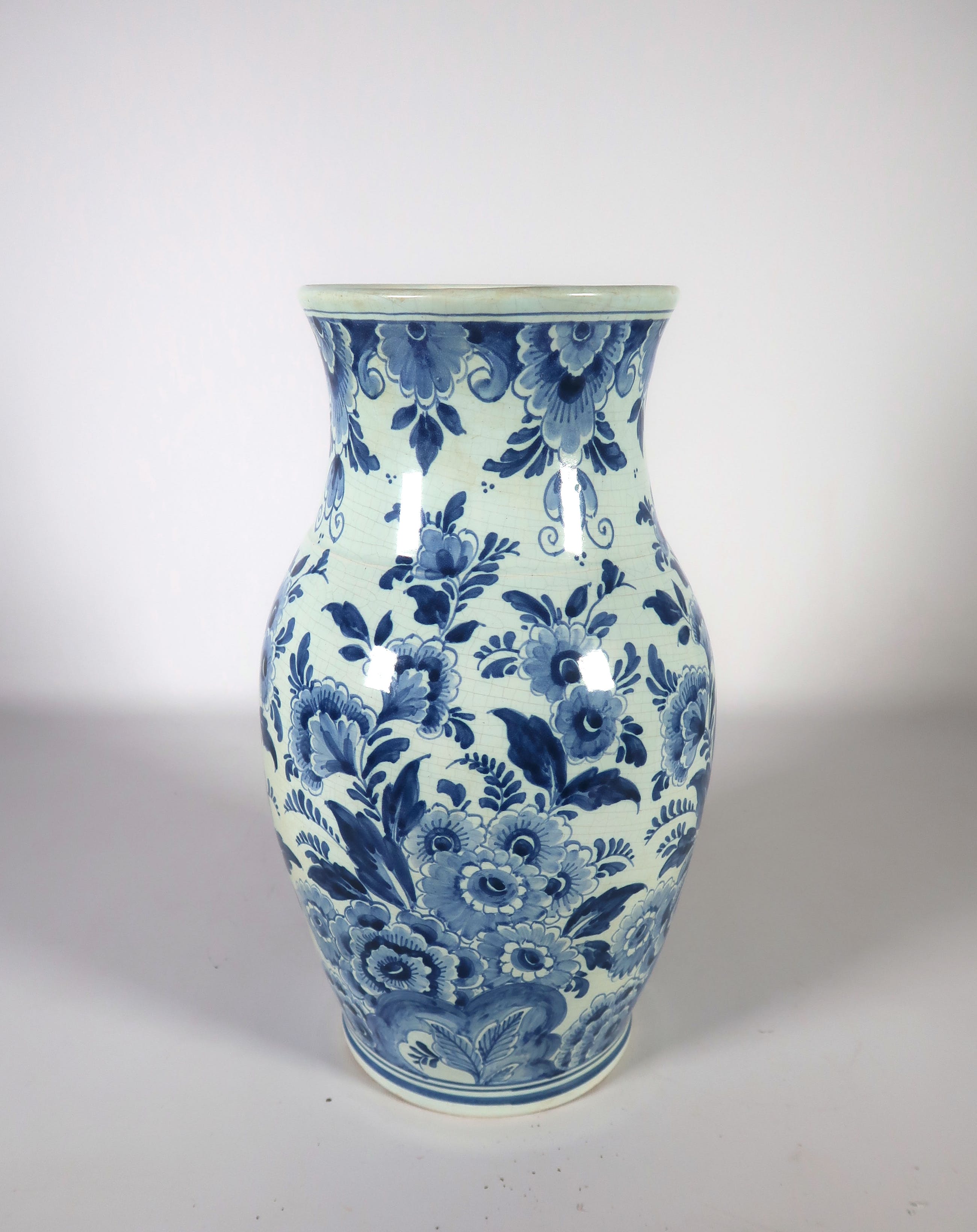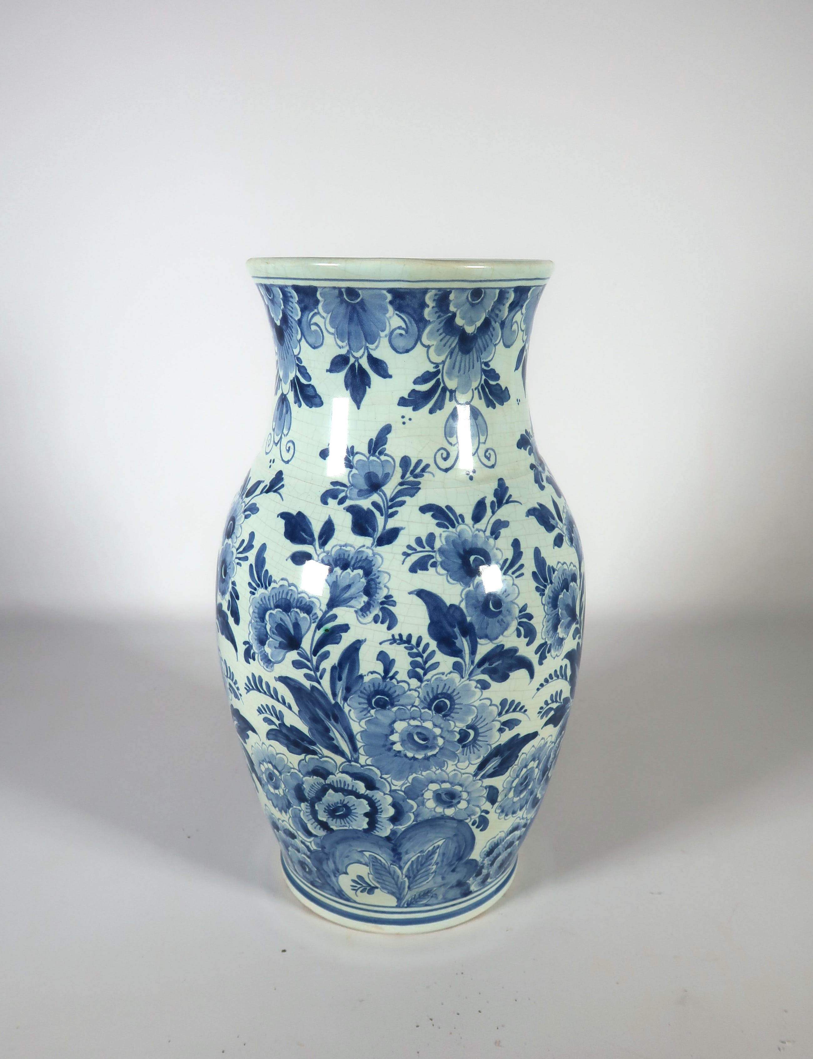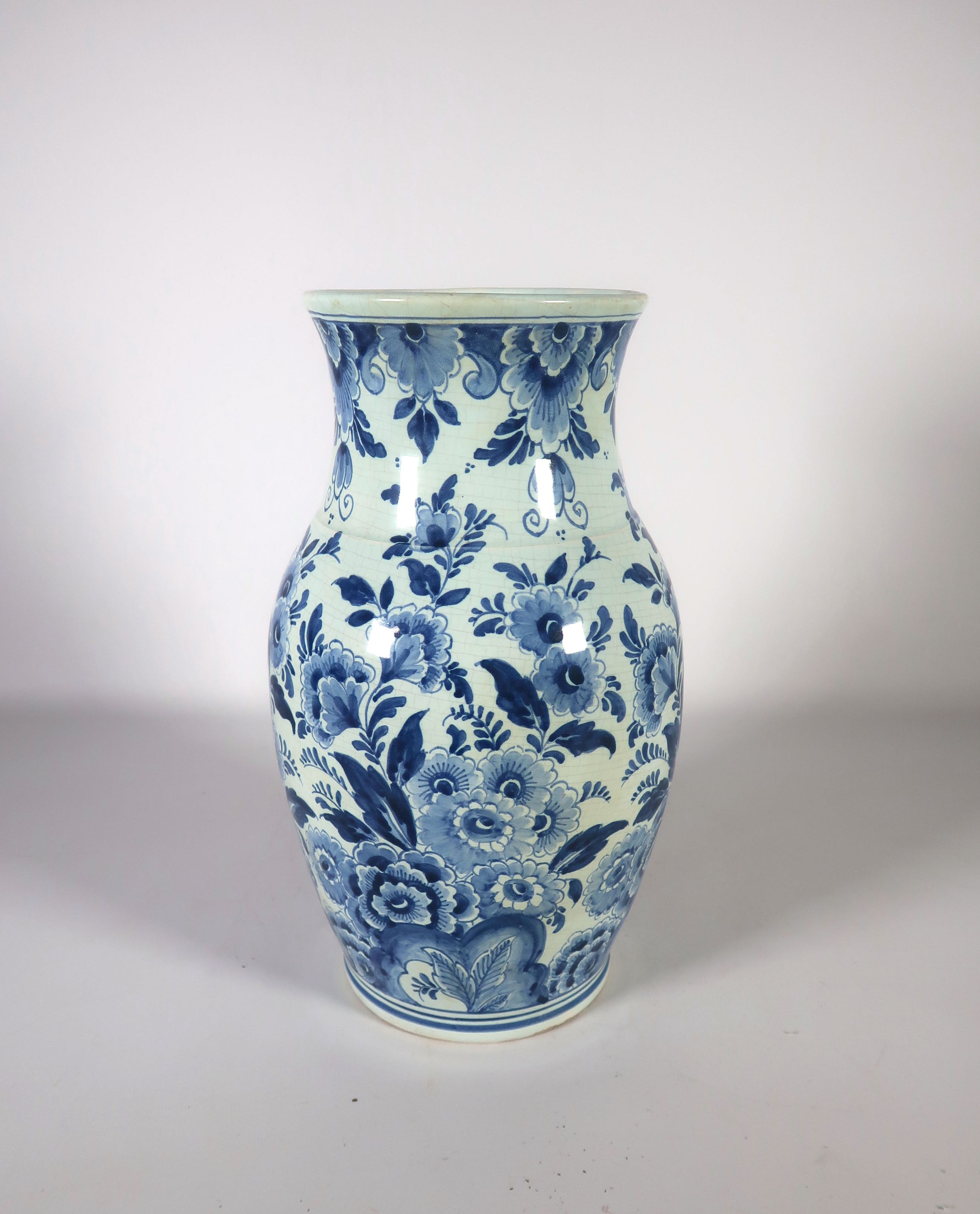 | Er zit craquelé in het glazuur verspreid over de hele vaas. | |
