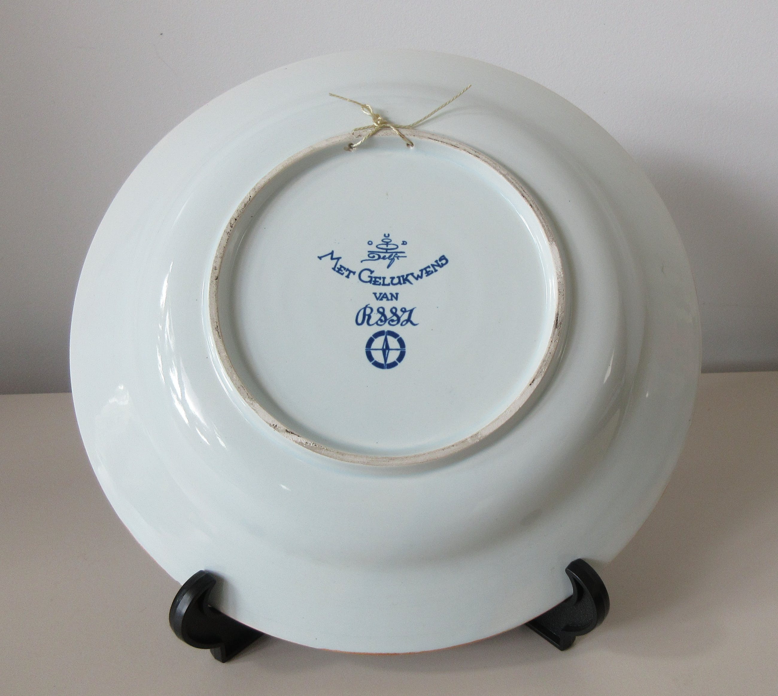 In goede staat verkerend Delfts blauw gelukwens wandbord van Oud Delft uitgevoerd voor RSSZ. Gemerkt aan de achterzijde.
