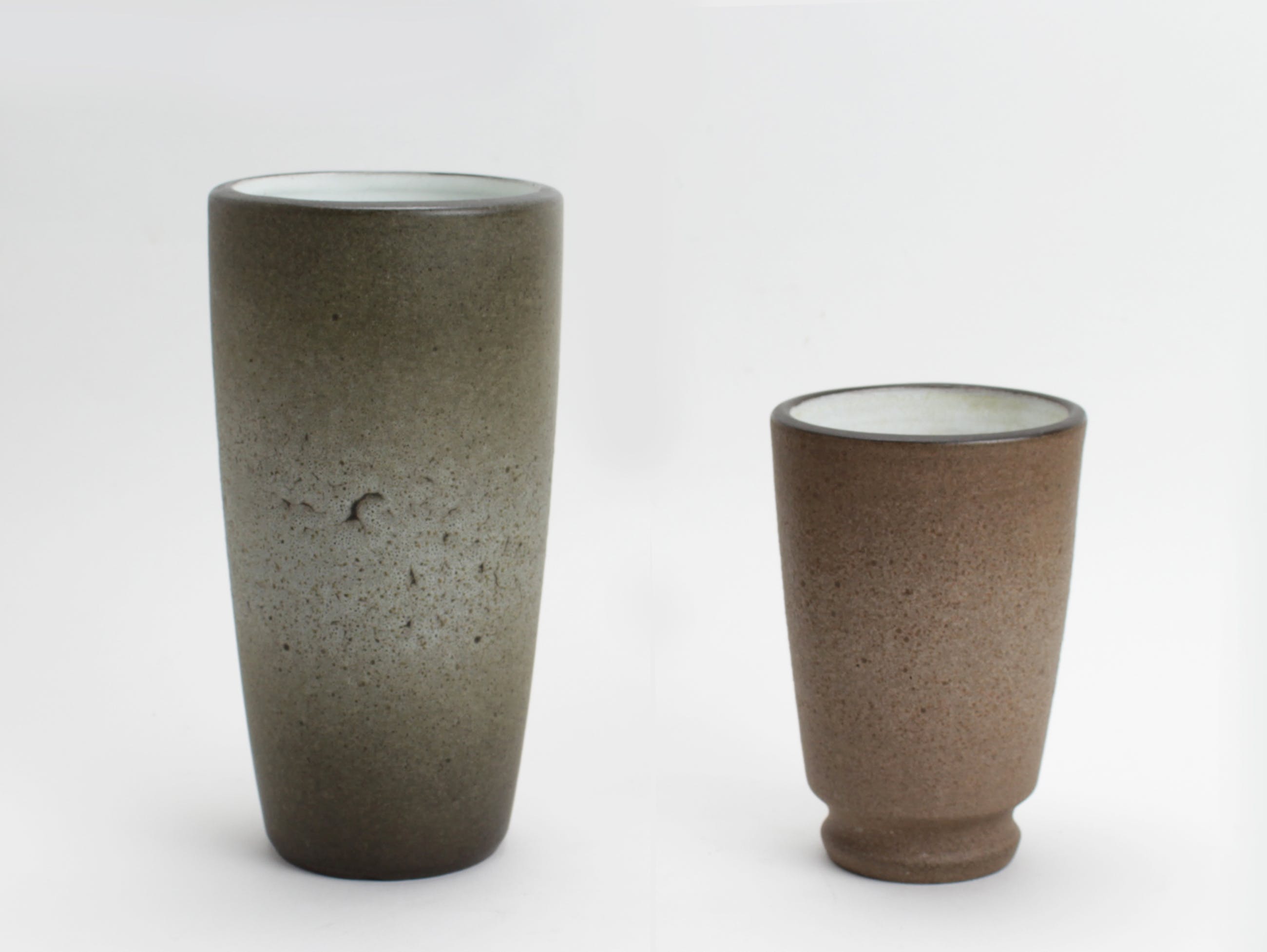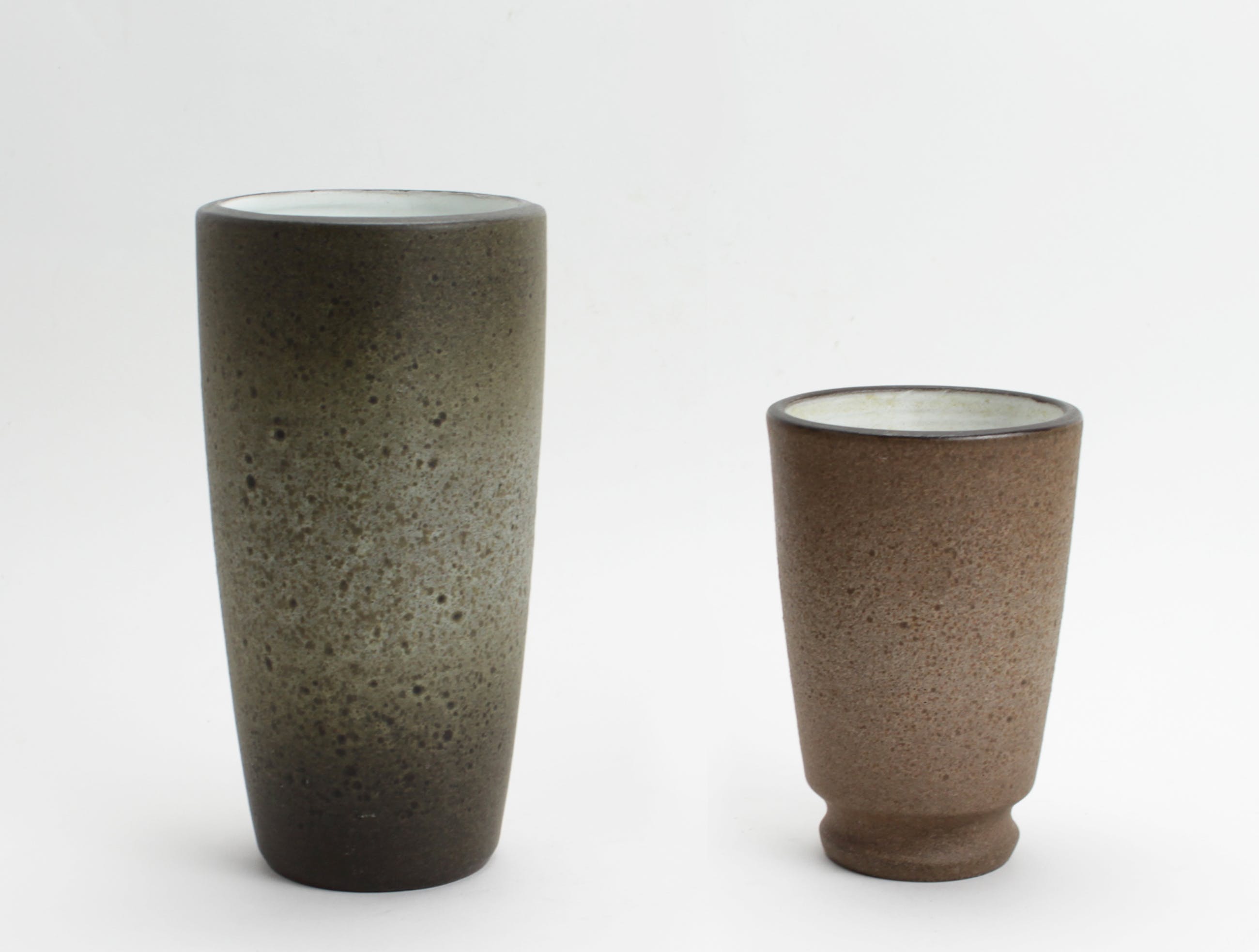 de hoge vaas heeft een imperfectie aan de voetrand, beide vazen hebben craquelé aan de binnenkant