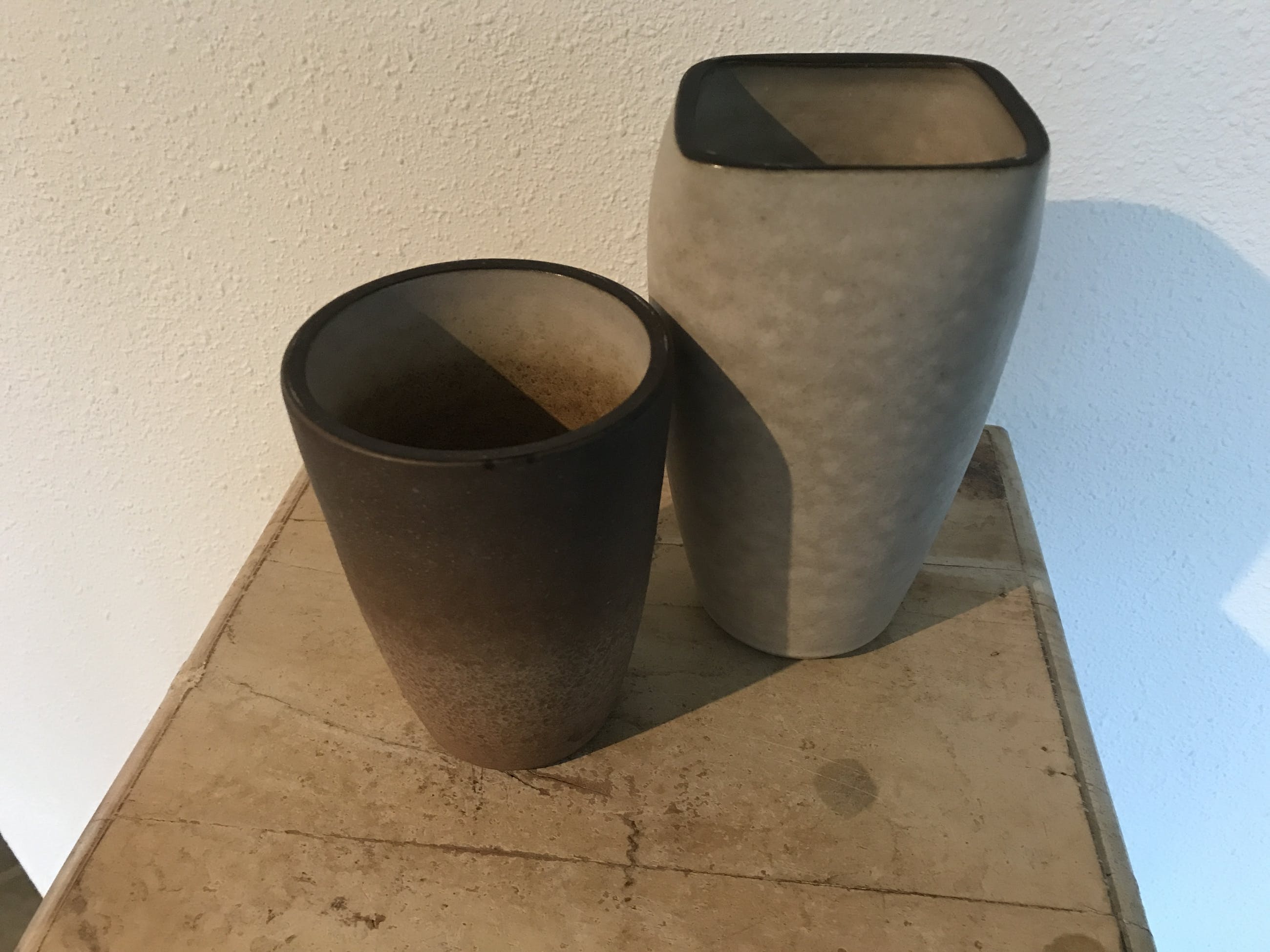 2 vazen. In uitstekende staat. Geen beschadigingen. vaas (rechts) nr. 17-6, is 19 x 10 x 10 cm en 835 gram. Vaas (links) nr 16-2, is 14 x 10 x 10 cm en 585 gram