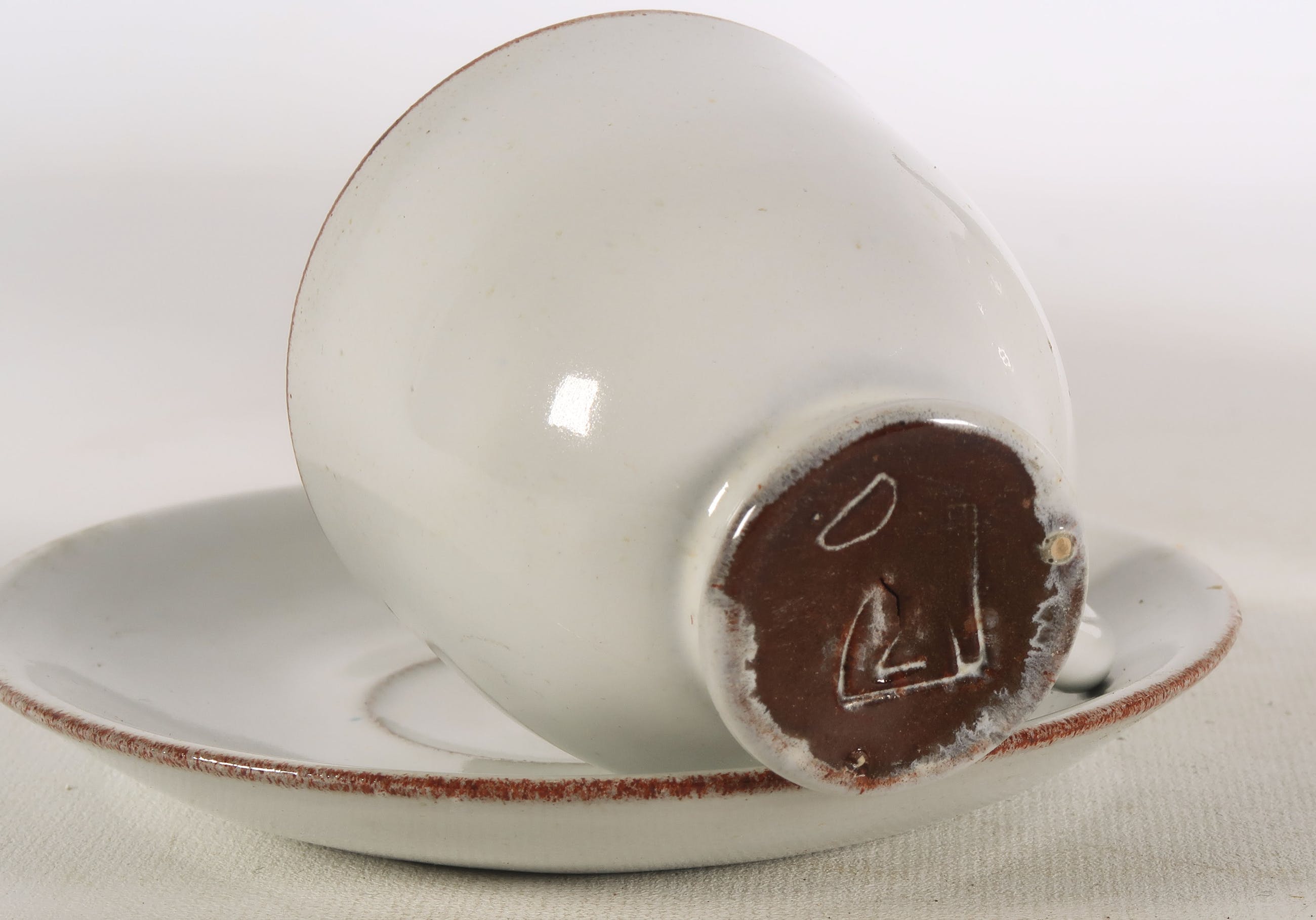 Vier kopjes zijn beschadigd langs de rand en langs de voet.