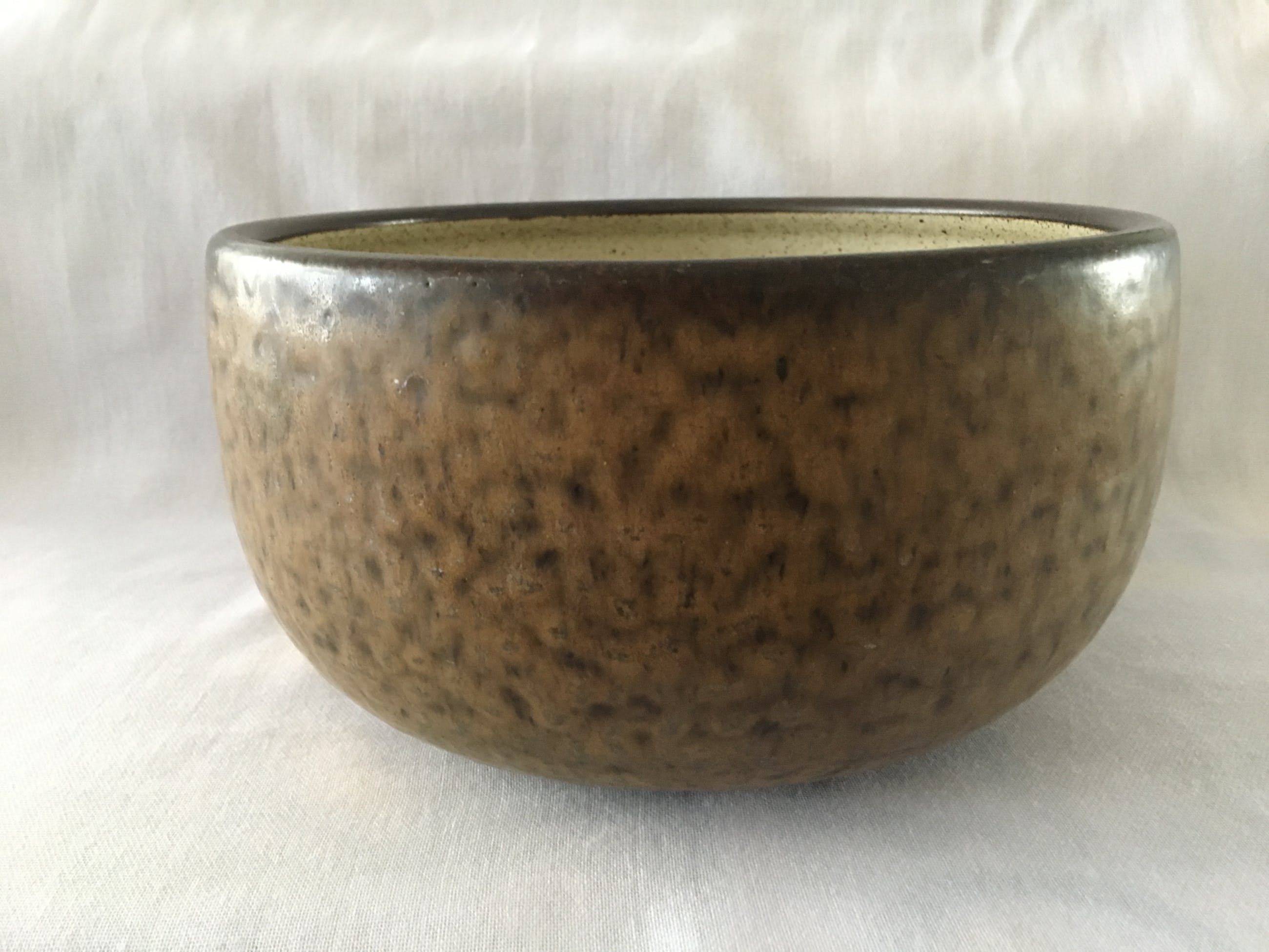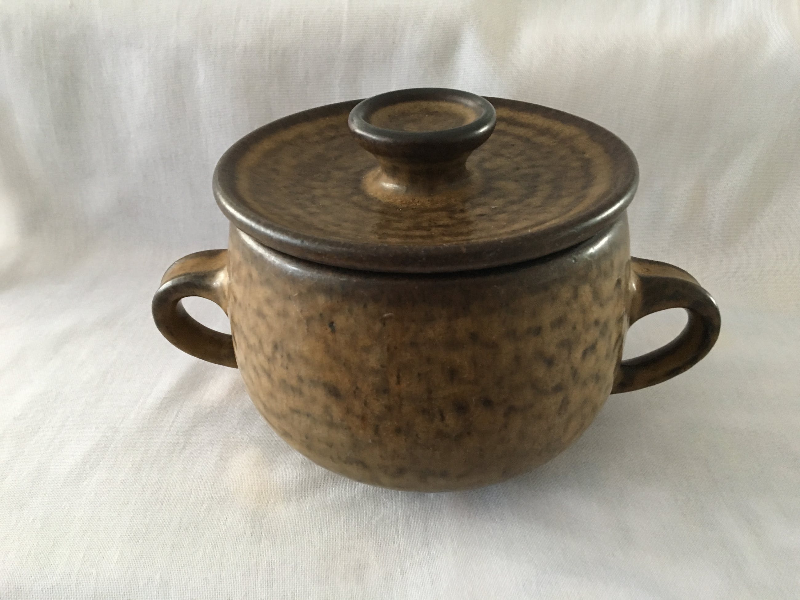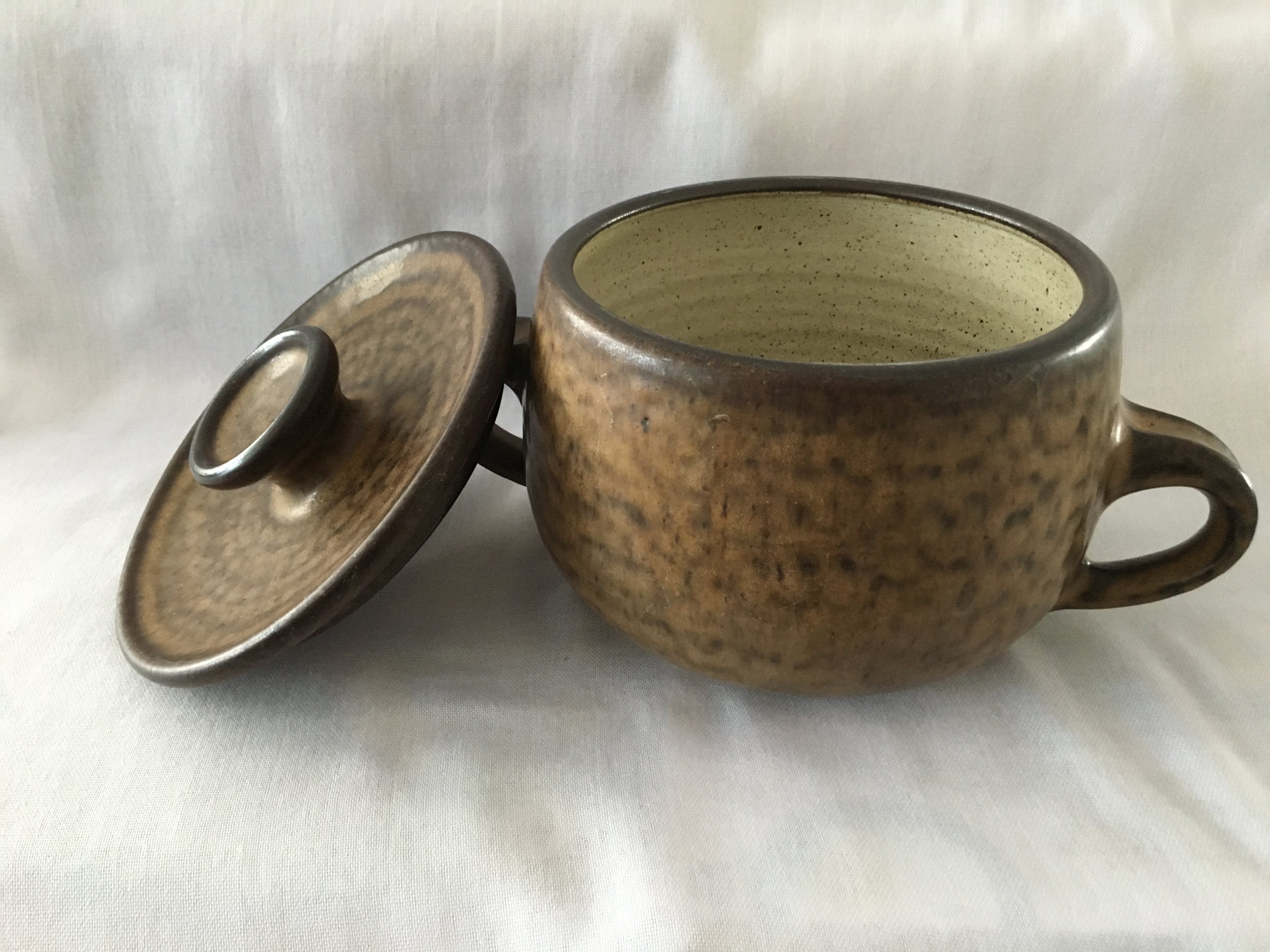 Een 3 selige set van Potterij Zaalberg Holland in bruine aardetinten. Set bestaat uit 2 schalen / serveerpannen met deksel en een grotere open schaal. Helemaal gaaf en onbeschadigd. Alle drie voorzien van een ingedrukt blindmerk. De schalen met deksel hebben een diameter van 15cm en 11cm hoog. Wegen rond de 1100 Gr. De schaal zonder deksel heeft een diameter van 21,5 en is 11cm hoog. Weegt 1300gr. Ontwerper: Meindert Huibert Zaalberg Dezelfde uit die serie staan in het Boijmans museum: https://www.boijmans.nl/collectie/kunstwerken/171244/model-e