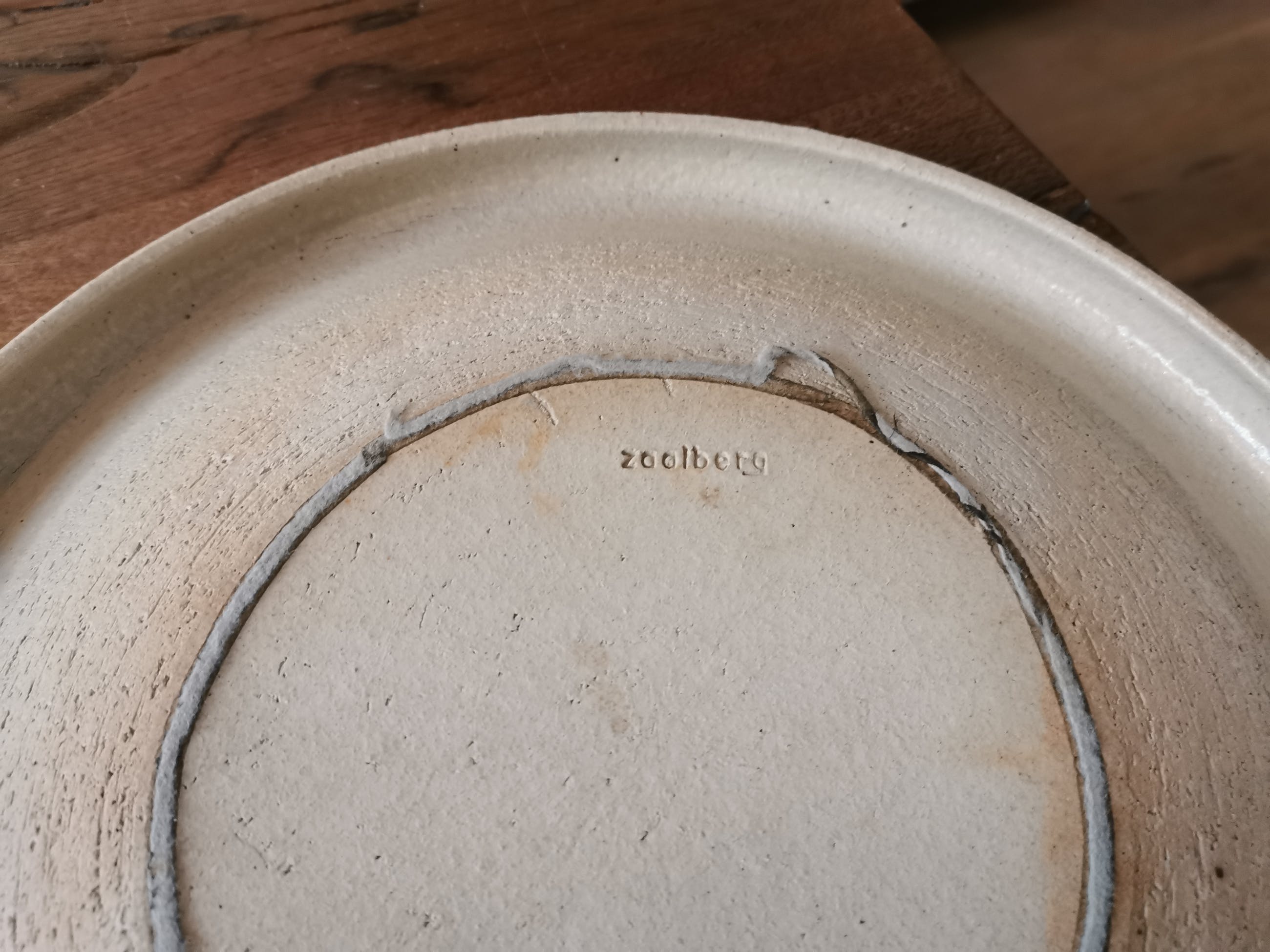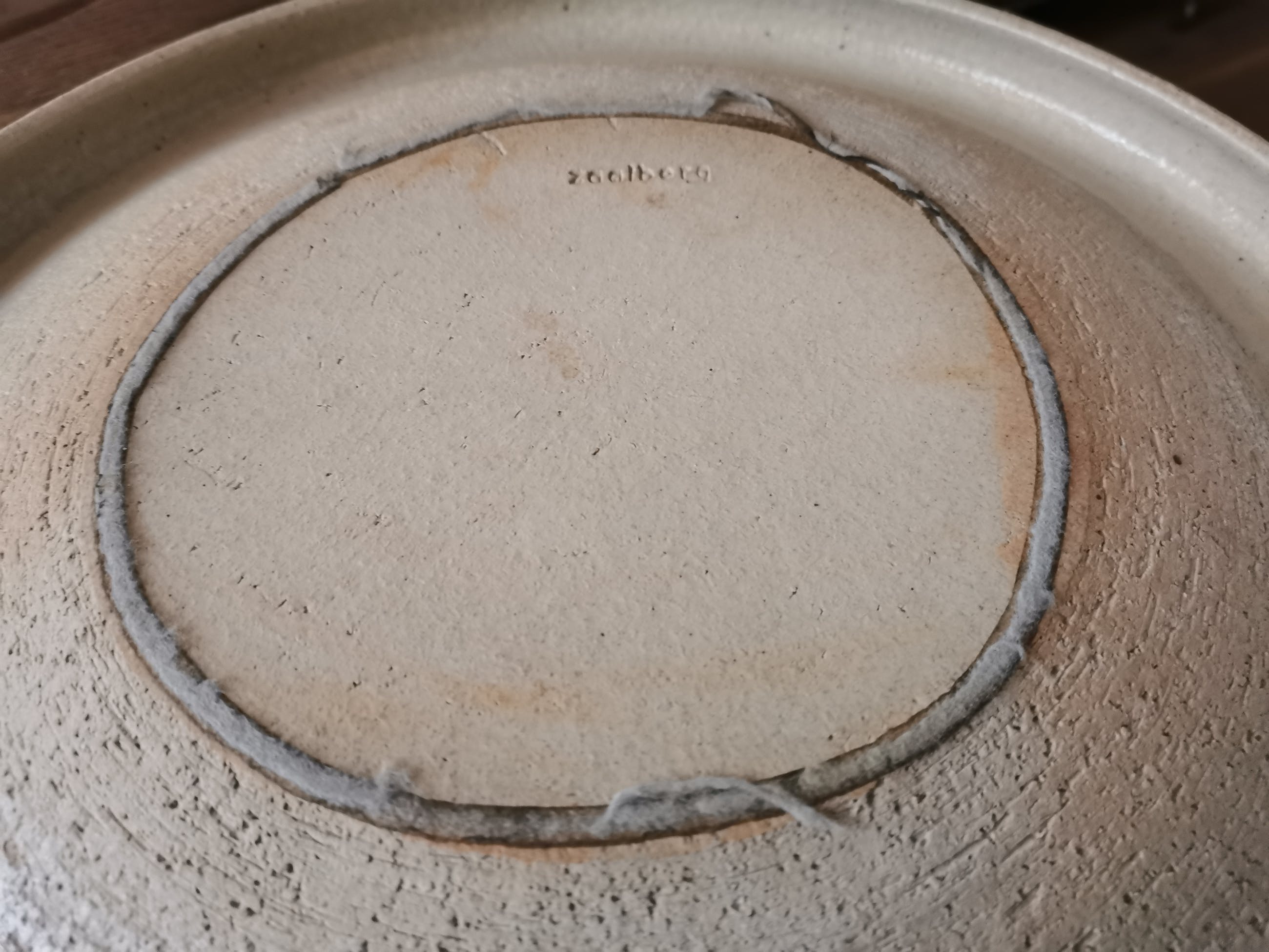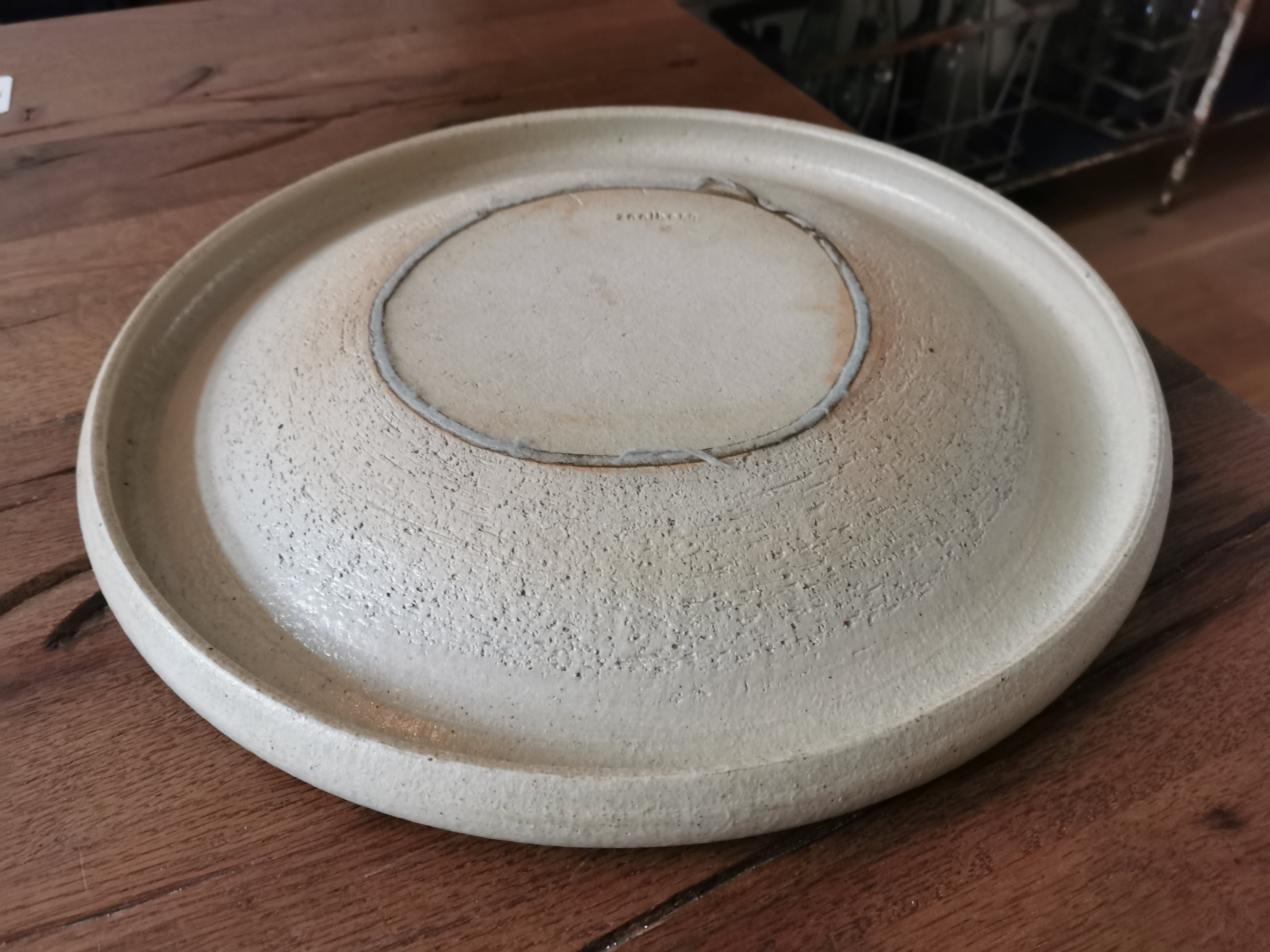 zeer grote aparte ecru schaal met omgebogen rand van het bekende Nederlandse Merk Zaalberg.