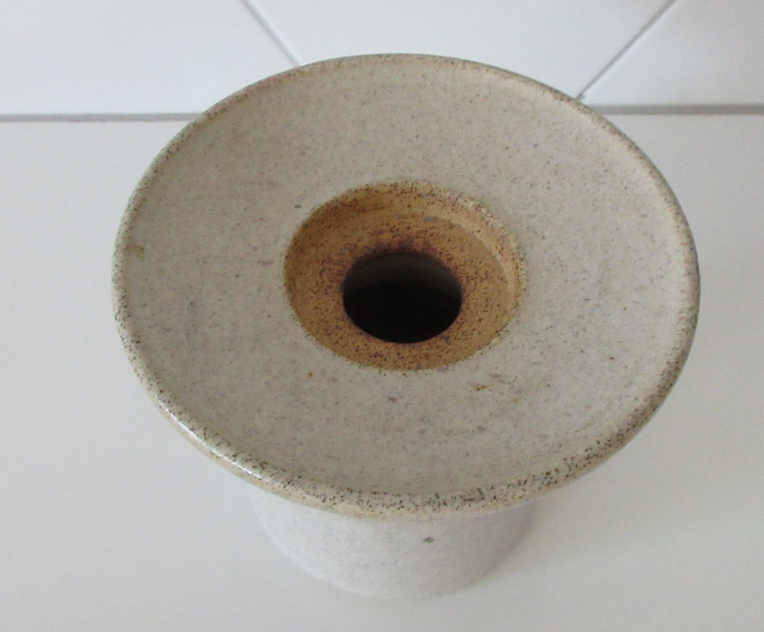 Mooie kunstaardewerken kandelaar van Potterij Zaalberg uit Leiderdorp of Hazerswoude Rijndijk. In prima onbeschadigde conditie en aan de onderzijde voorzien van een ingedrukt blindmerk.