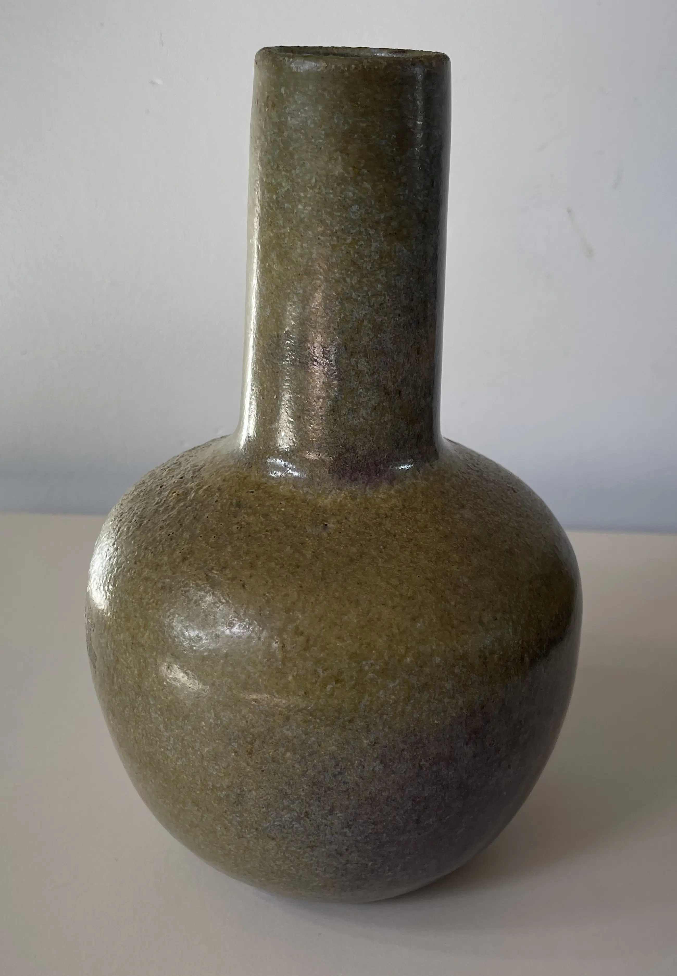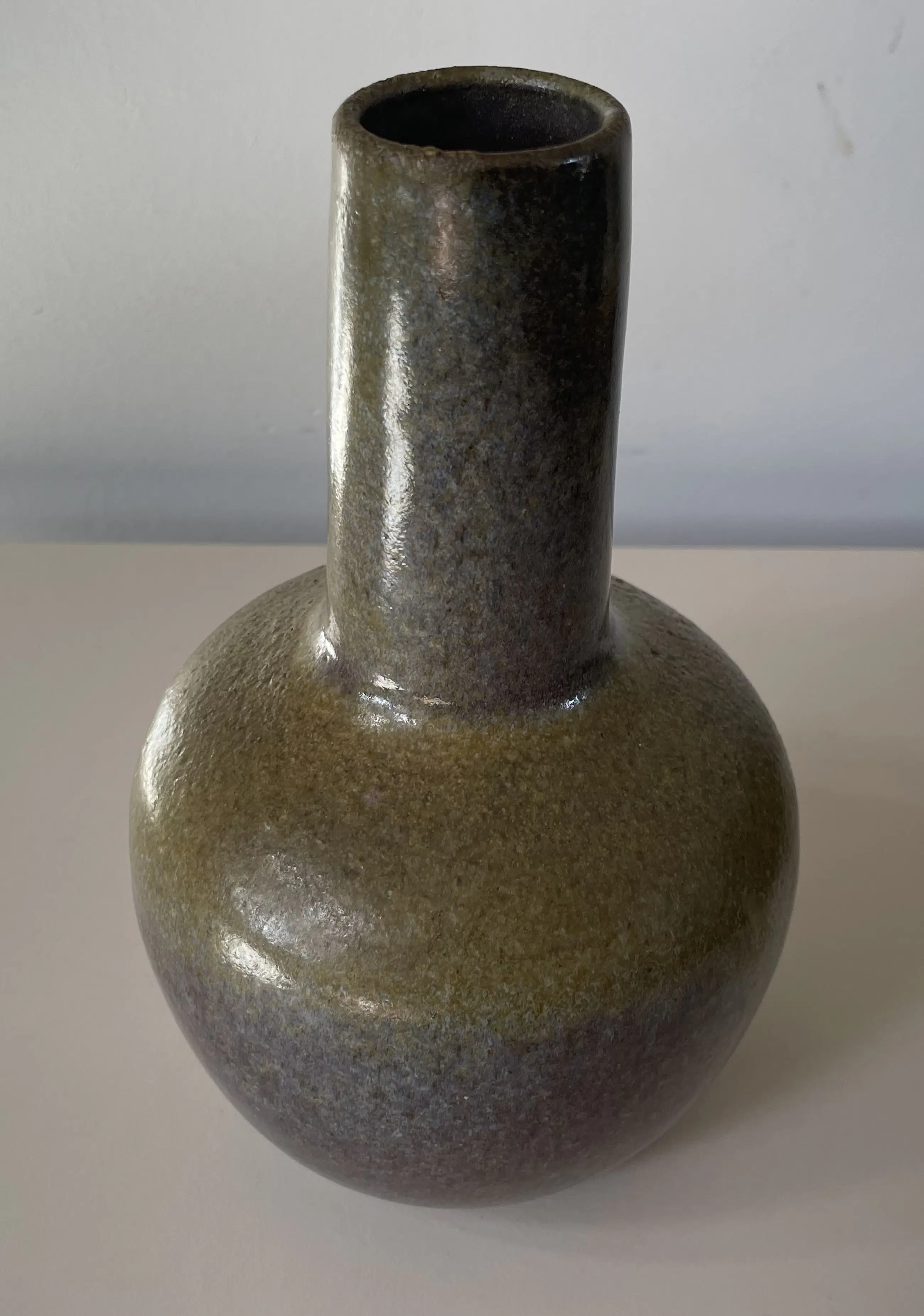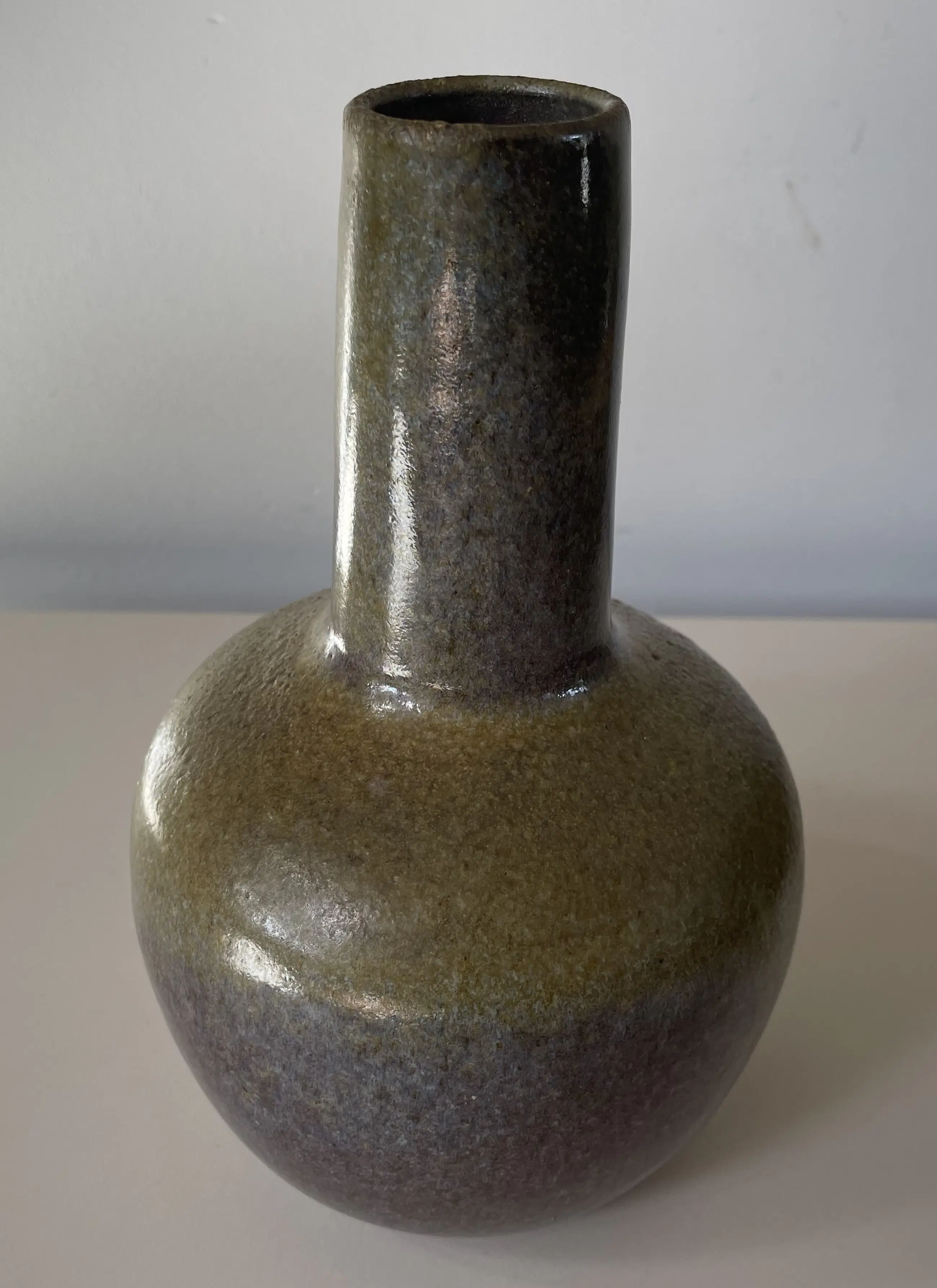 Potterie Zaalberg - Kunstaardewerken schoorsteen vaas uitgevoerd in mosgroen en blauwgrijs glazuur. In perfecte conditie. Gemerkt aan de onderkant.
