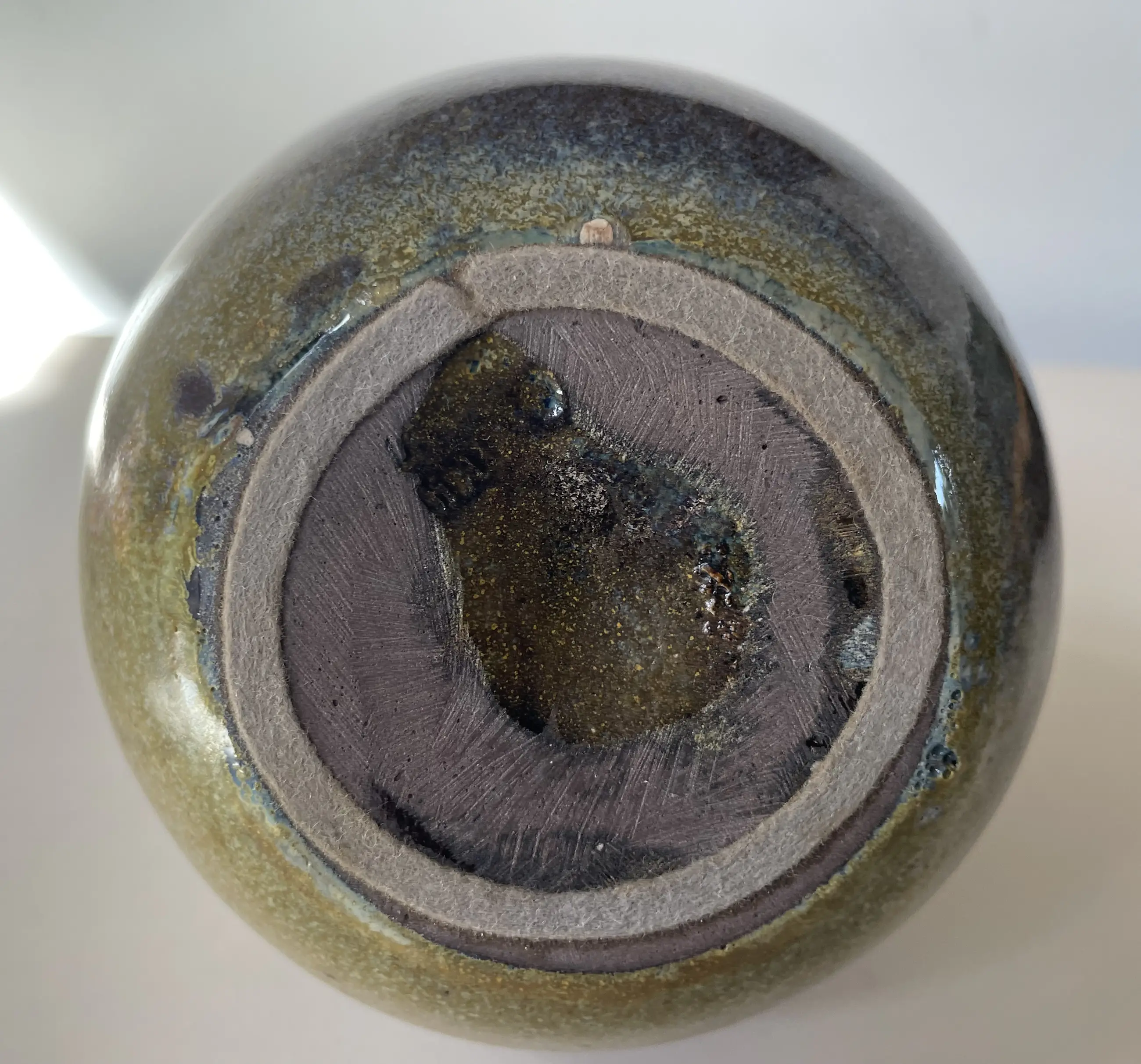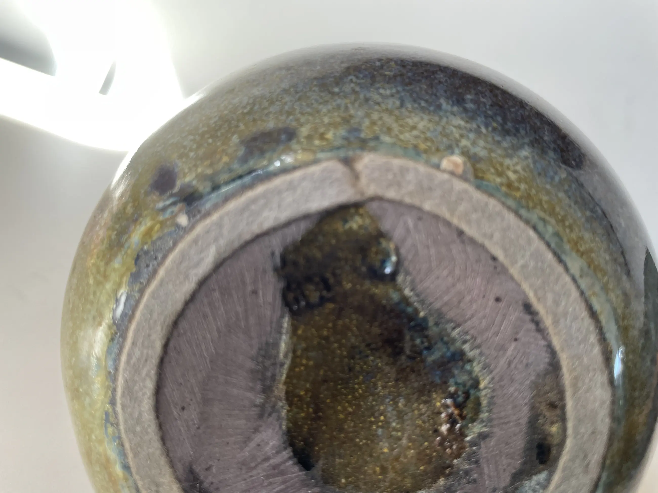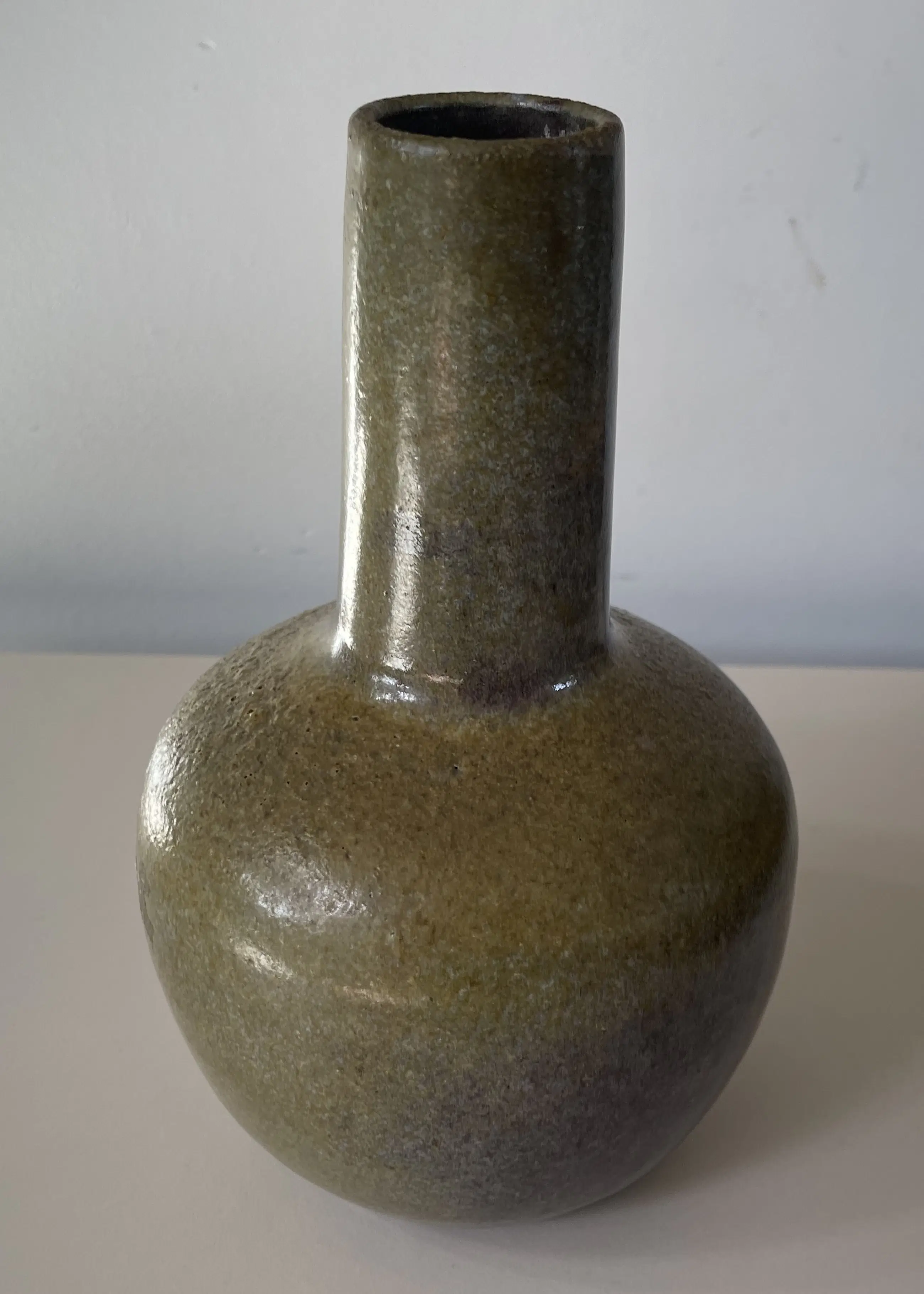 Potterie Zaalberg - Kunstaardewerken schoorsteen vaas uitgevoerd in mosgroen en blauwgrijs glazuur. In perfecte conditie. Gemerkt aan de onderkant.