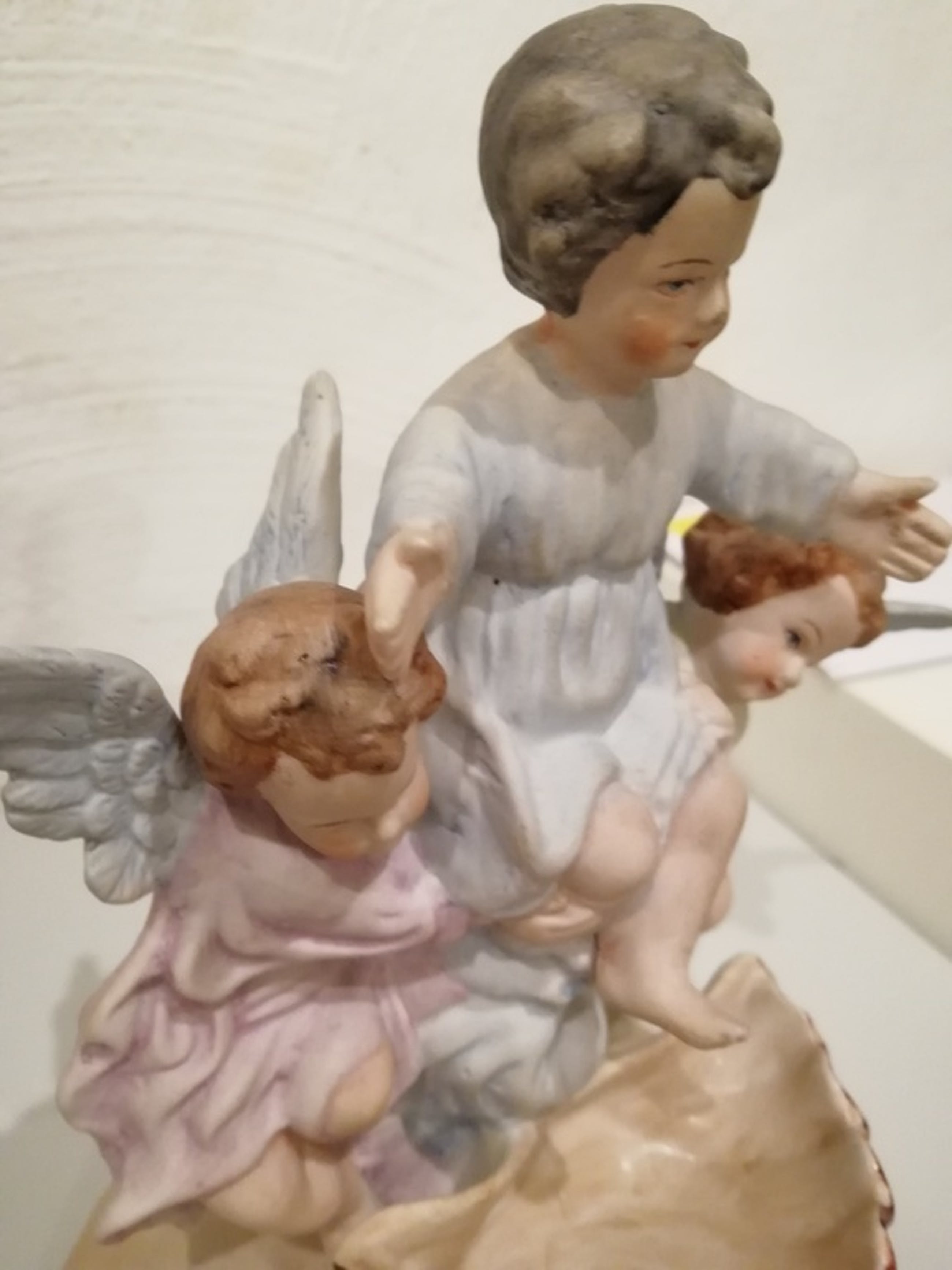 dit postuur stelt 3 engelen aan een wijwwater vat,