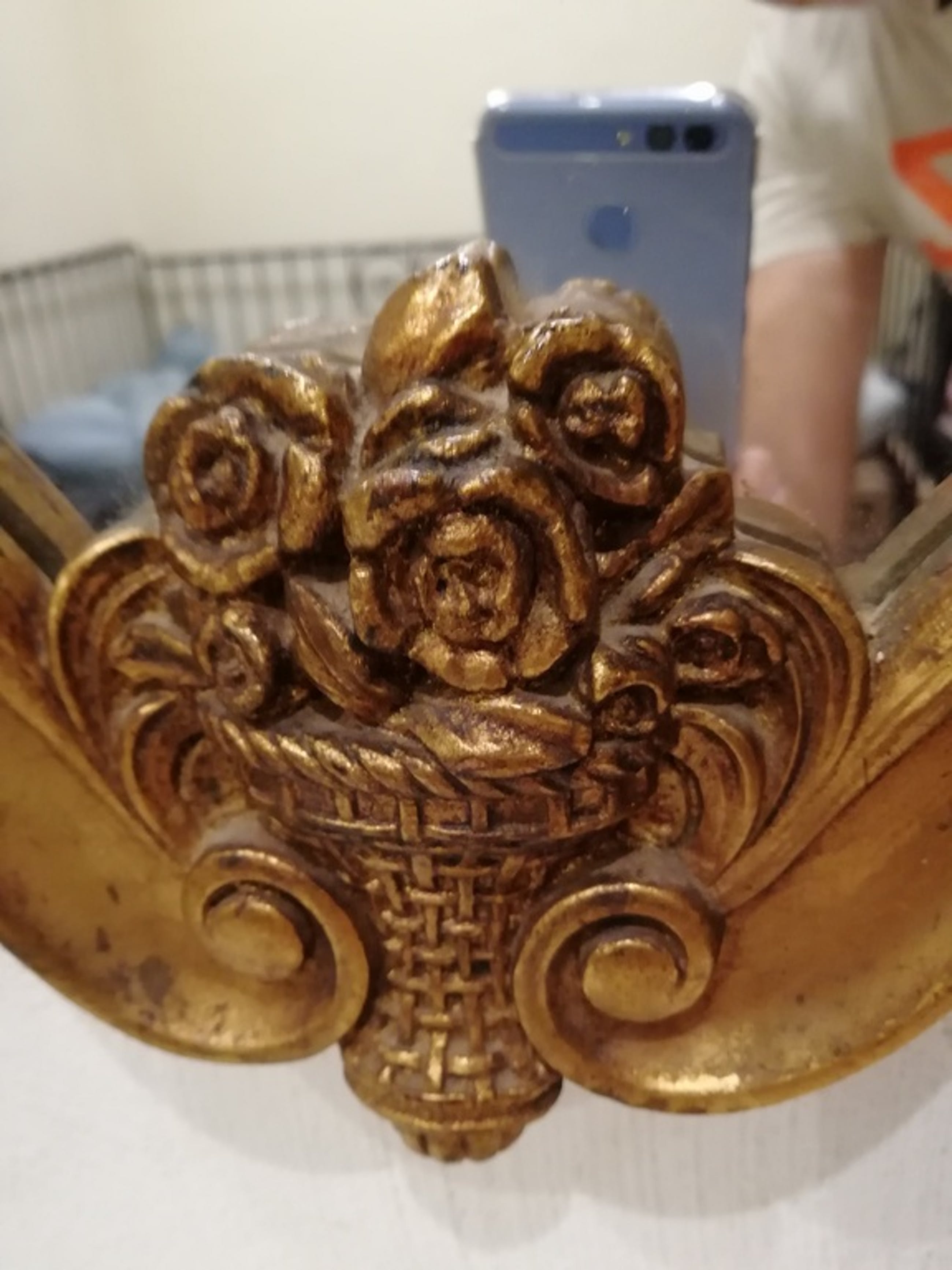 prachtige oude gesculpteerde en gebronzeerde spiegel,
