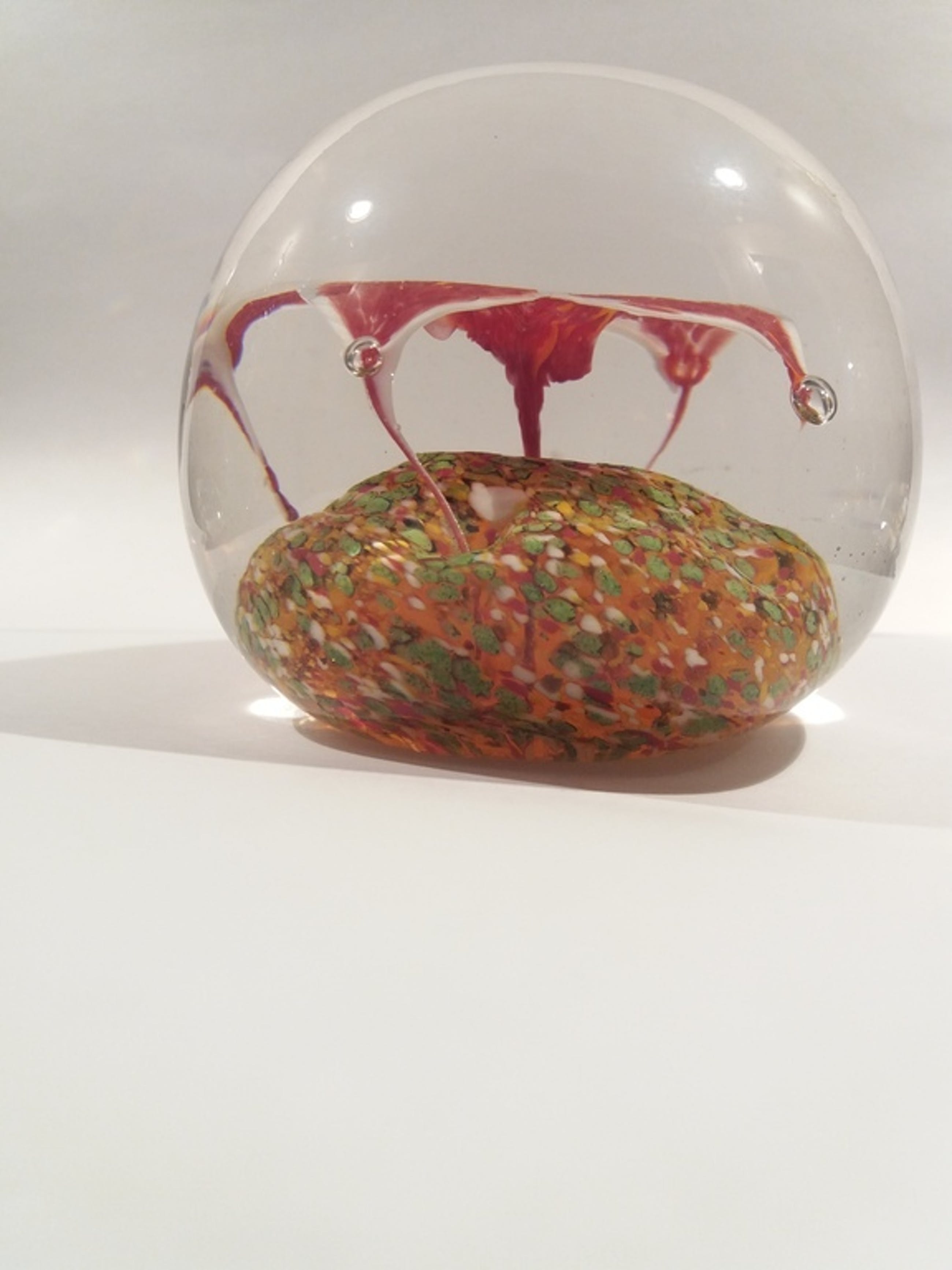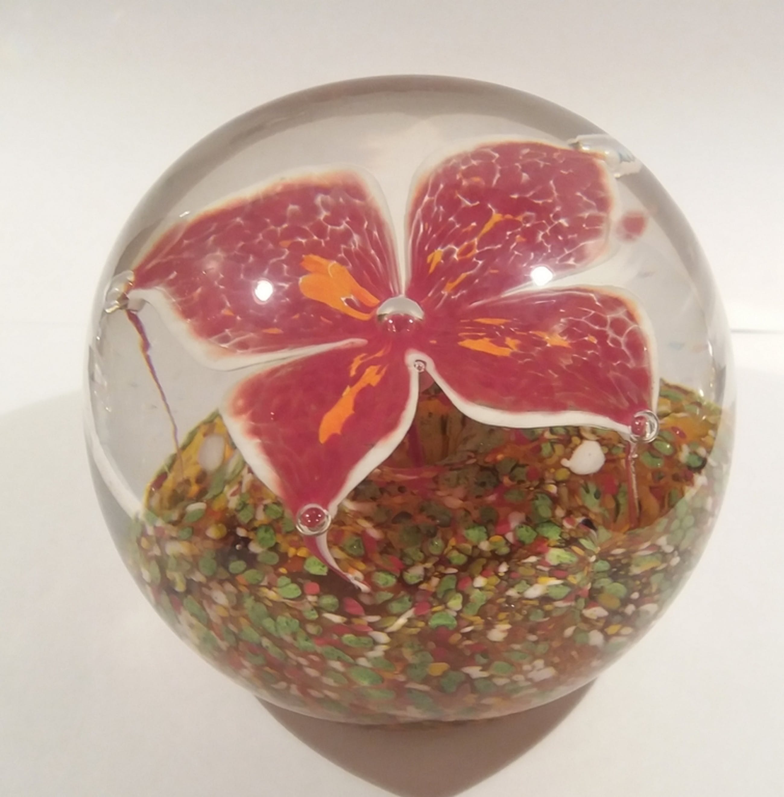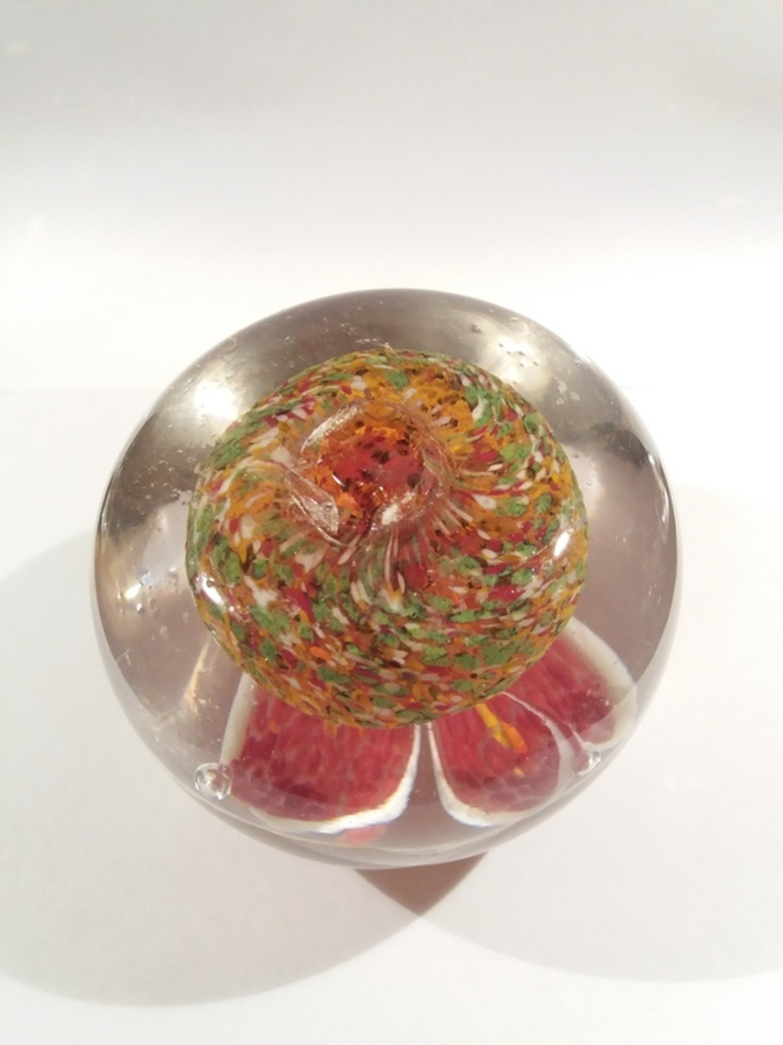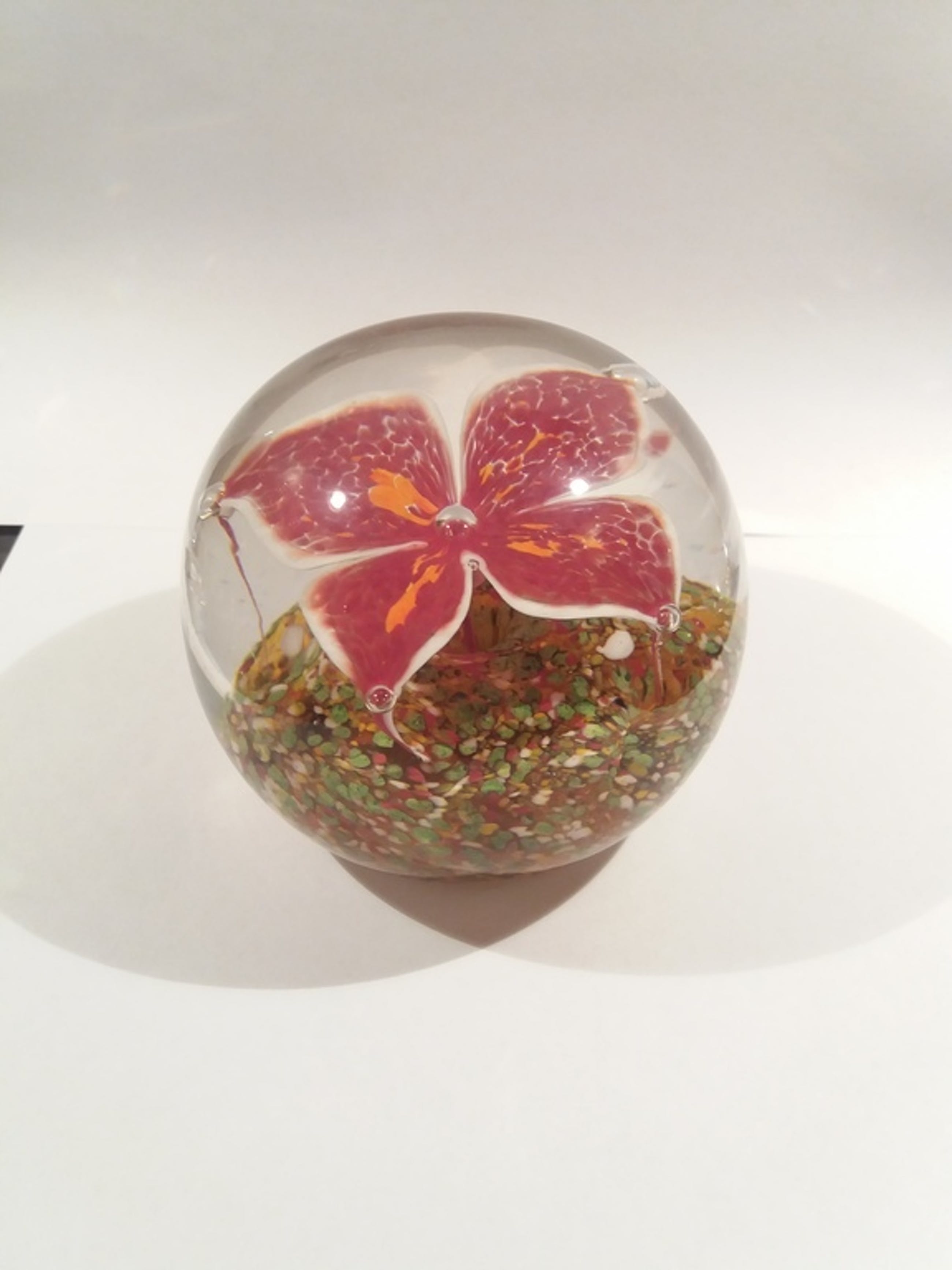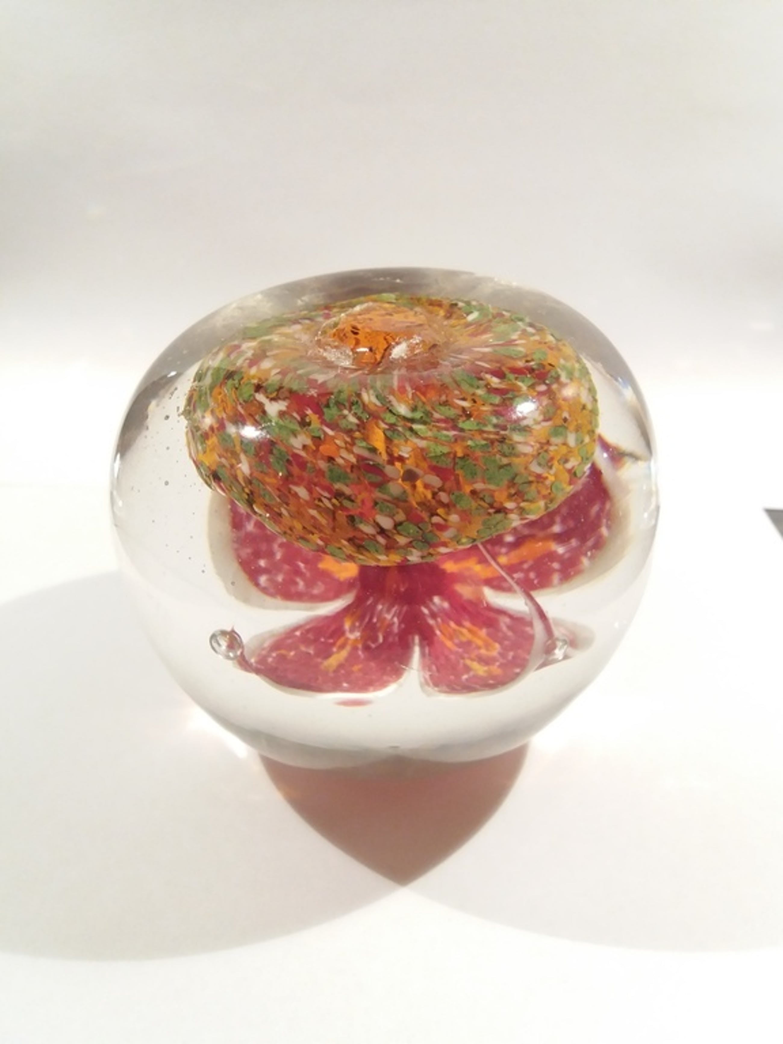 Vintage Decoratieve glazen presse-papier met bloem 1960.
