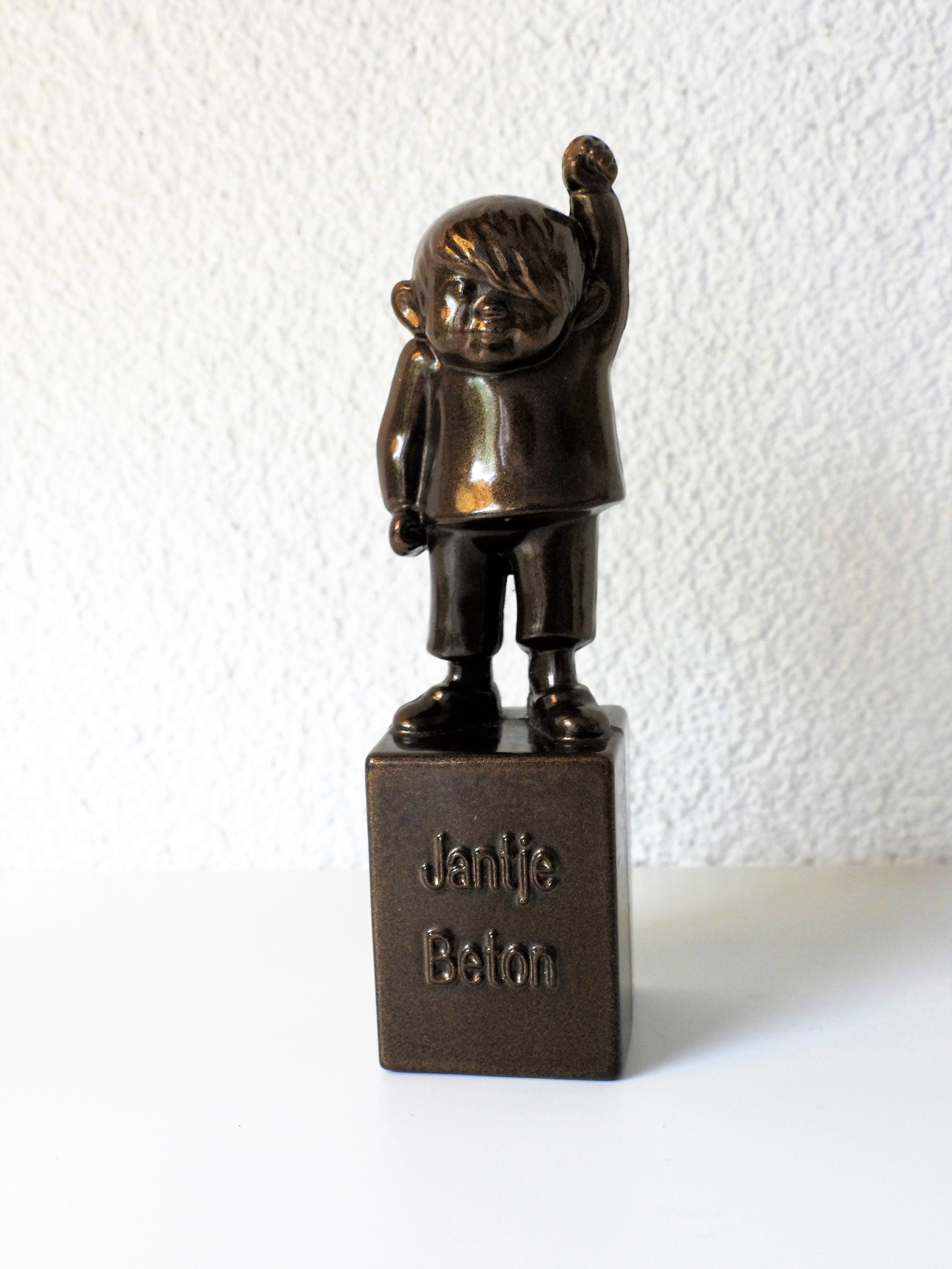 Grappig beeldje van Jantje Beton in serie vervaardigd. Ooit ontworpen door prinses Beatrix. Origineel staat in Madurodam.
