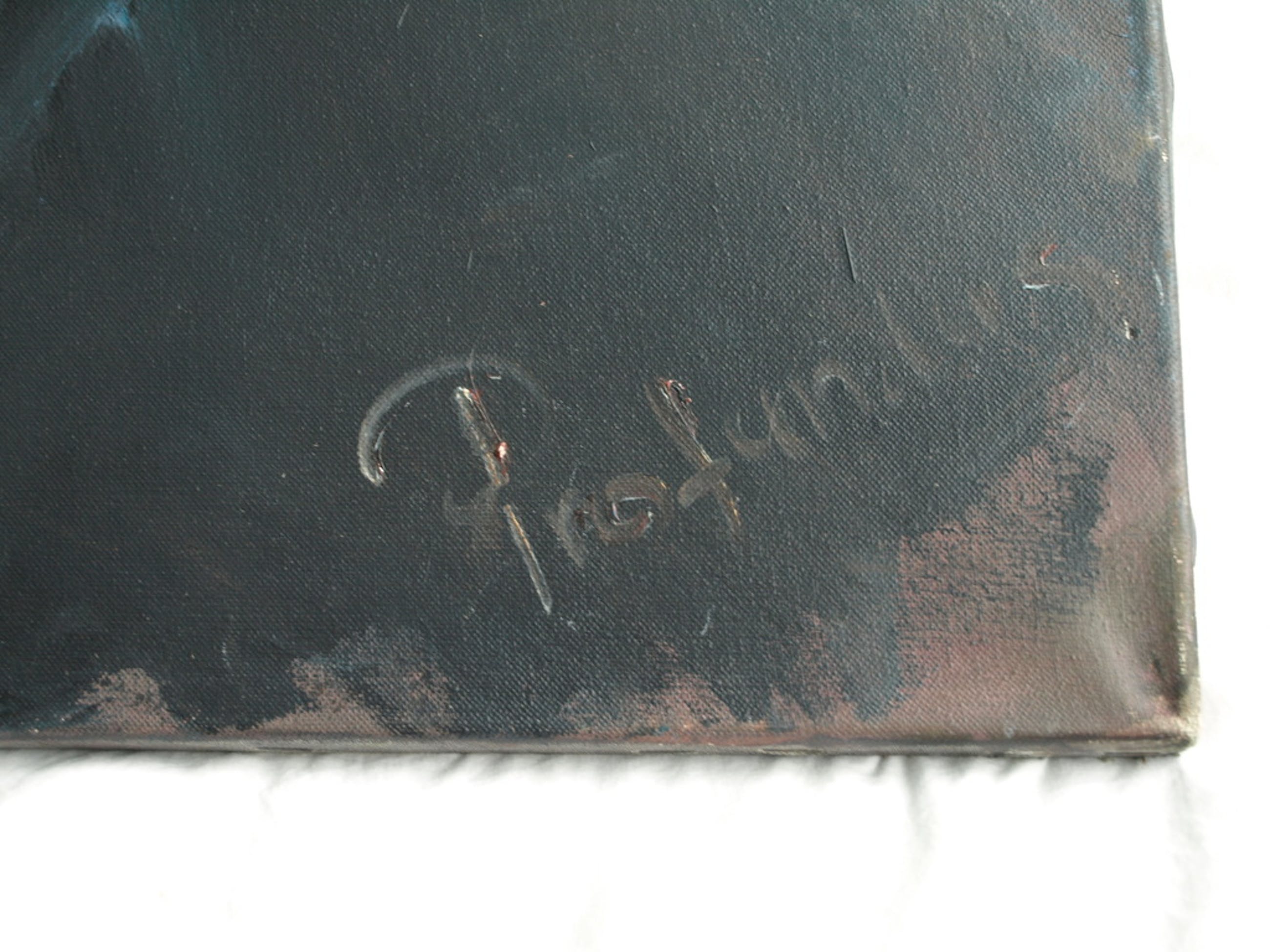 Gesigneerd: Rechtsonder en ook op de achterkant van het doek.