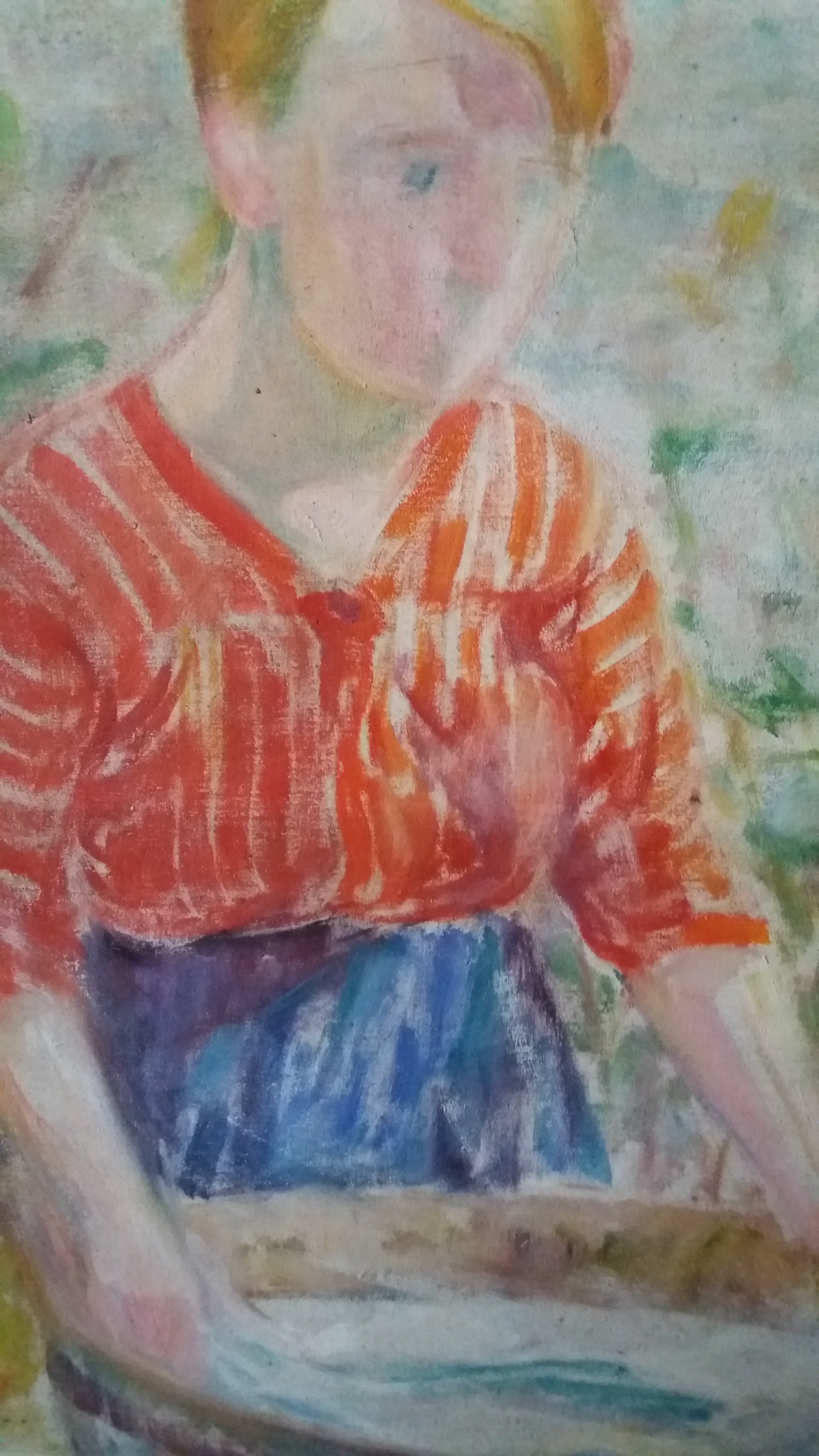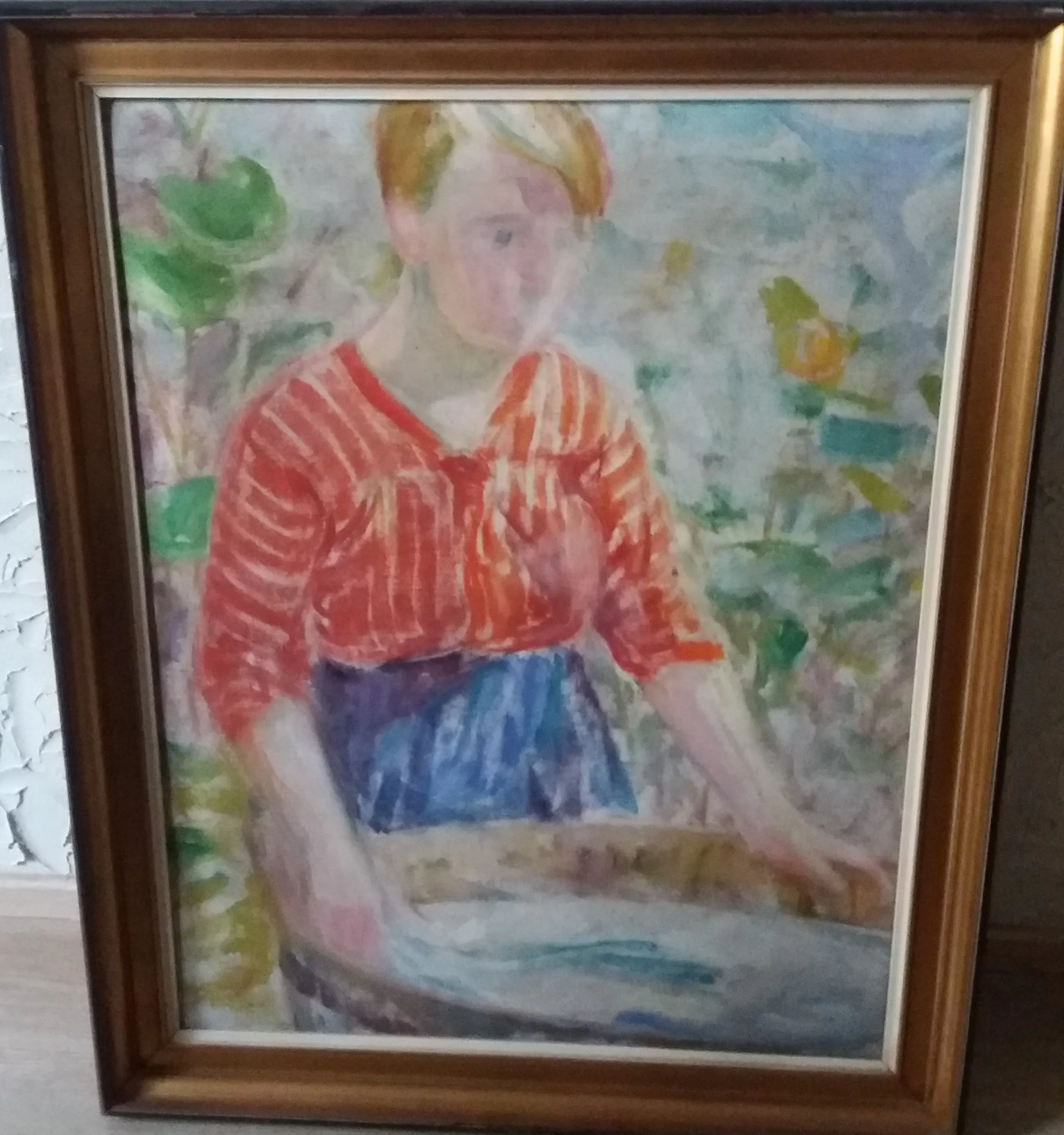 Prosper de Troyer( 1881-1961) was een Belgische schilder. Hij begon zijn loopbaan in Gent als leerjongen in beeldhouwateliers. Hij studeerde ook aan de Academie voor Schone Kunsten in Mechelen. In Mechelen maakt hij kennis met Rik Wouters. Hij behoorde tot de kunstkring' Doe stil voort'. Zijn stijl verandert met de jaren van post-impressionistisch naar fauvistisch en kubistisch. In dit schilderij zien we duidelijk de invloed van Rik Wouters. Hij schilderde vaak ook vrouwen en kinderen en ook en vooral de gewone burger, zo ook in dit schilderij (boerin met waskom). Het is daarenboven een dubbelzijdig schilderij. De achterkant is een mooi stilleven en hand gesigneerd door de kunstenaar. Het schilderij kan verzekerd verzonden worden of opgehaald worden.