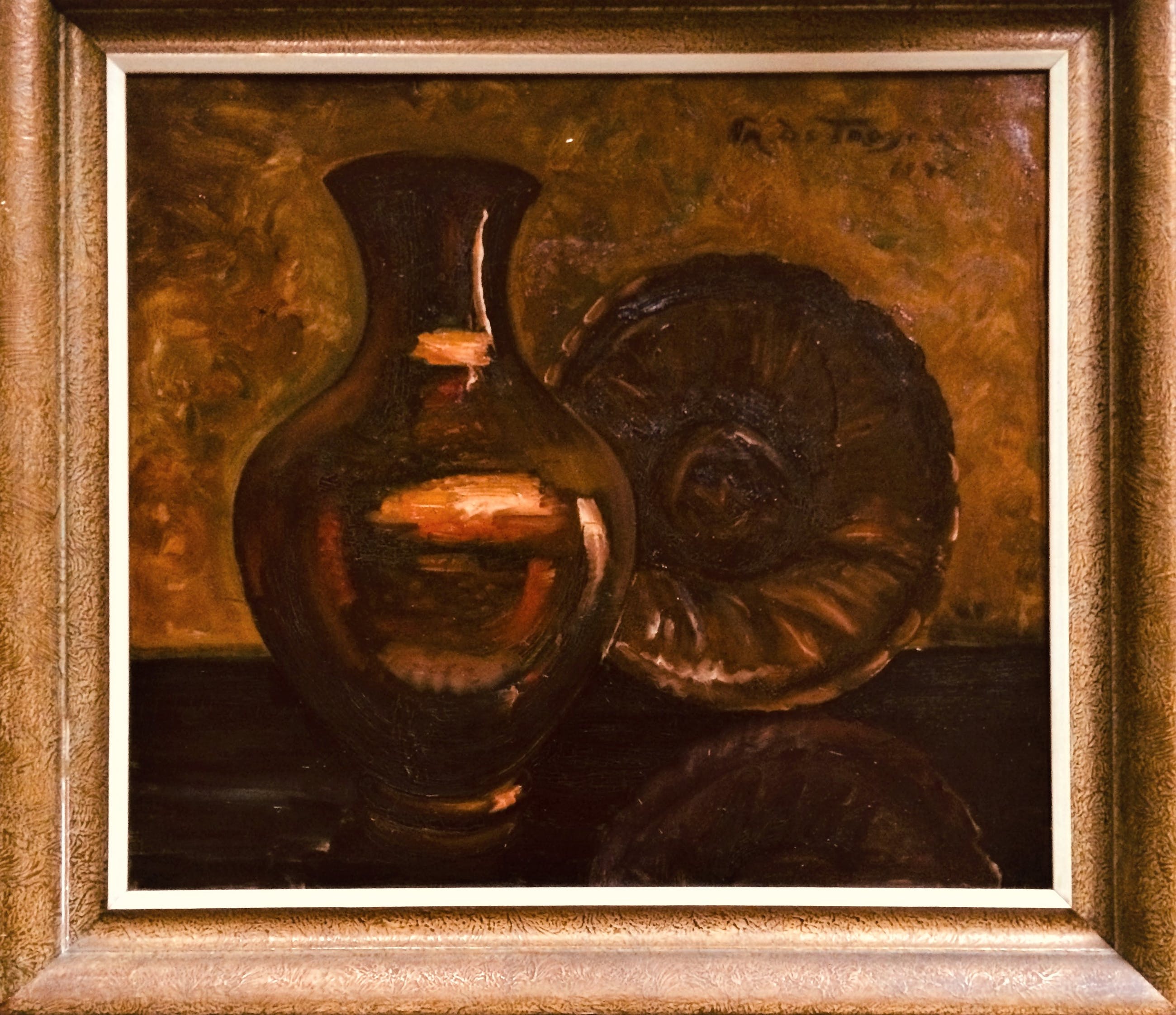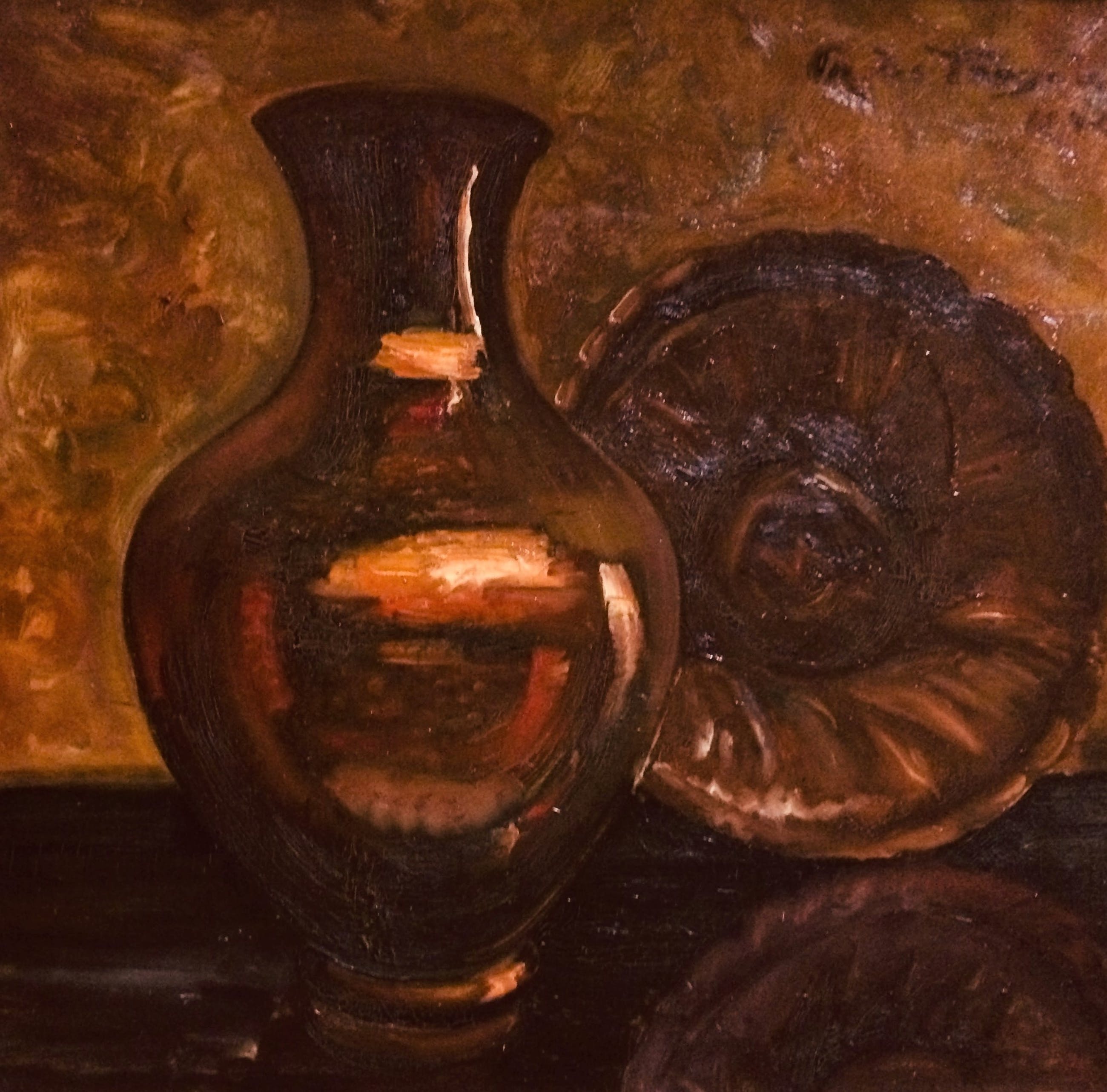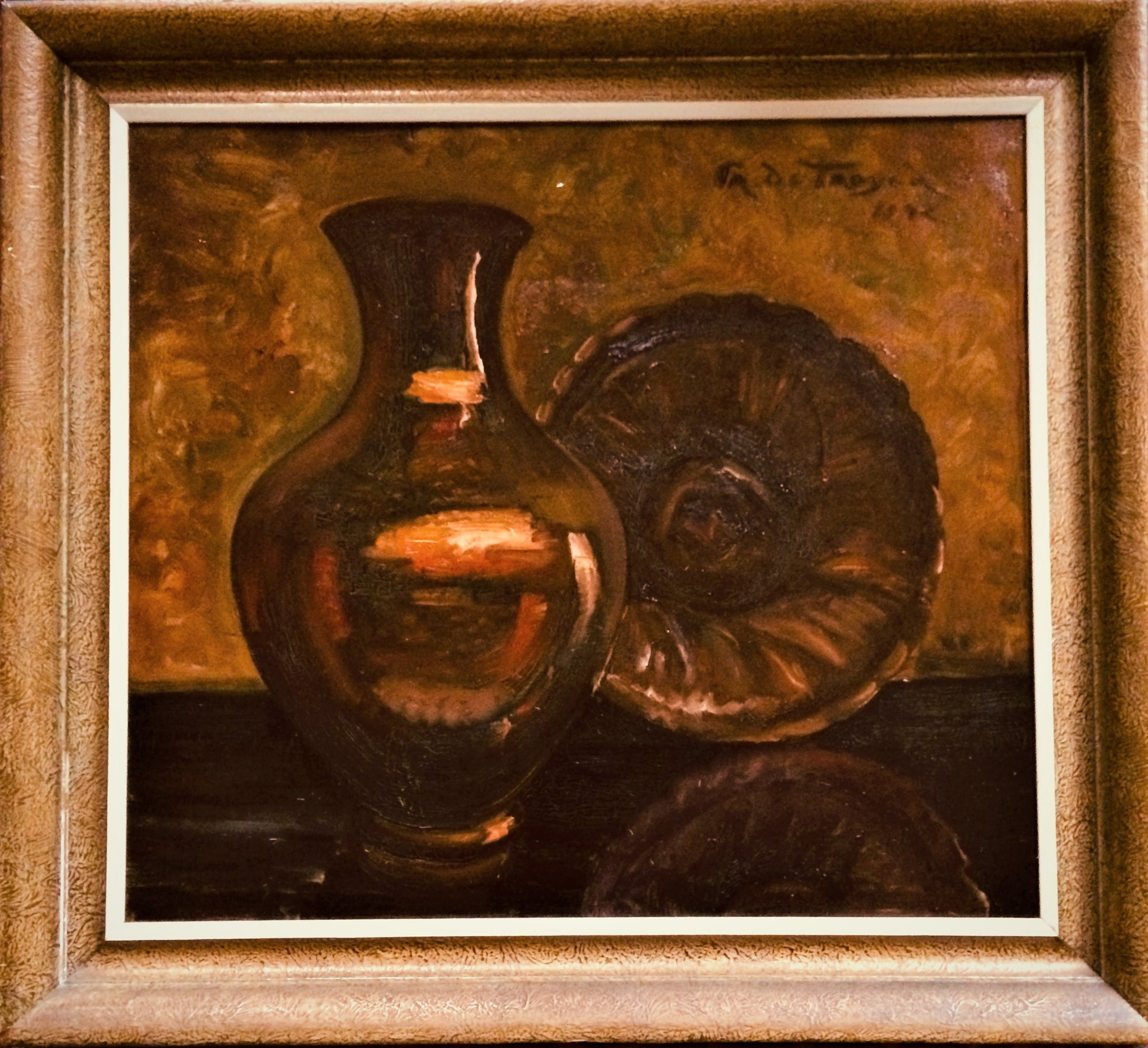 aangeboden olieverf op paneel ouderdomssporen algemeen zie duidelijke foto's ingekaderd. gesigneerd bovenaan met datum. geen herstellingen. afmetingen paneel 75 cm x 68 cm met kader 90 cm x 83 cm