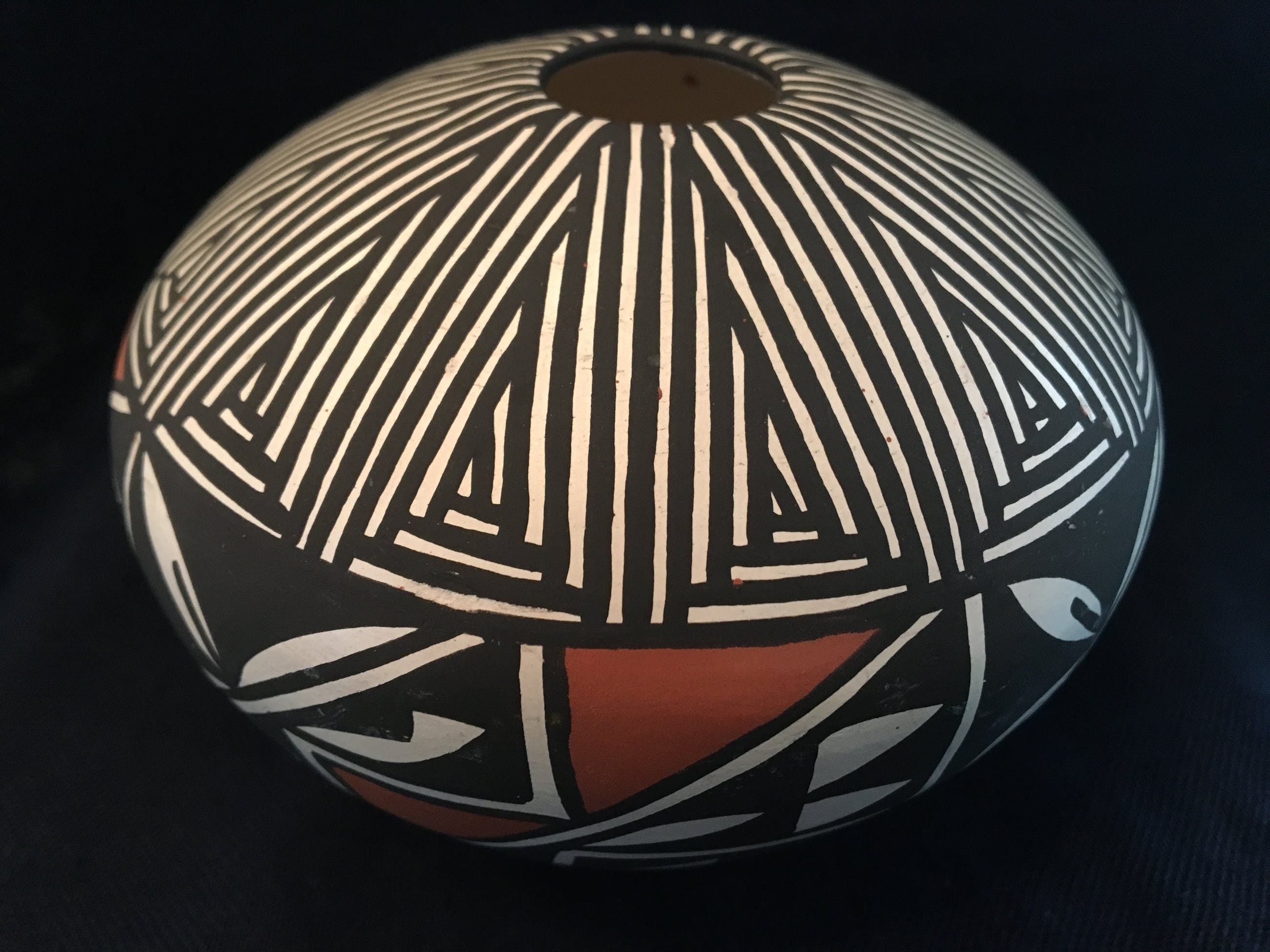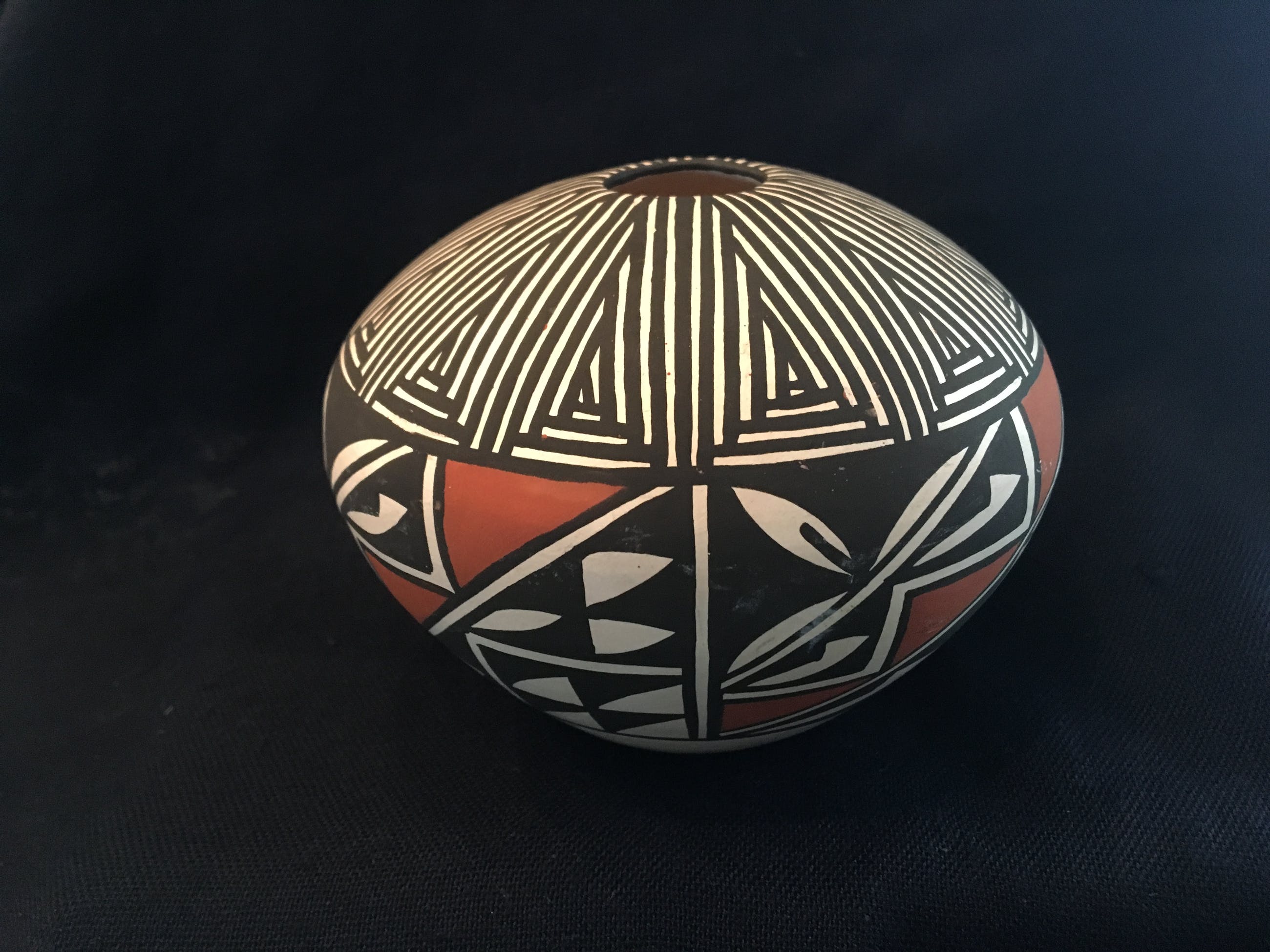 Afkomstig uit het gebied Acoma, waar al eeuwenlang door De Indianen gebruiksvoorwerpen worden gemaakt door de klei die daar in de omgeving wordt gevonden. Nu wereldwijd als kunstvoorwerpen gezien en verzameld.
