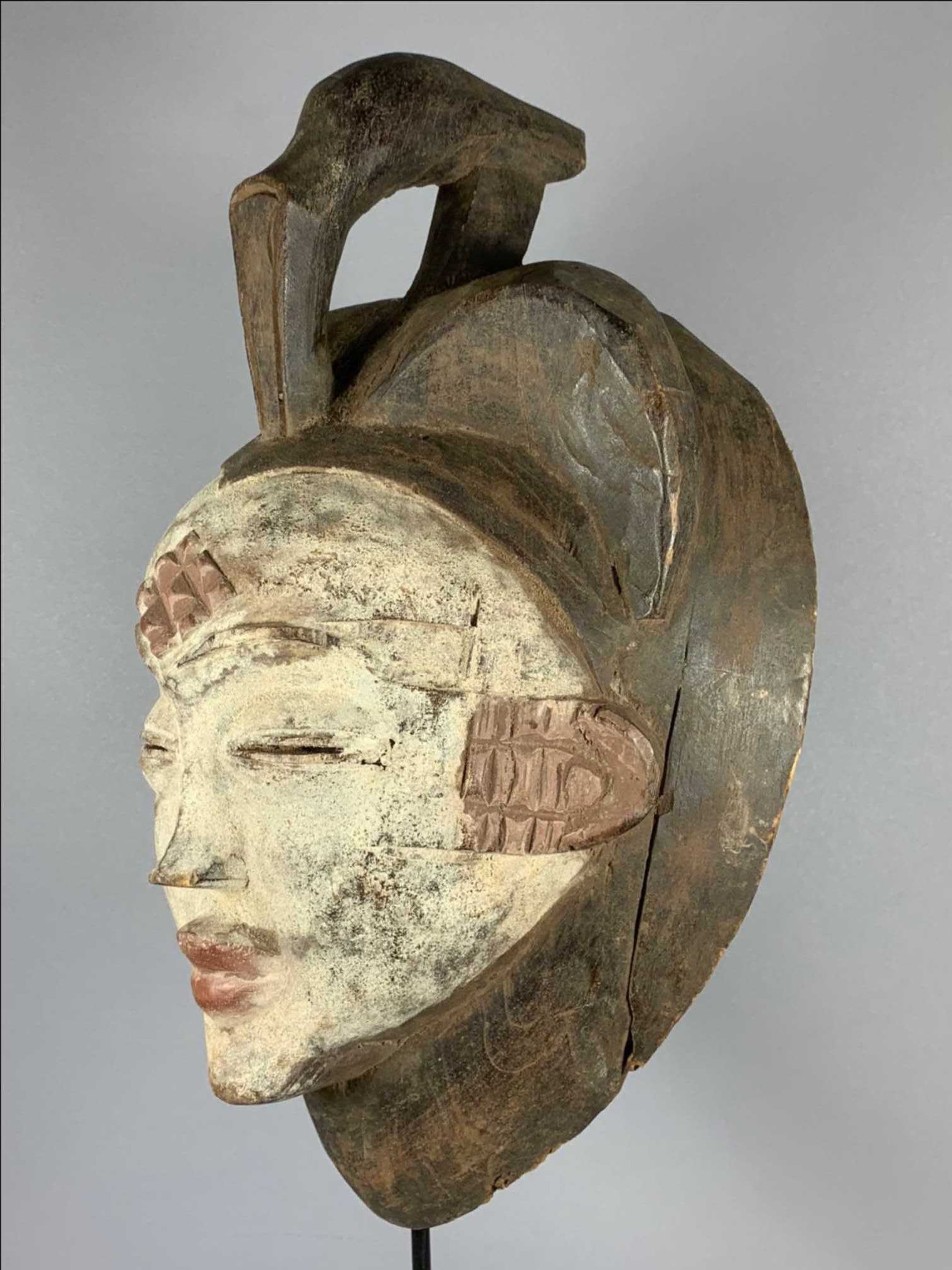 The Punu reside on the left bank of the Upper Ngoume River (Gabon) and belong to the group of tribes known as Shira which were originally part of the Luango kingdom of Angola. With the Eshira, the Lumbo, the Vili, the Galoa, and the Vungu people, the Punu migrated northwards during the 18th century and settled in the area where they continue to inhabit to this day. They live in independent villages divided into clans and families, and social cohesion is ensured by a society known as moukouji. Its primary role is to regulate community life with regards to social and judicial matters, and mainly it applies itself to the neutralization of evil forces. To this end, officiates of moukoudji utilize a cult kit that includes statuettes, human relics and masks.
