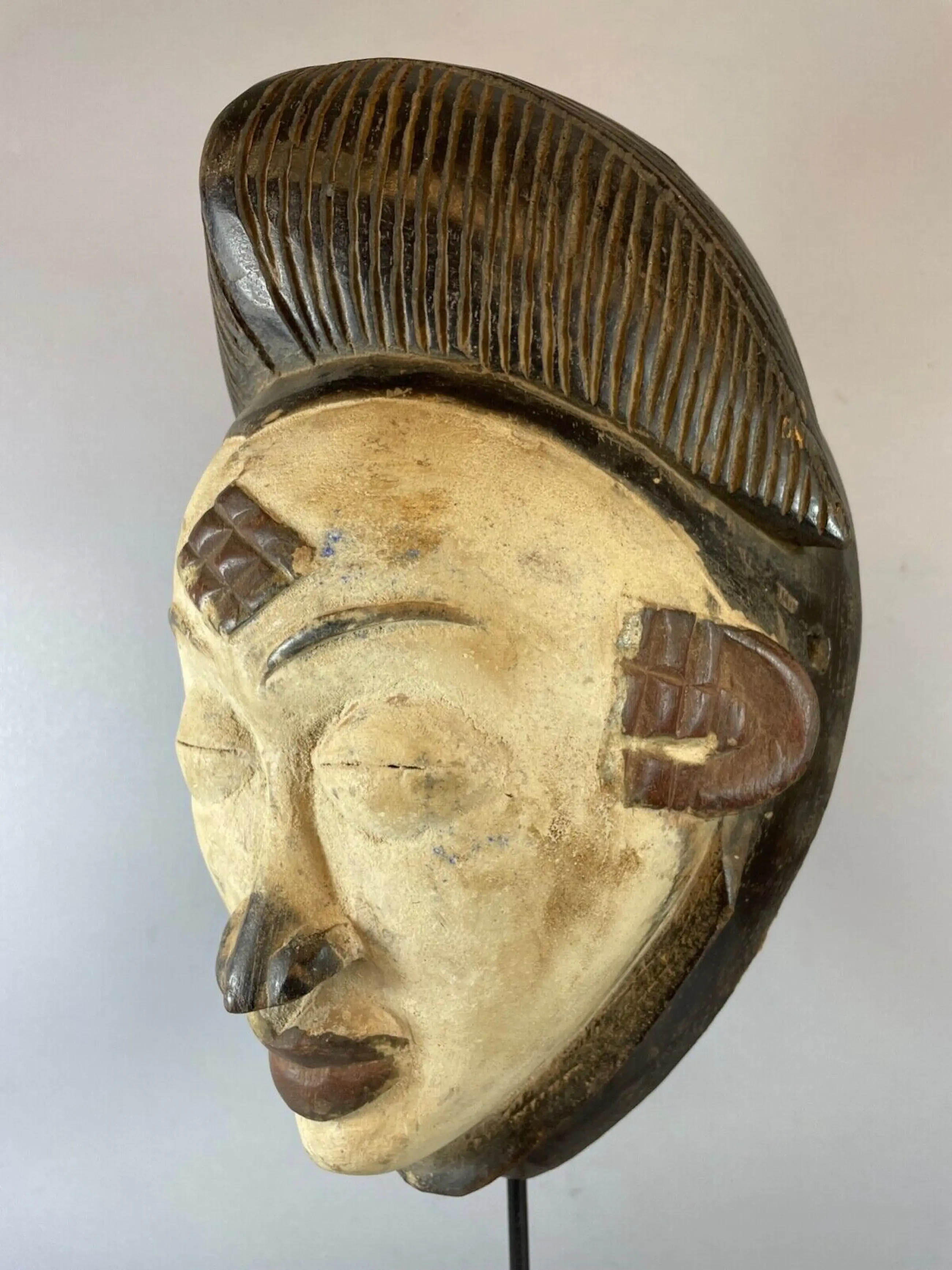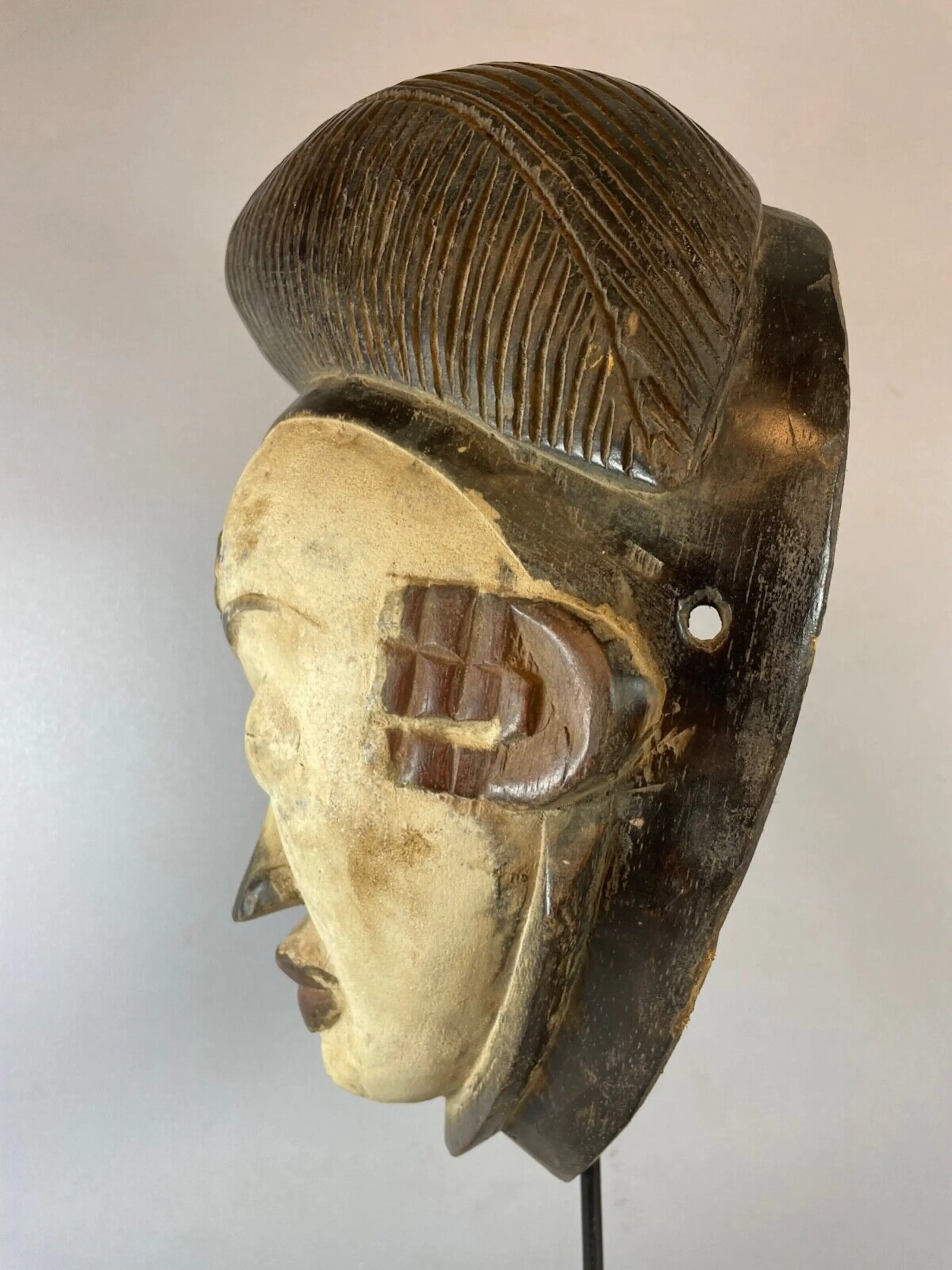 The Punu reside on the left bank of the Upper Ngoume River (Gabon) and belong to the group of tribes known as Shira which were originally part of the Luango kingdom of Angola. With the Eshira, the Lumbo, the Vili, the Galoa, and the Vungu people, the Punu migrated northwards during the 18th century and settled in the area where they continue to inhabit to this day. They live in independent villages divided into clans and families, and social cohesion is ensured by a society known as moukouji. Its primary role is to regulate community life with regards to social and judicial matters, and mainly it applies itself to the neutralization of evil forces. To this end, officiates of moukoudji utilize a cult kit that includes statuettes, human relics and masks.