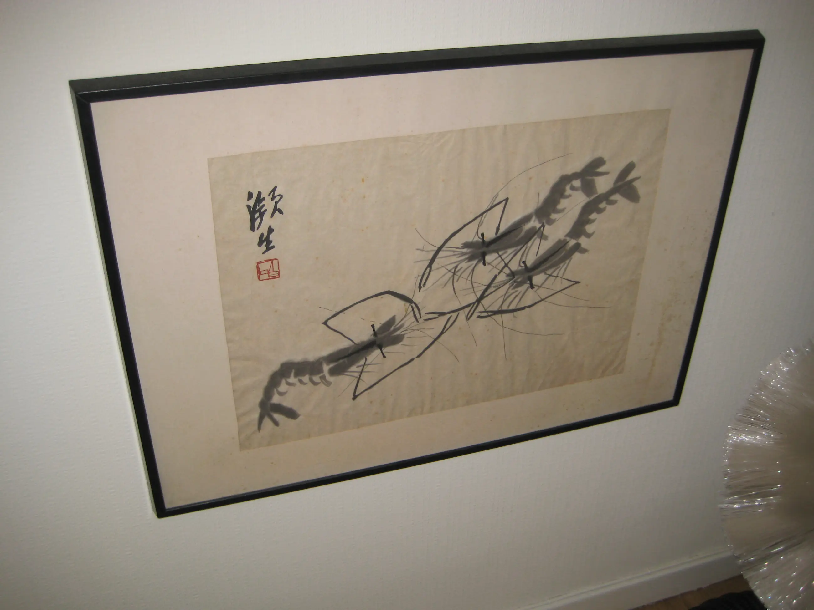 Qi Baishi is een van de grote meesters van de traditionele Chinese schilderkunst uit de 20e eeuw. Zesenzestig jaar na zijn dood blijft hij wereldwijd de beste ambassadeur ervan. Het schilderij is een authentieke vroege houtsnede uit 1952. De expertise werd geleverd door Art Free Gallery Brussels: Er zijn collecties houtsneden uit 1952, gepresenteerd als reproducties van schilderijen van Qi Baishi. Ik moet erbij vermelden dat de inkt inderdaad op rijstpapier (zeer dun) is gedrukt. Dit is de eerste editie, gedrukt in 1952.