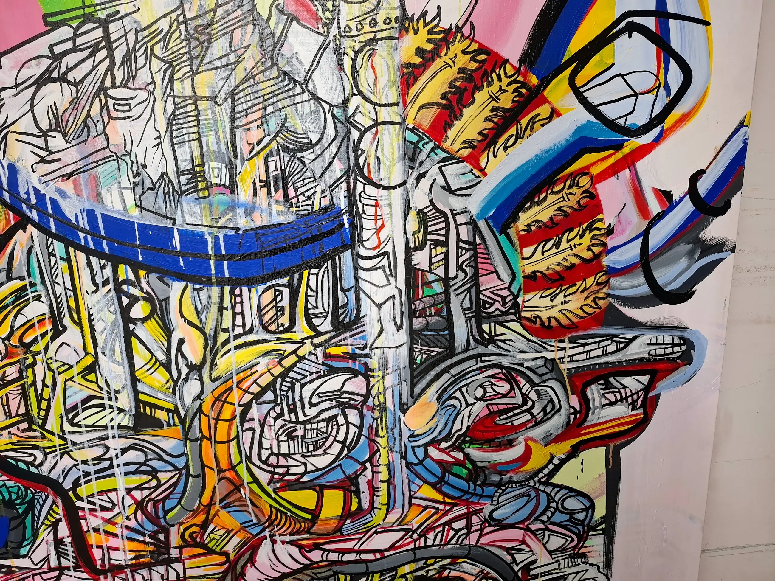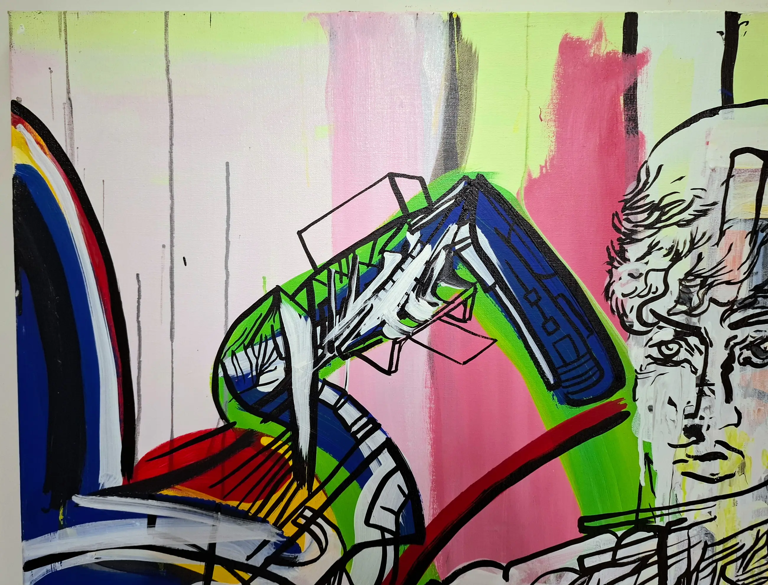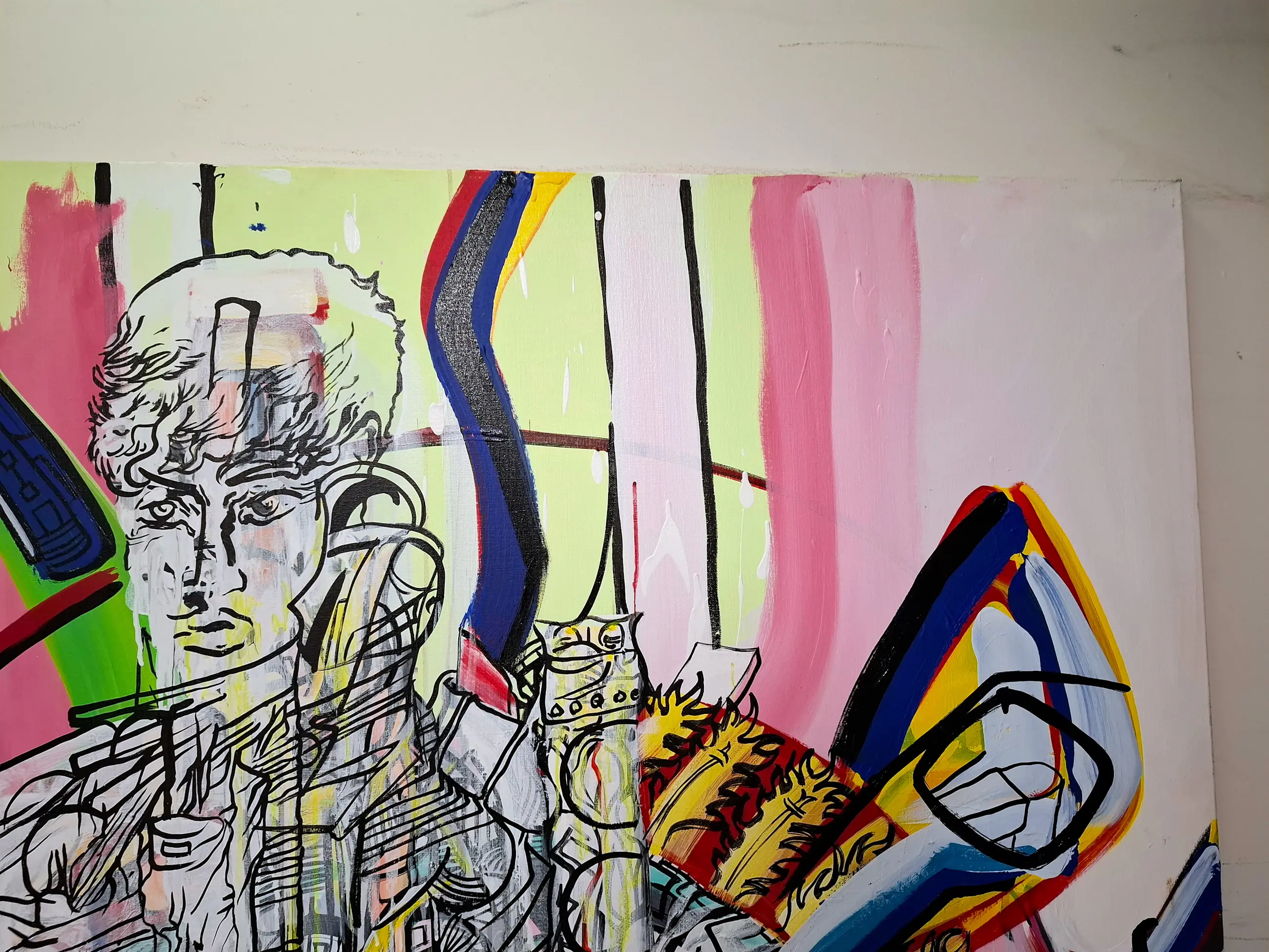 Rachid Ben Ali (1978) Zonder titel acryl op doek 180 x 150 cm niet gesigneerd maar absoluut gegarandeerd.