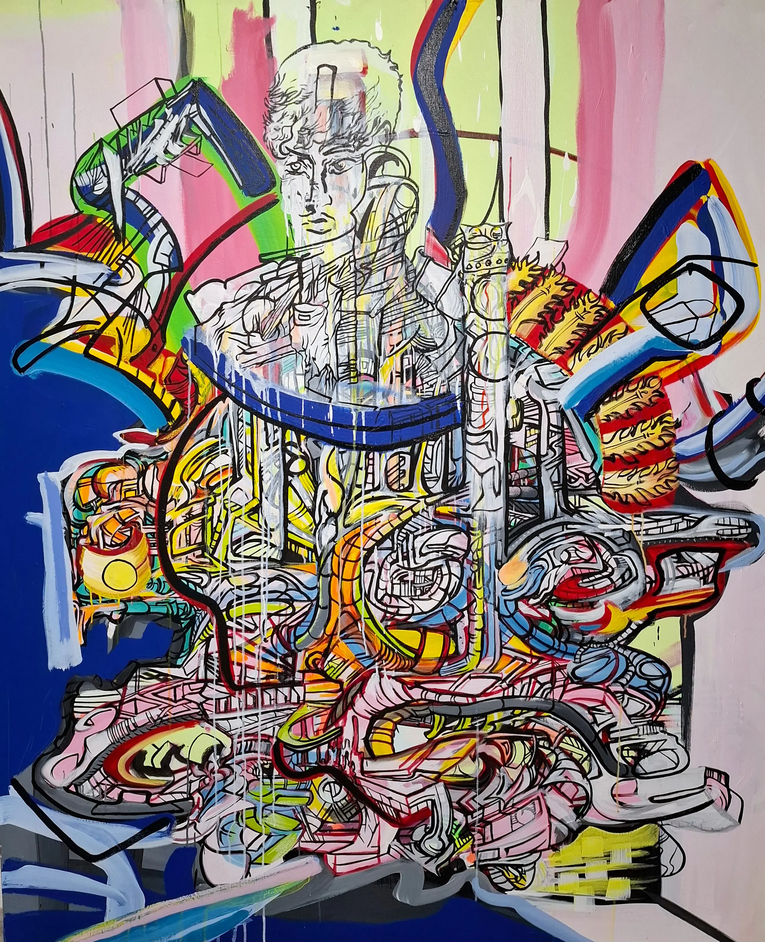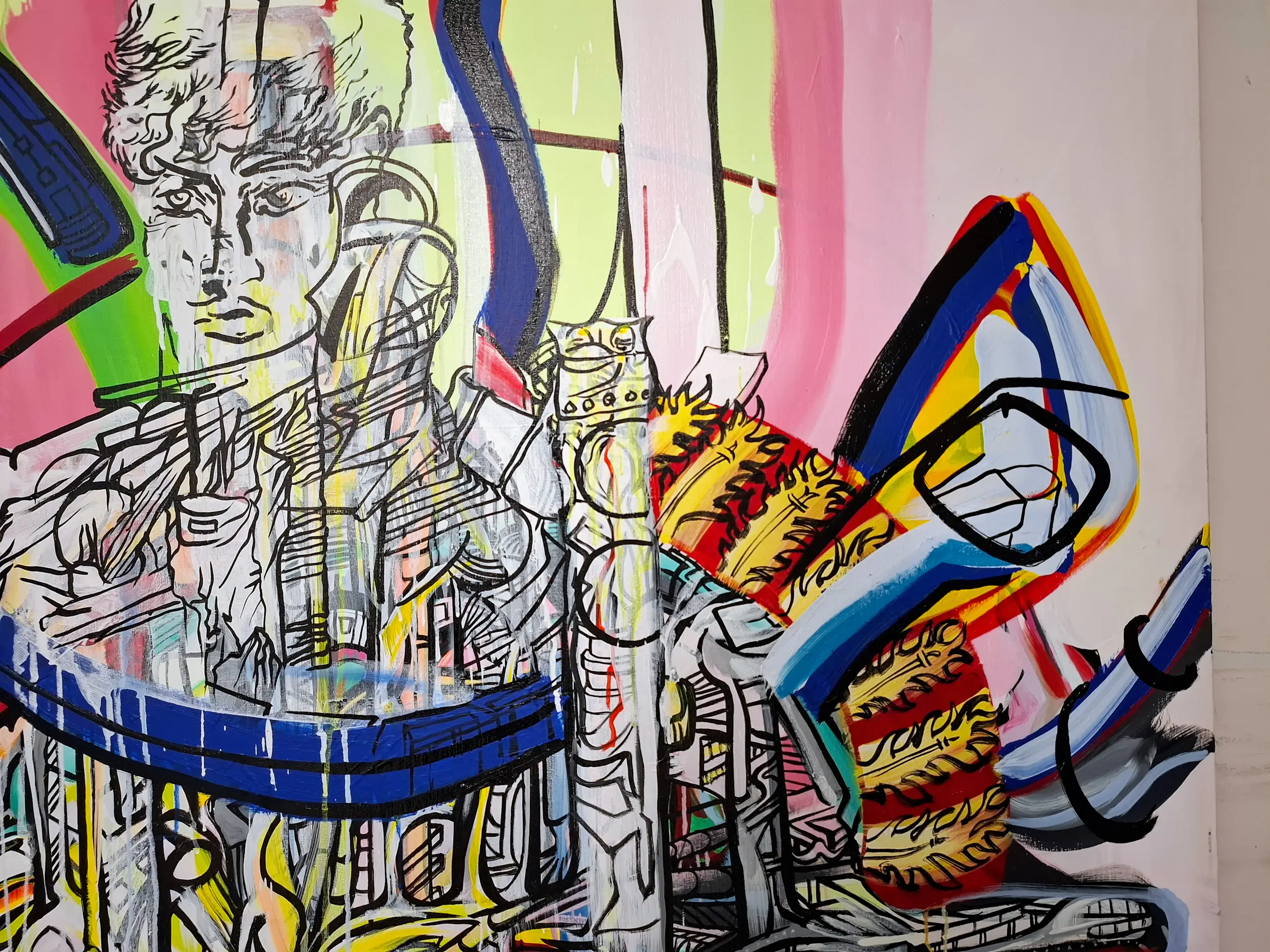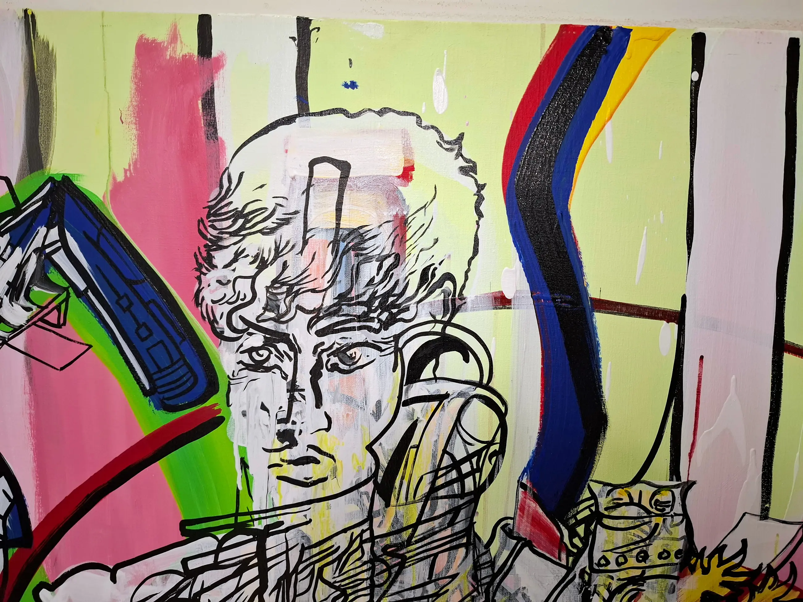 Rachid Ben Ali (1978) Zonder titel acryl op doek 180 x 150 cm niet gesigneerd maar absoluut gegarandeerd.