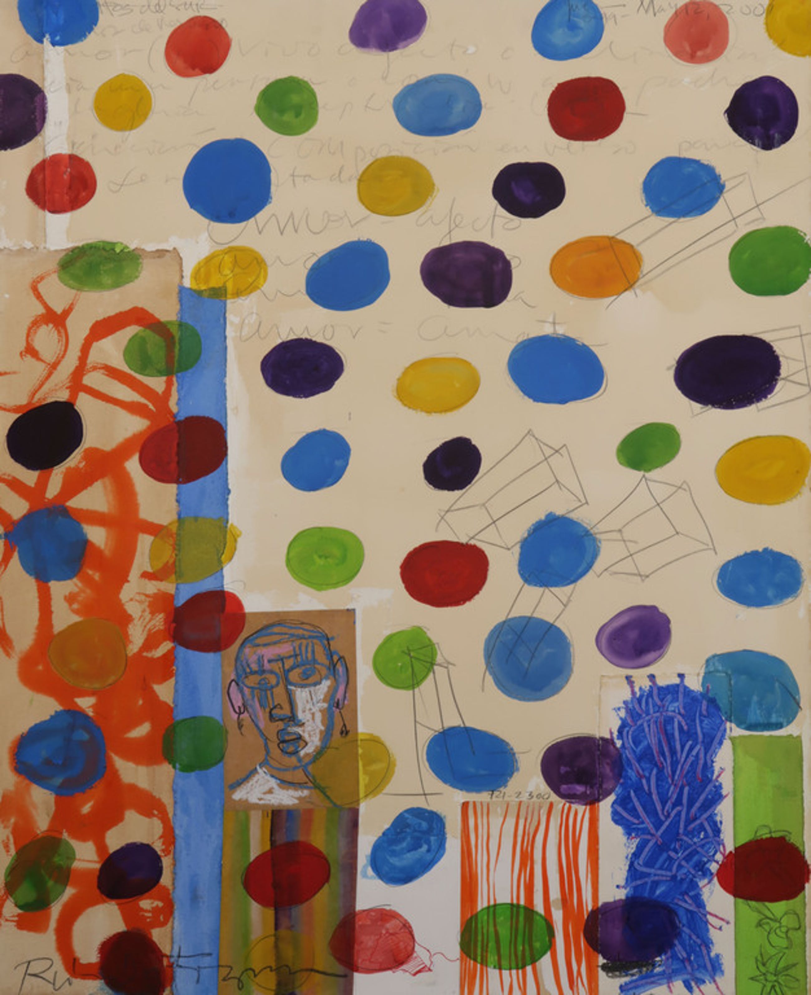 Materiaal: Gemengde techniek, o.a. Potlood, Gouache en Collage op papier op canvas