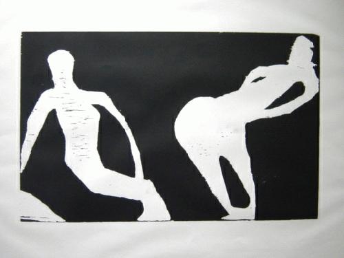 Rainer Noeres - Holzschnit (Andruck), Akrobaten I, 1980, Bildgröße 37,4x59,5cm, Blattgröße 56,5x76,5cm, signiert