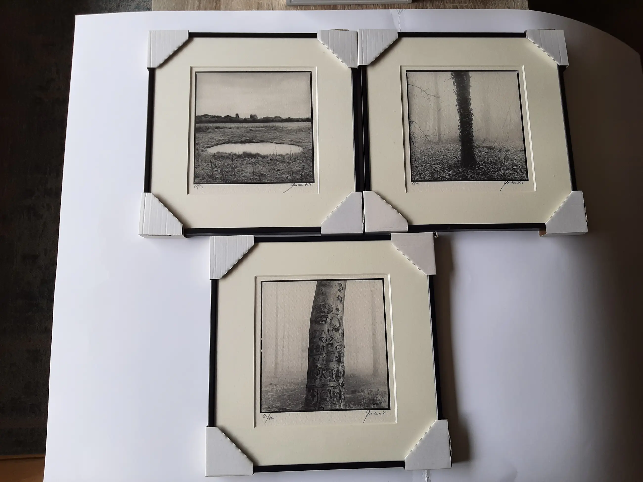 Ralph Janowski - 3 werken, van Ralph Janowski, Boom in de ochtend mist nieuw ingelijst