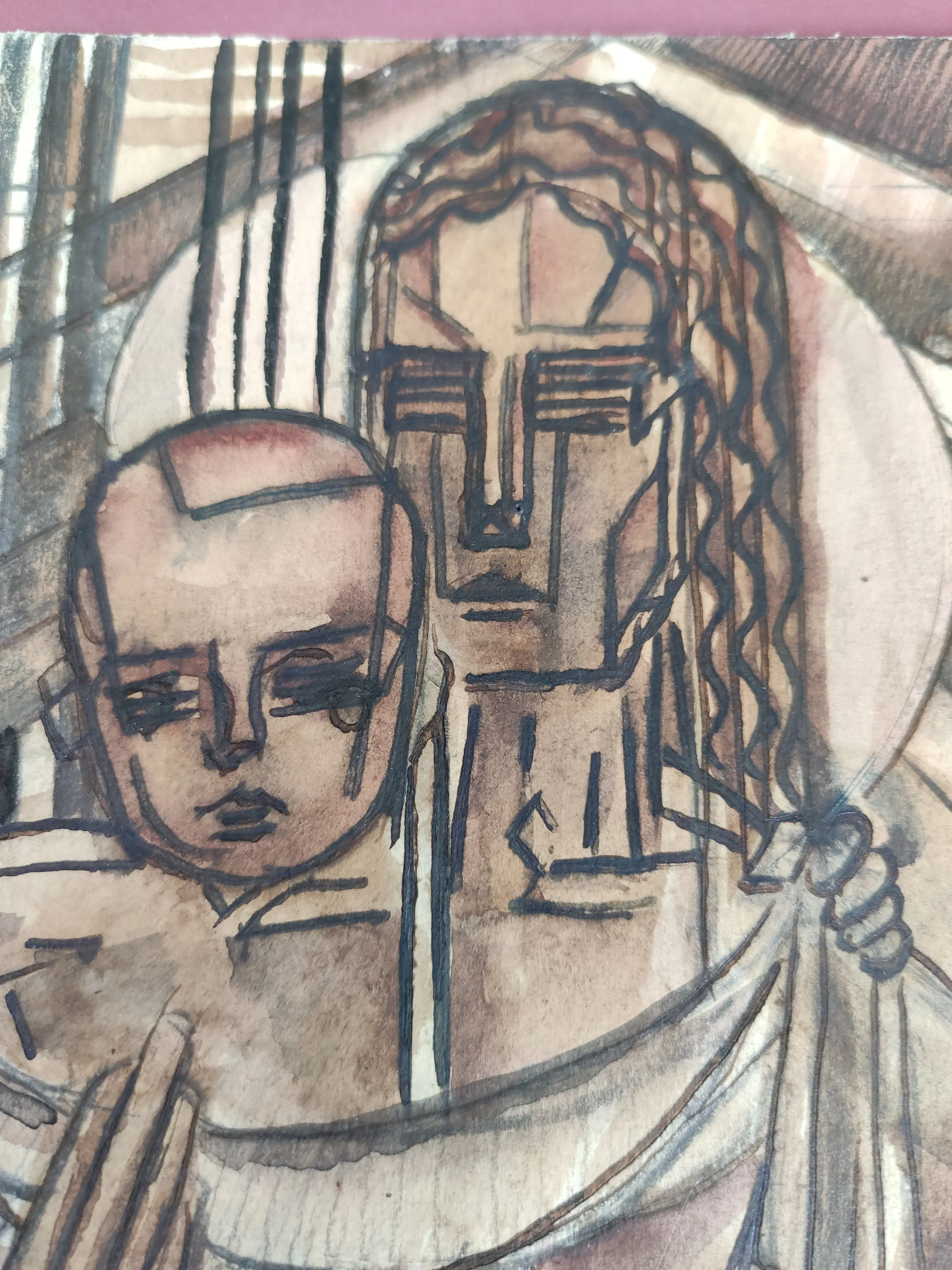 Afbeelding getekend op karton Datum van creatie onbekend De periode 1945 tot en met 1999 hoeft niet te kloppen Landgoedstempel op de achterkant Jaren geleden aan mij gegeven