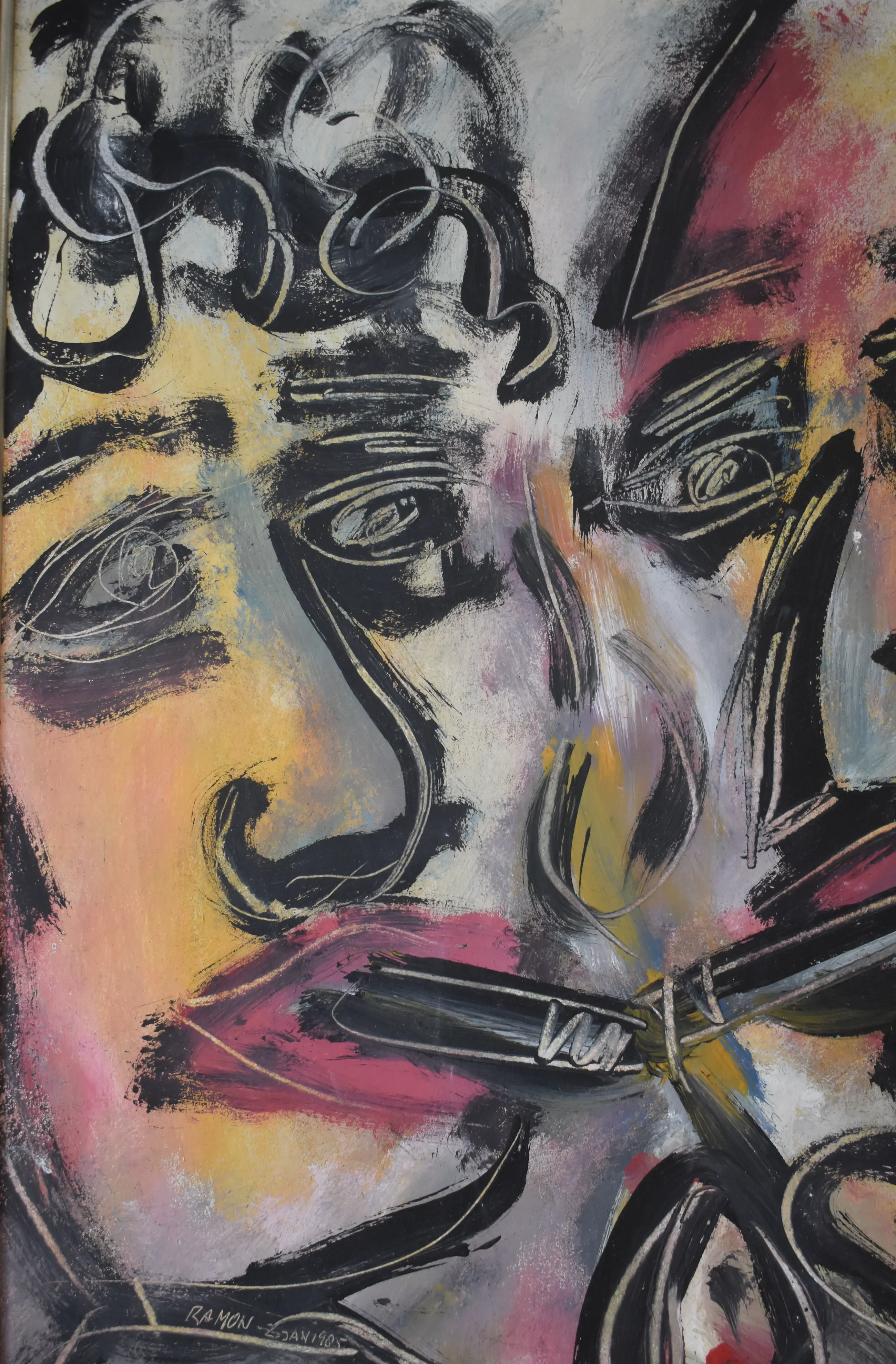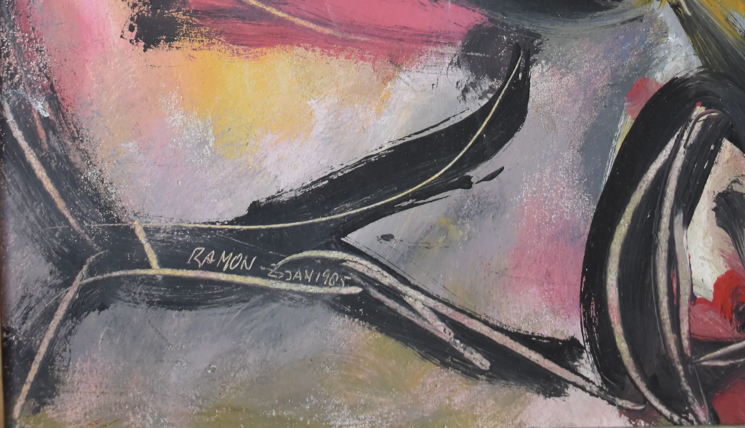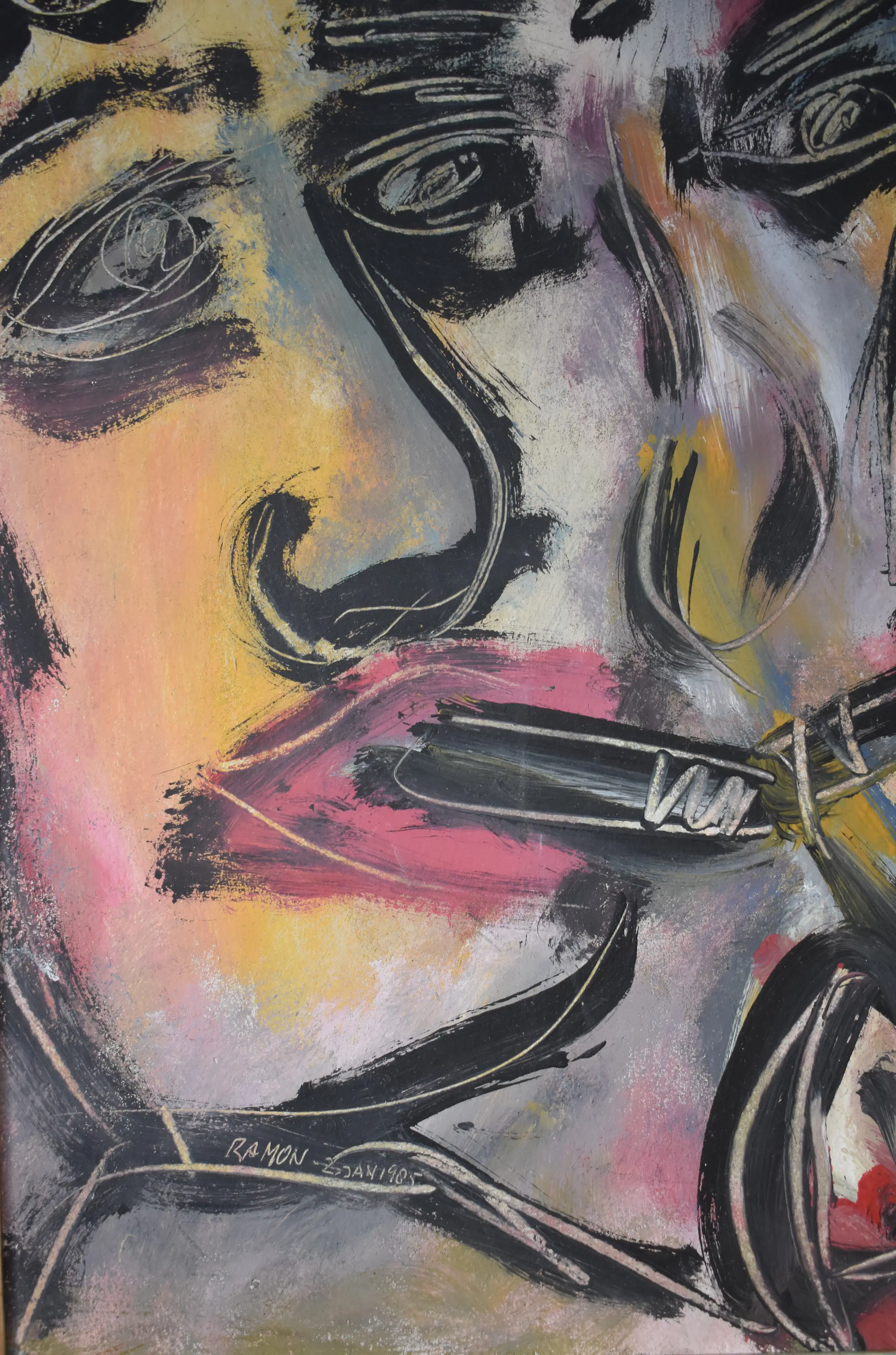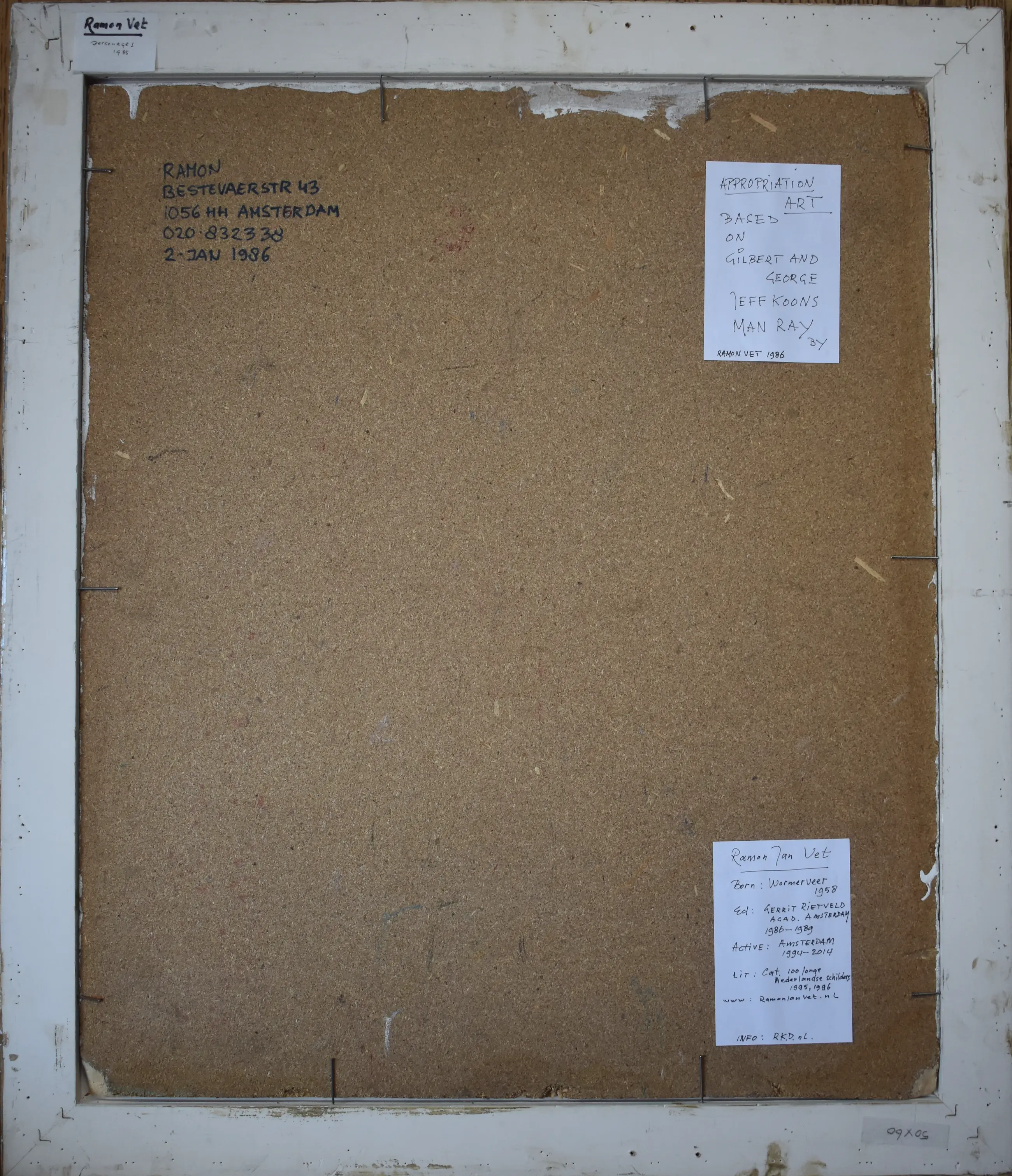 Ramon Jan Vet heeft het werk gesigneerd op de voorzijde en voorzien van zijn naam en adres, alsmede de vervaardigingsdatum 1985 op de achterzijde. Vet was duidelijk gefascineerd door de sterke vernieuwende stromingen van kunstenaars uit de Verenigde Staten zoals Warhol, Haring, Man Ray en anderen. In Nederland wordt dit soort kunst zelden getoond. Zeker niet wanneer het ook nog eens in deze periode is vervaardigd. Bijzonder en zelden aangeboden kunstwerk.