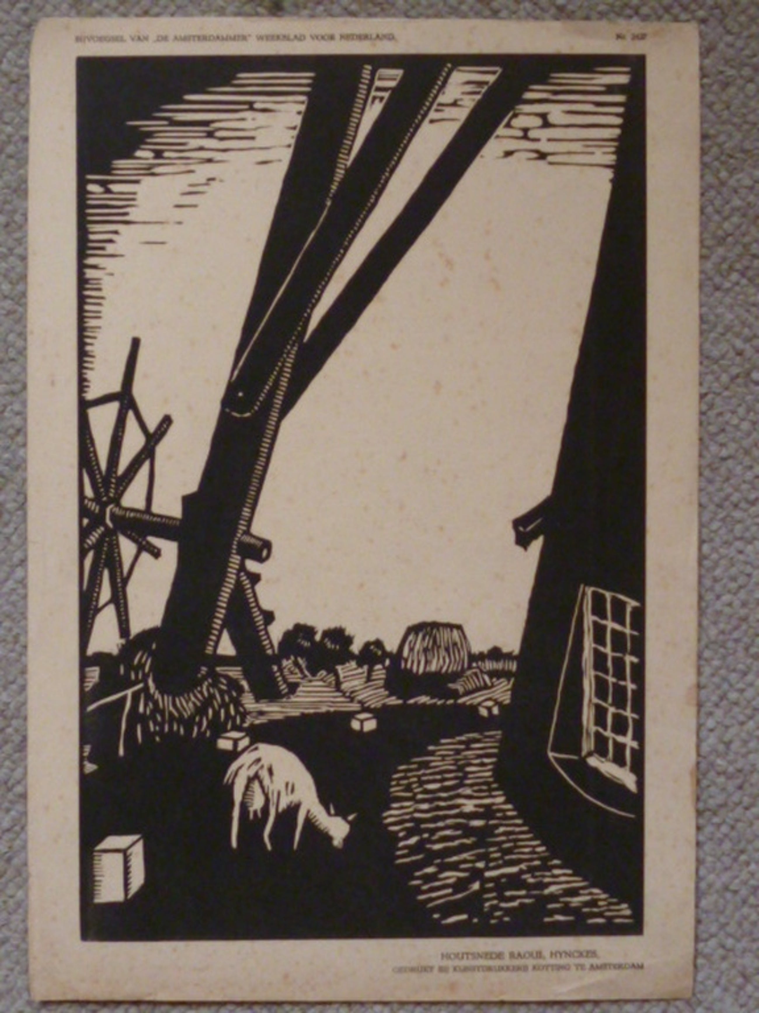 Houtsnede, beeldmaat 33,5 x 21,5 cm. Bladmaat 37 x 25,5 cm. Losbladig.