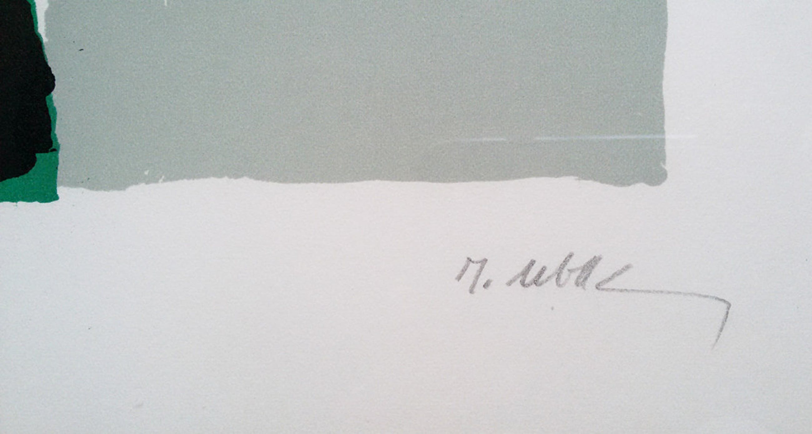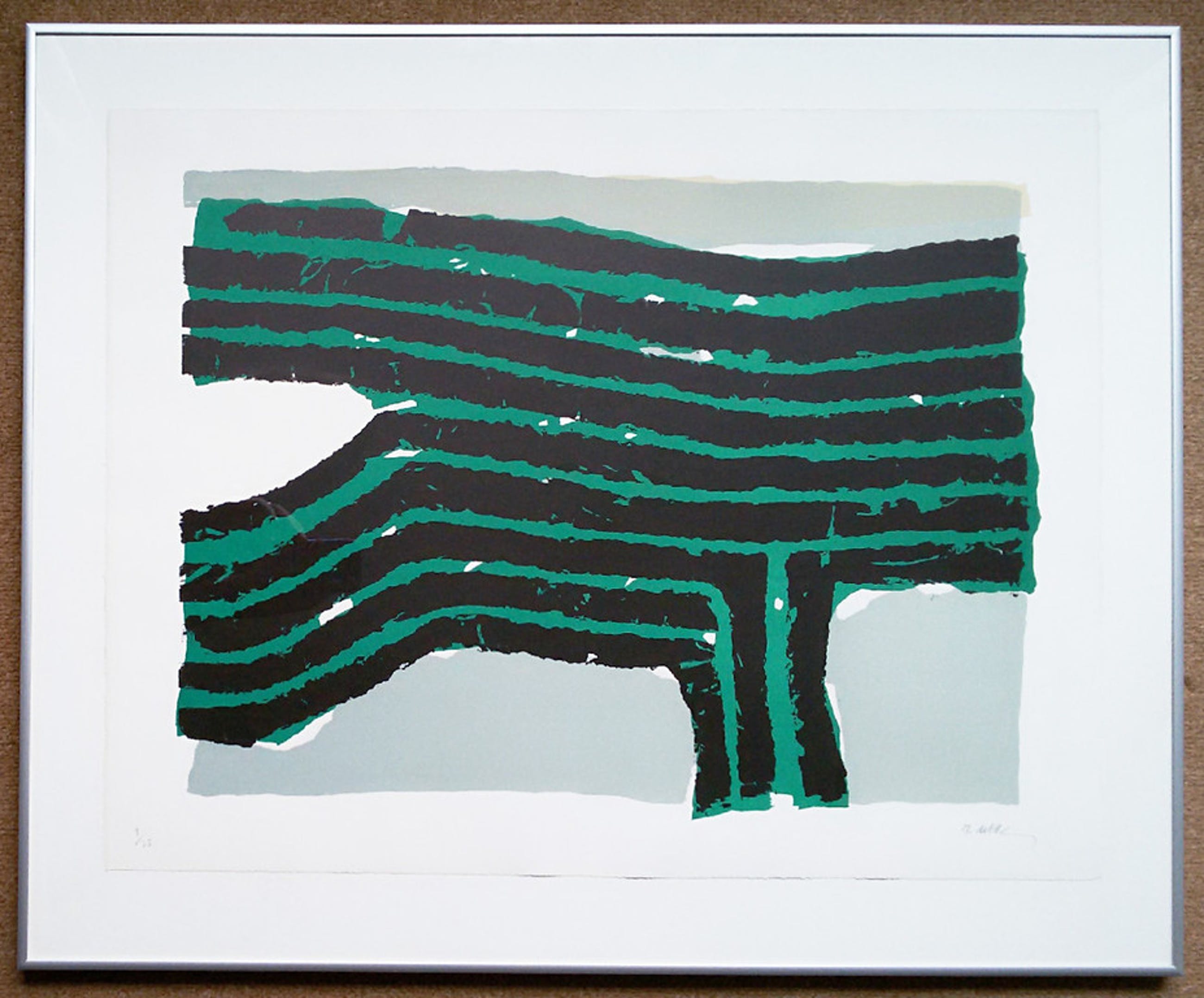 Karakteristieke compositie van de Belgische kunstenaar Raoul Ubac (1910-1985). Litho op Rives papier, met potlood gesigneerd en genummerd (9/75). Mooi ingekaderd door de firma Schleiper & Fils uit Brussel; alles in uitstekende conditie. Het blad is ingelijst zonder passe-partout, de uiterste rand van het blad (<1mm) is enigszins vergeeld; even uit de lijst halen, een mooi passe-partout er voor zetten en het complete werk is als mint te omschrijven.