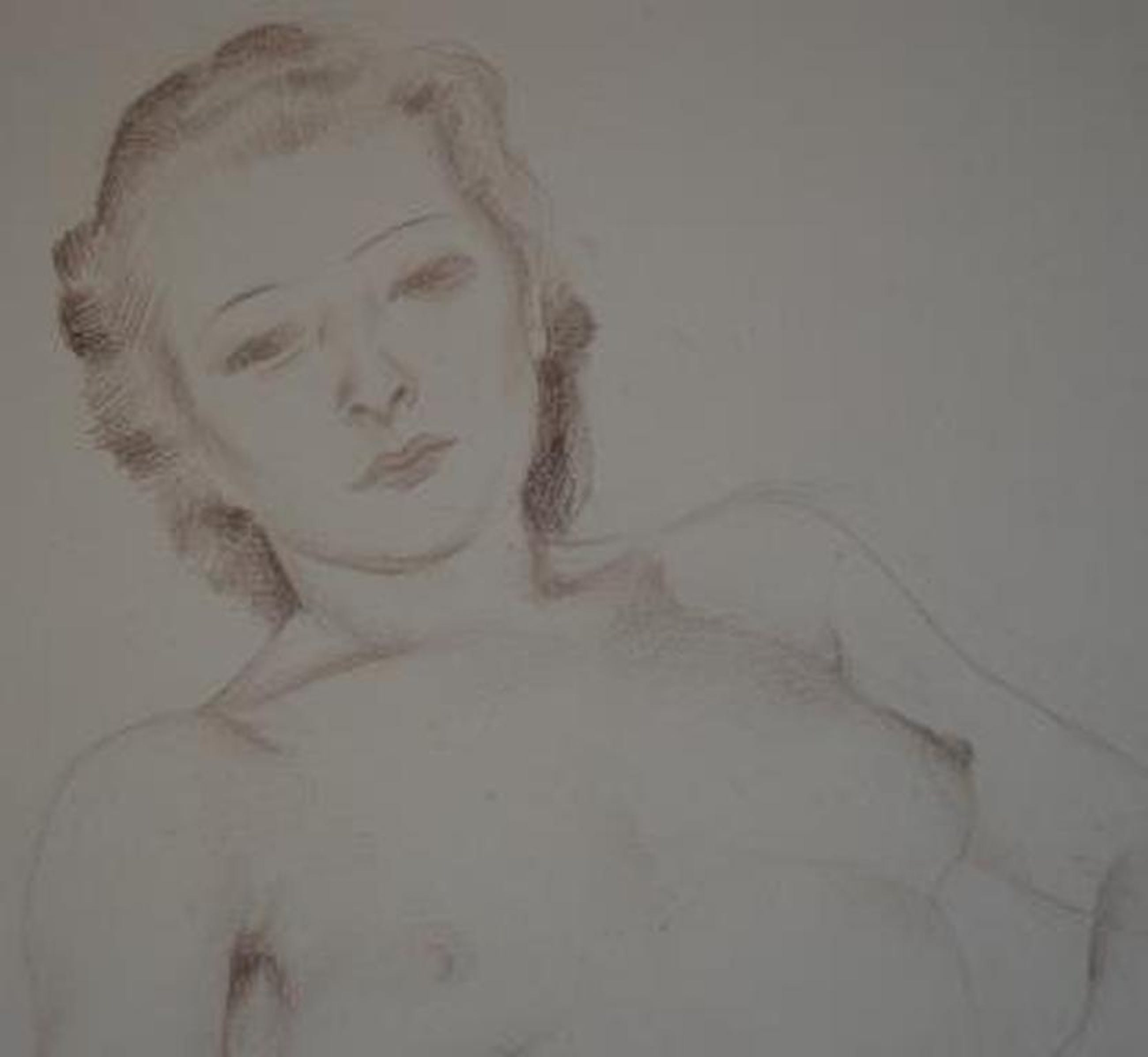 Halfnaakt van Raphael de Buck - gesigneerd r.o. op net passepartout.