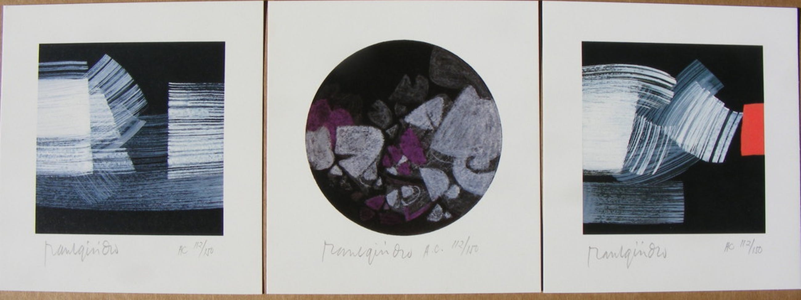 Drie zeer fraaie litho's van de gerenommeerde kunstenaar Raul Isidro, in zijn typisch abstracte stijl.