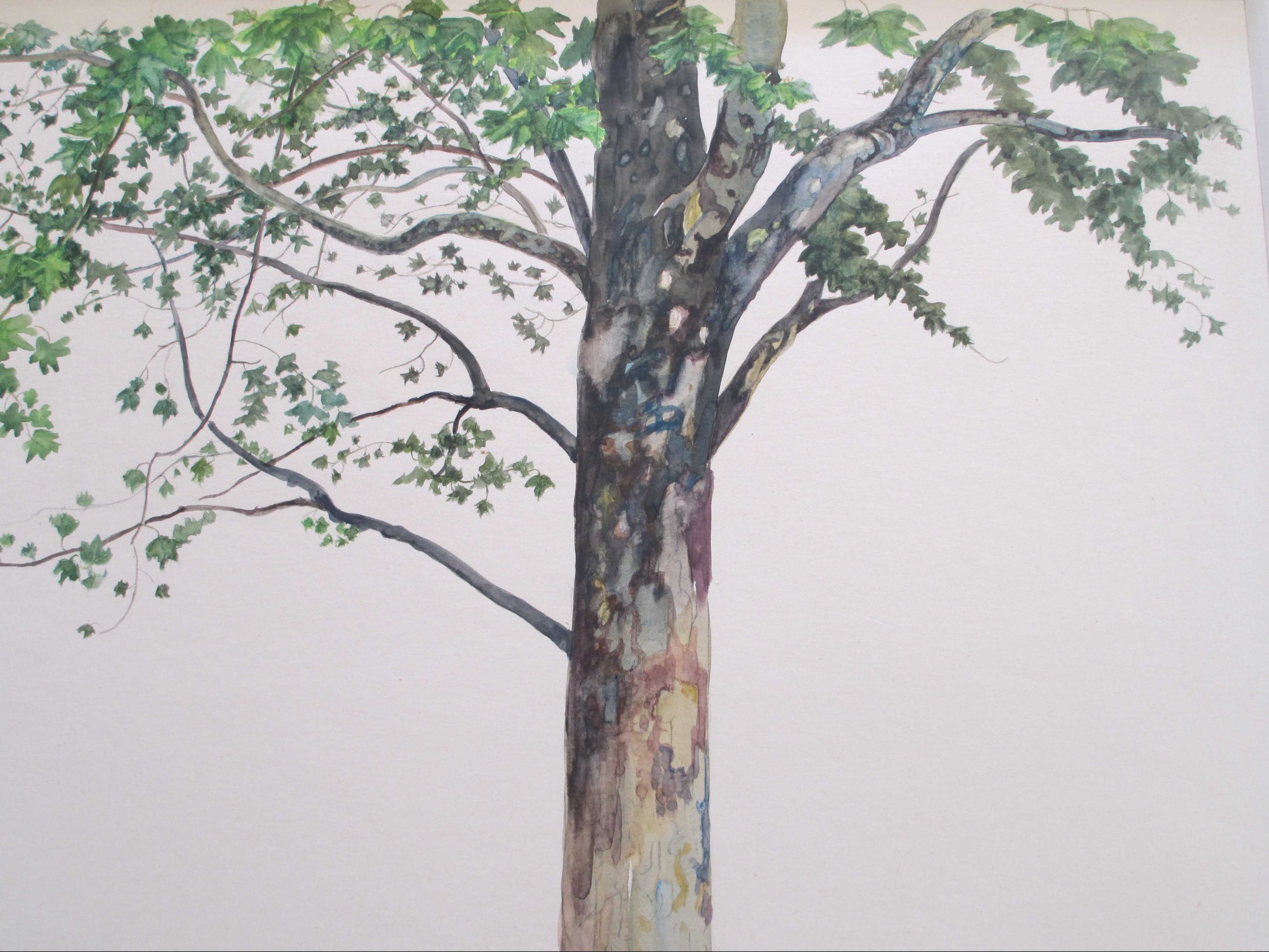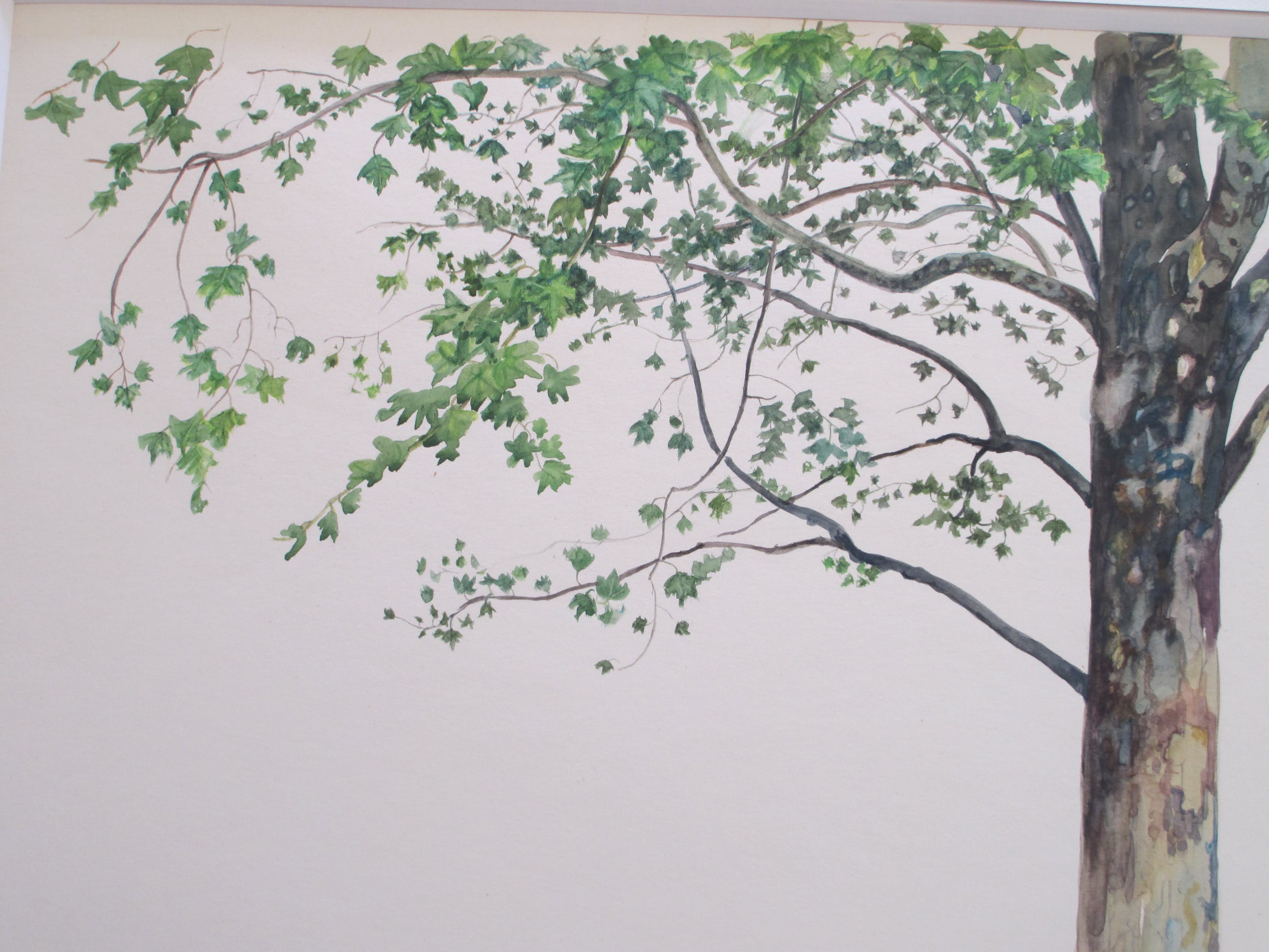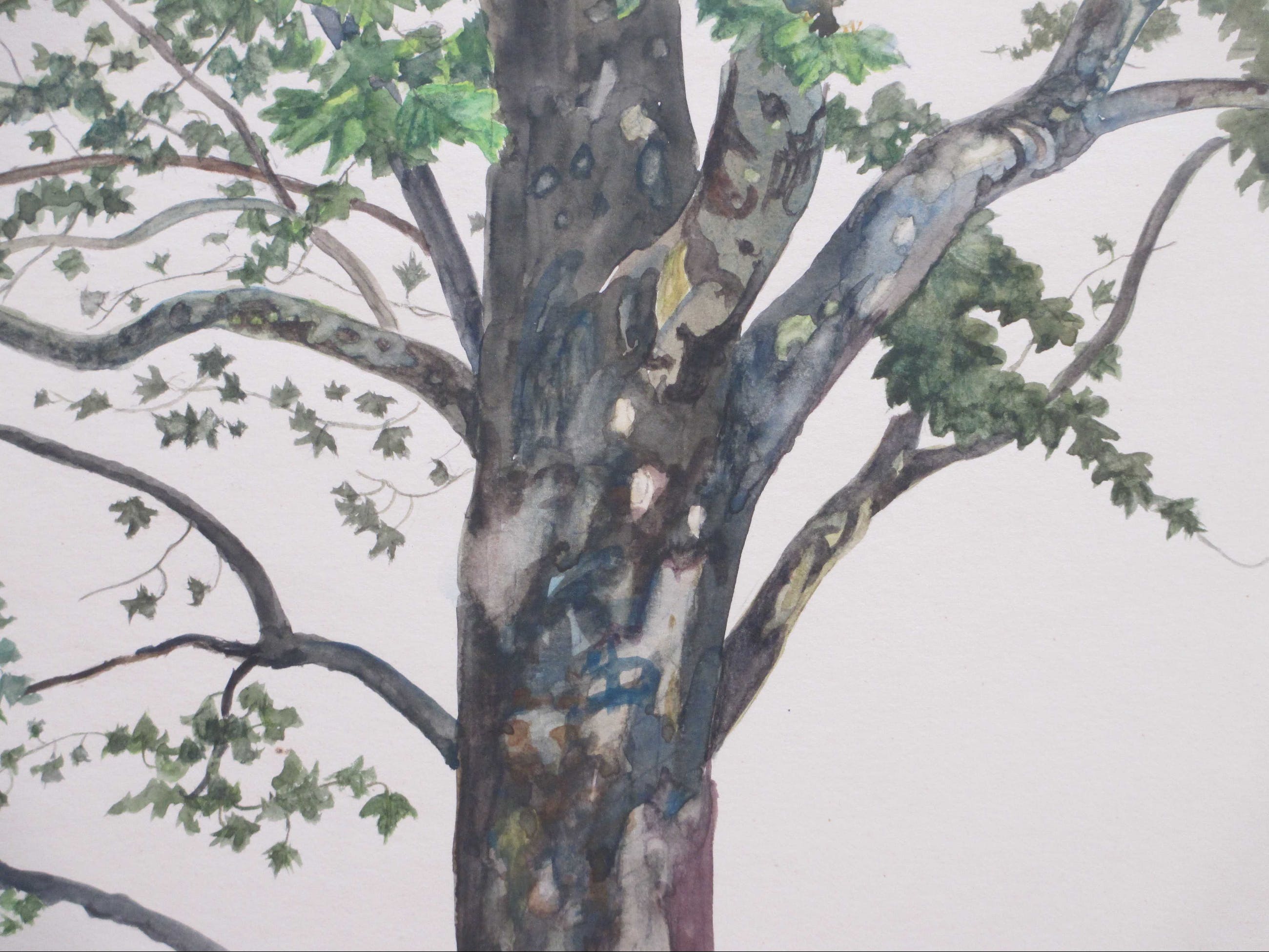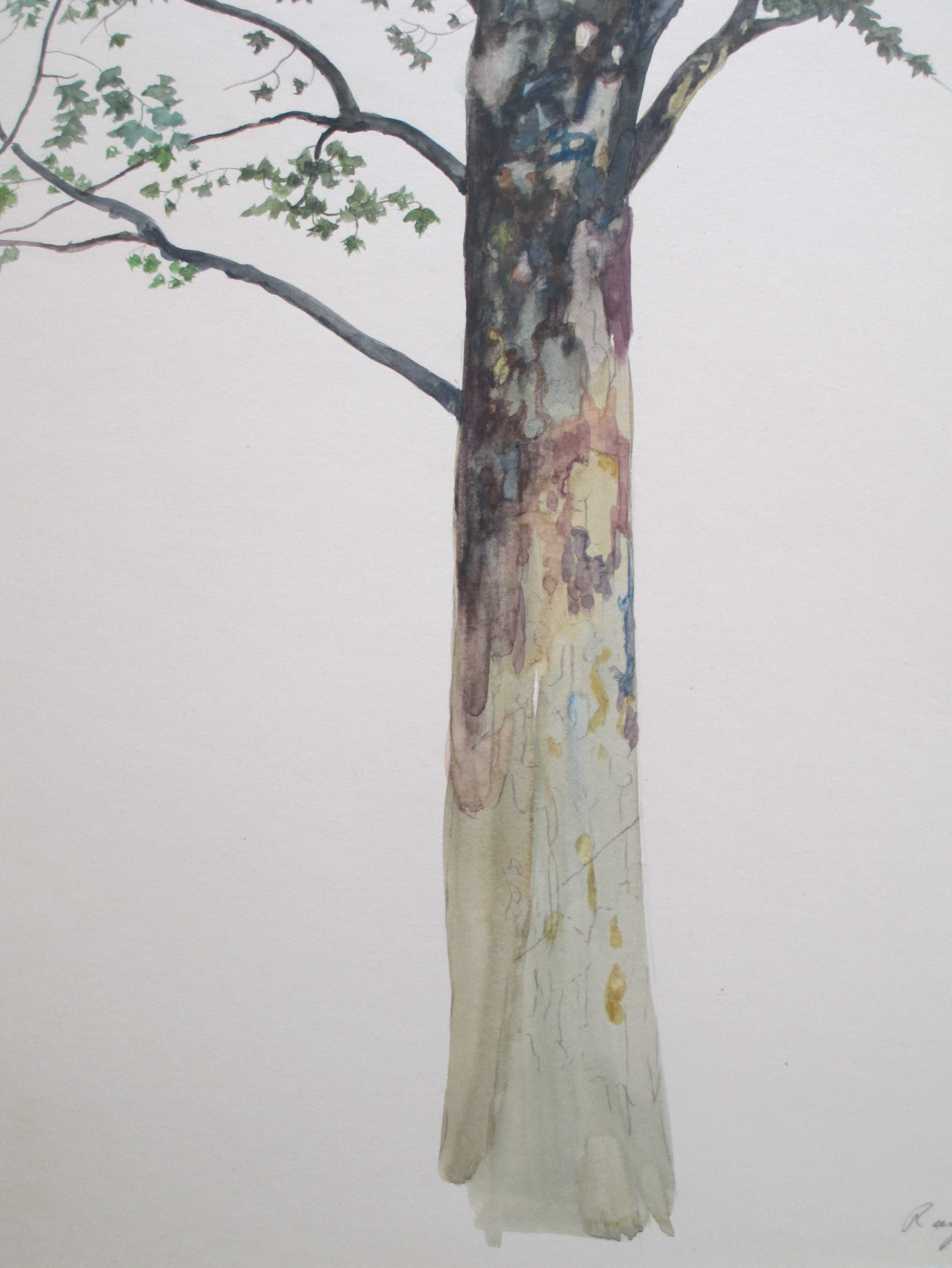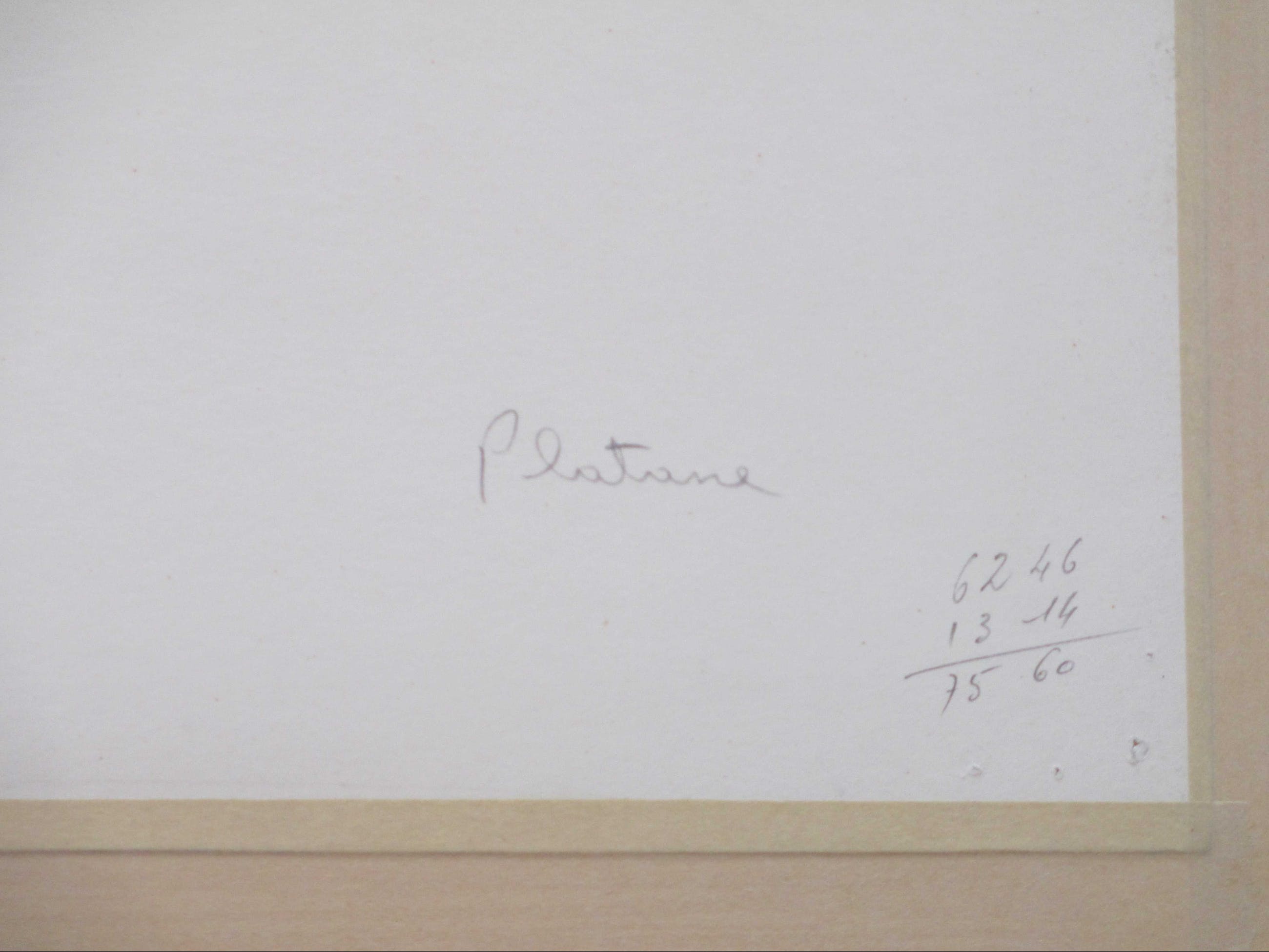 Bijzondere aquarel door Raymond Mason Voorstelling van een plataan Aquarel onder passepartout, beeldmaat 44x60, p.p.maat 60x75 Gesigneerd en gedateerd in potlood r.o.: 'Raymond Mason 1972' Getiteld in potlood op achterzijde: 'Platane' Tevens verdere annotaties in potlood op achterzijde