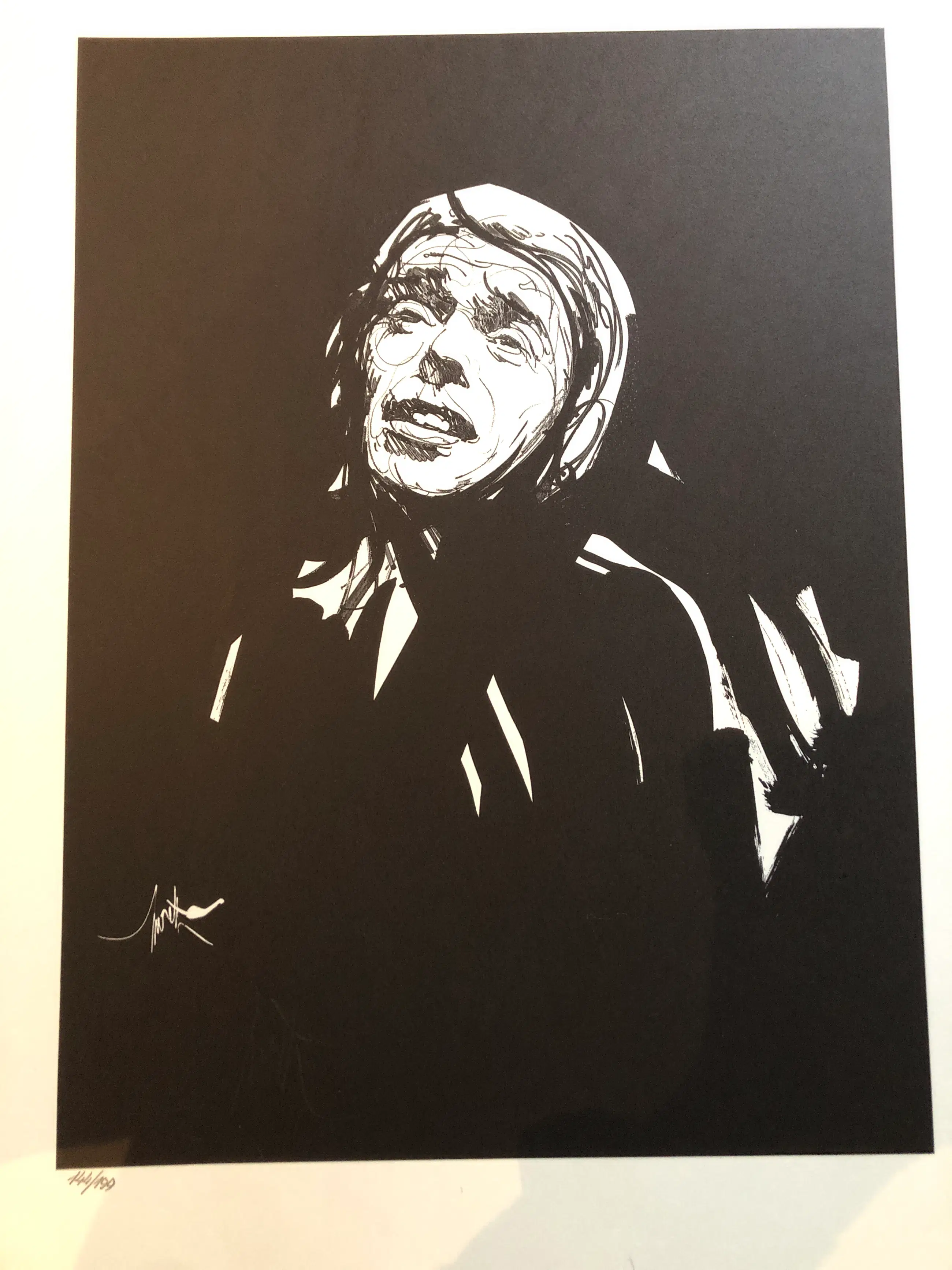 Één van de portretten die hij maakte van Brel. Gesigneerd in de druk en met potlood.