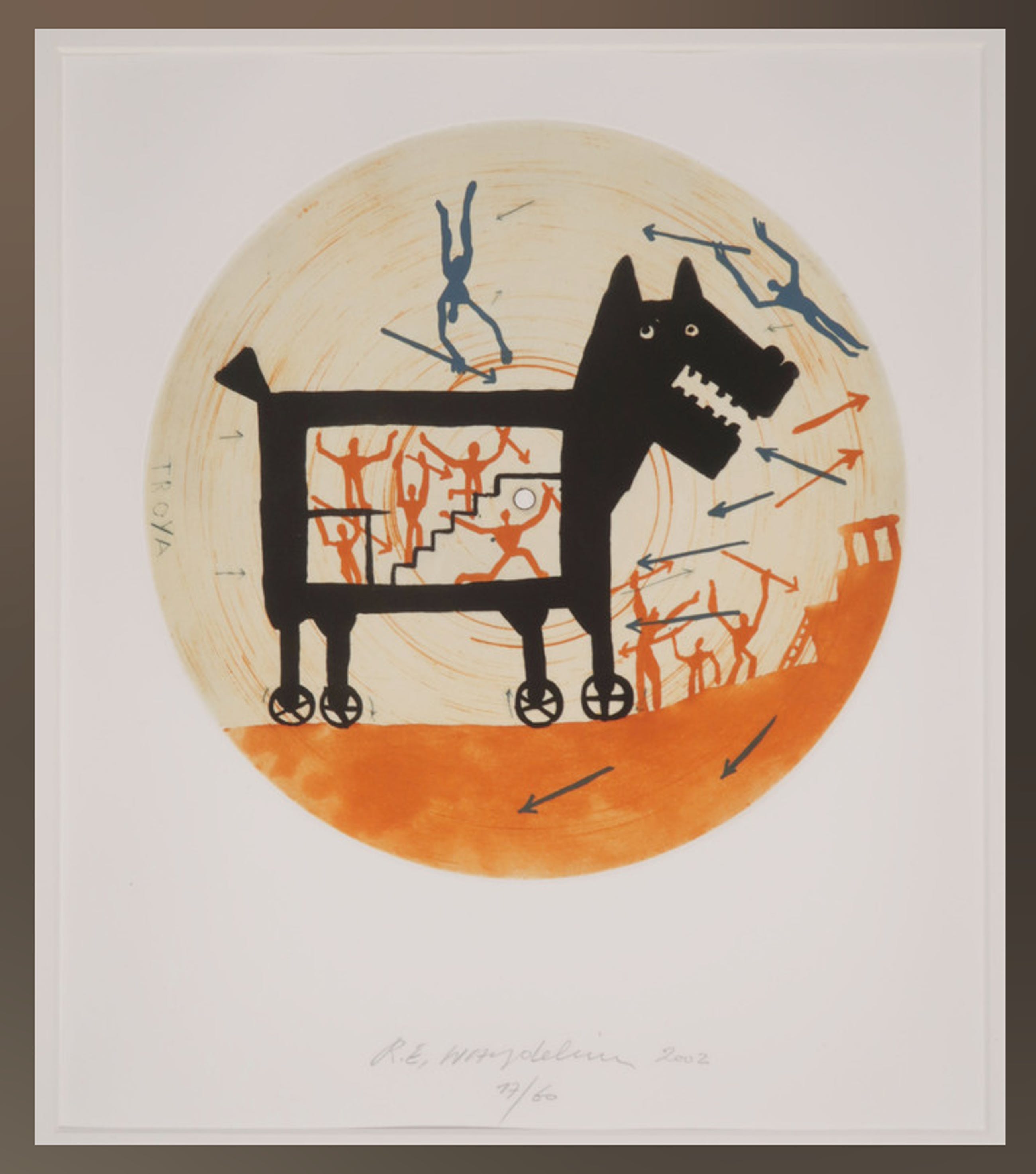 Aqua-gravure in passe-partout van de Franse kunstenaar Raymond Waydelich (Strasbourg 1938)