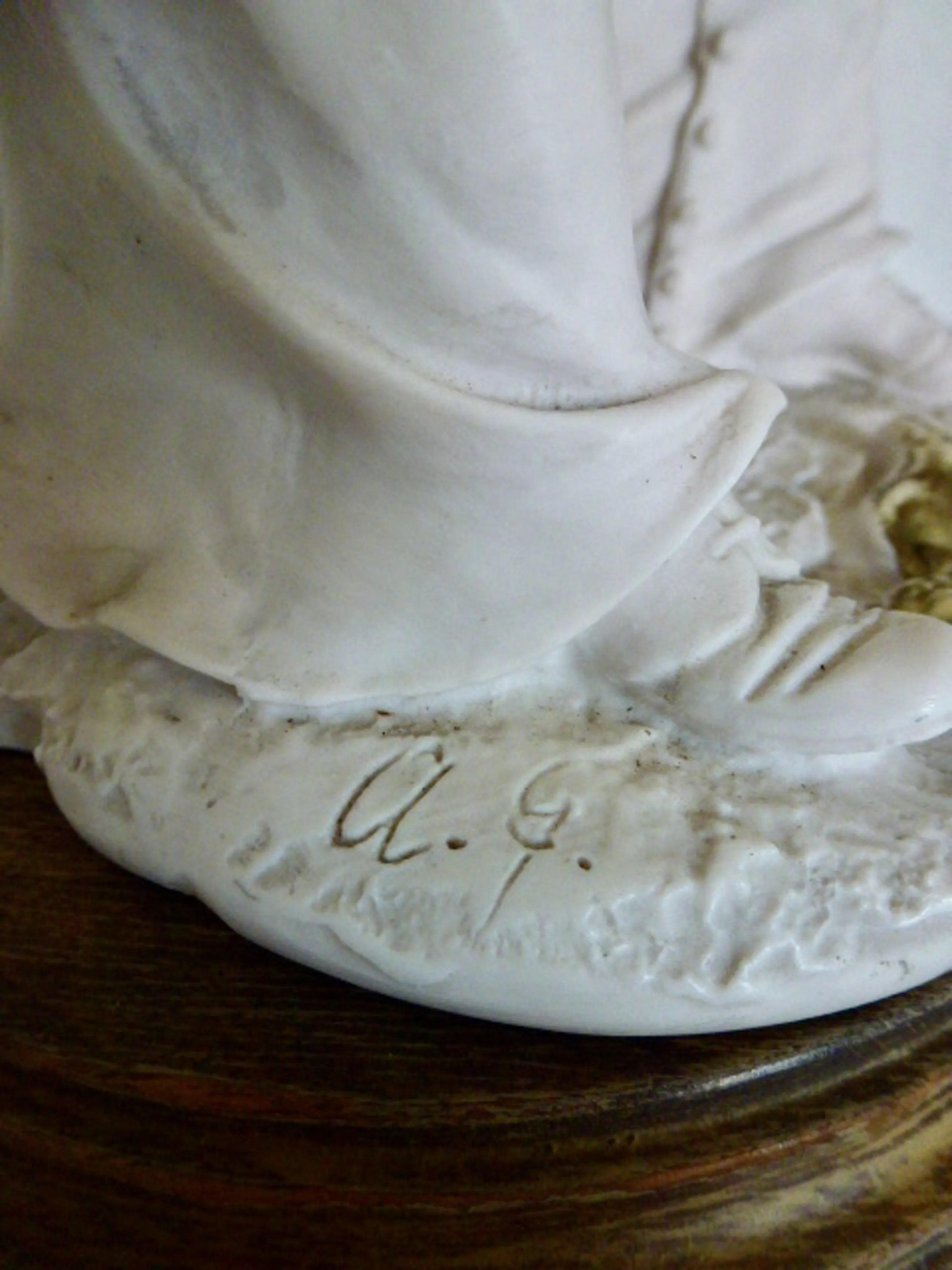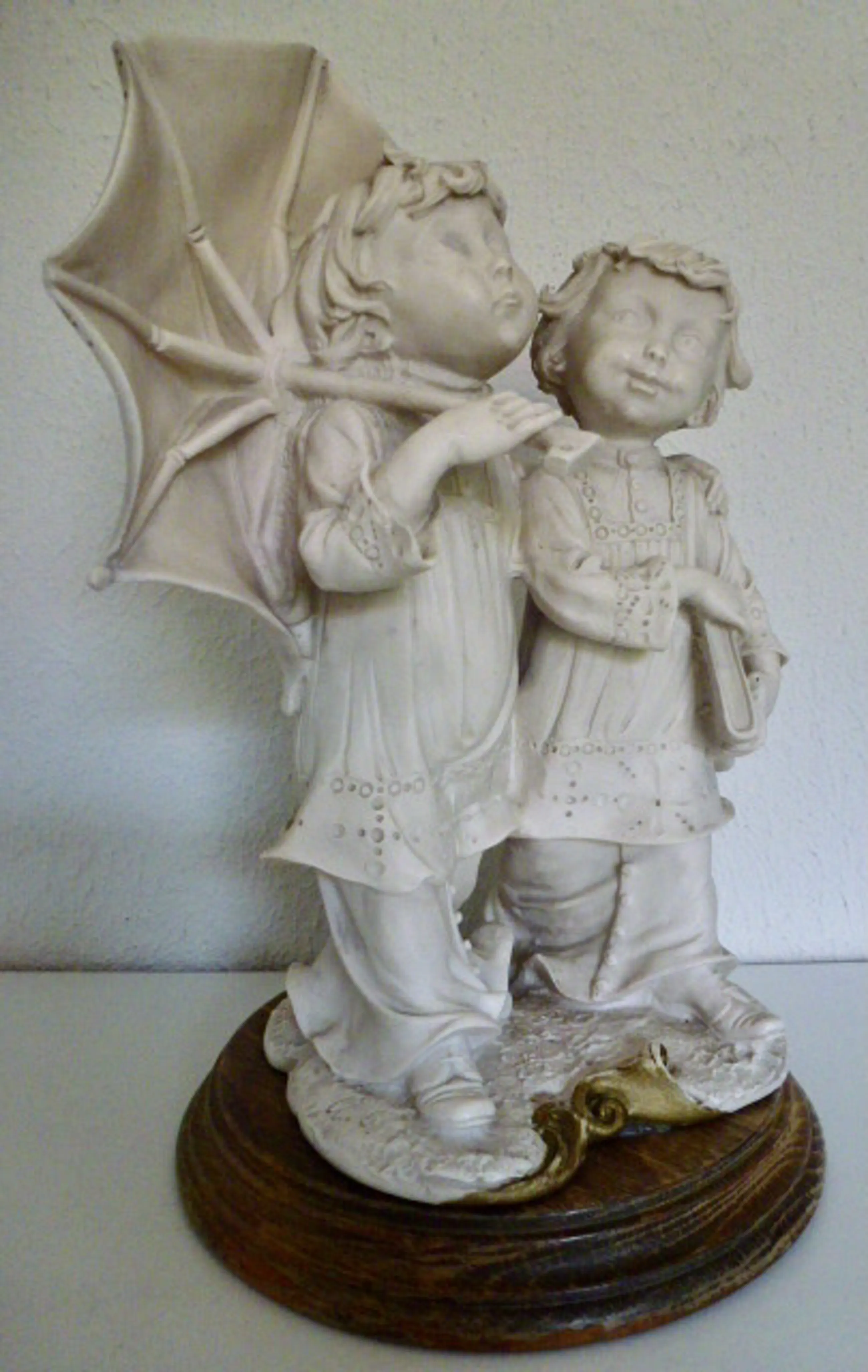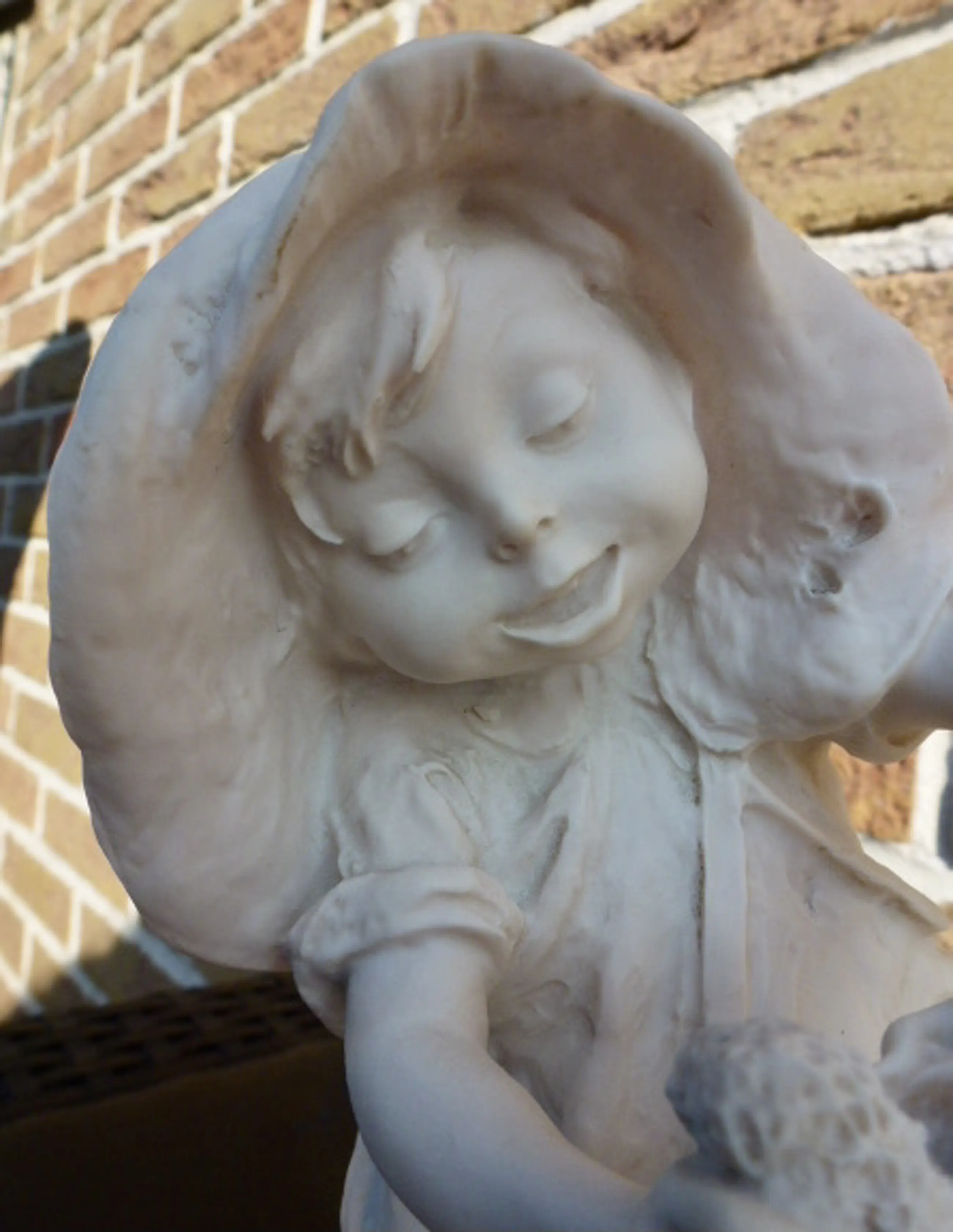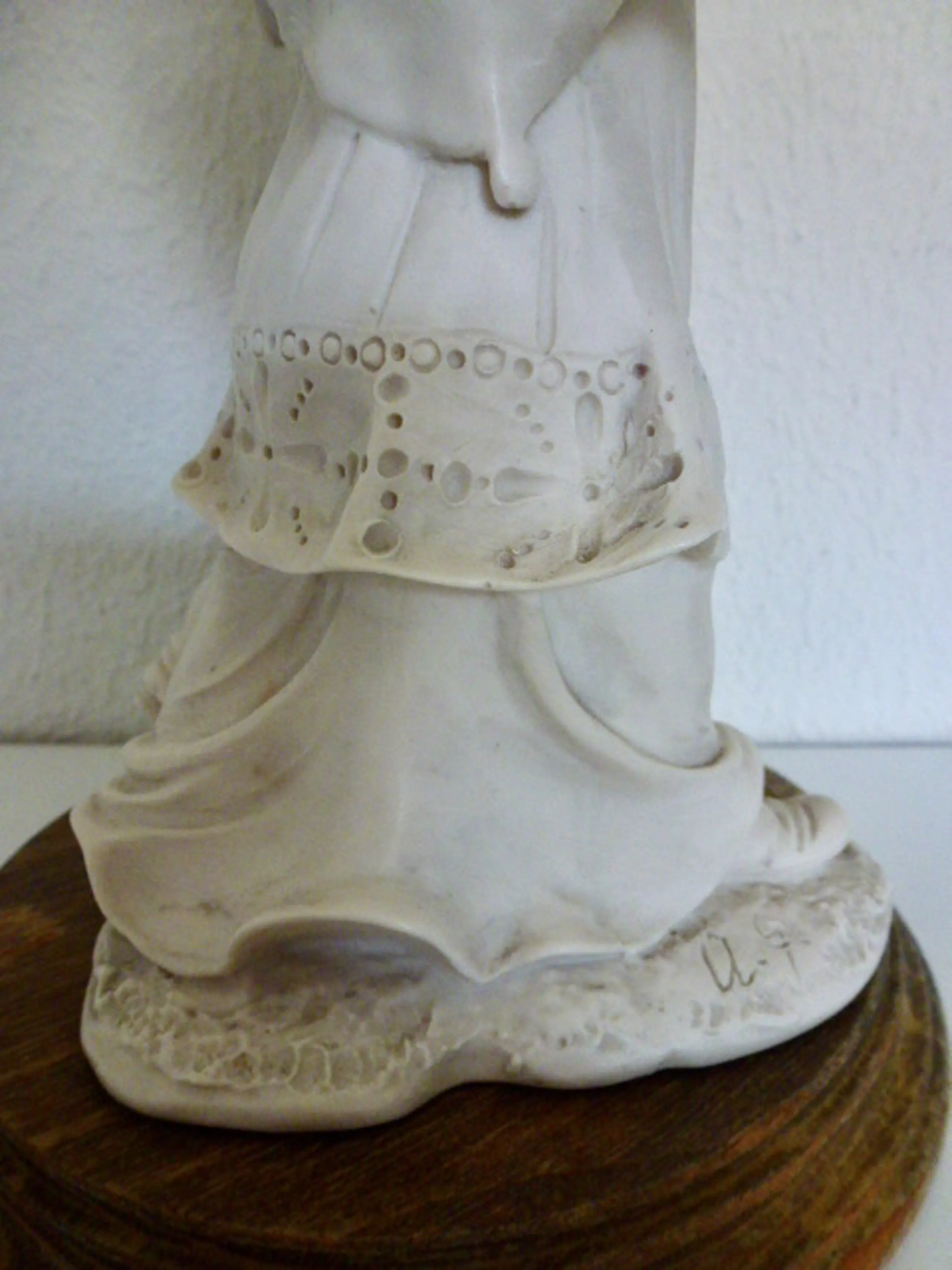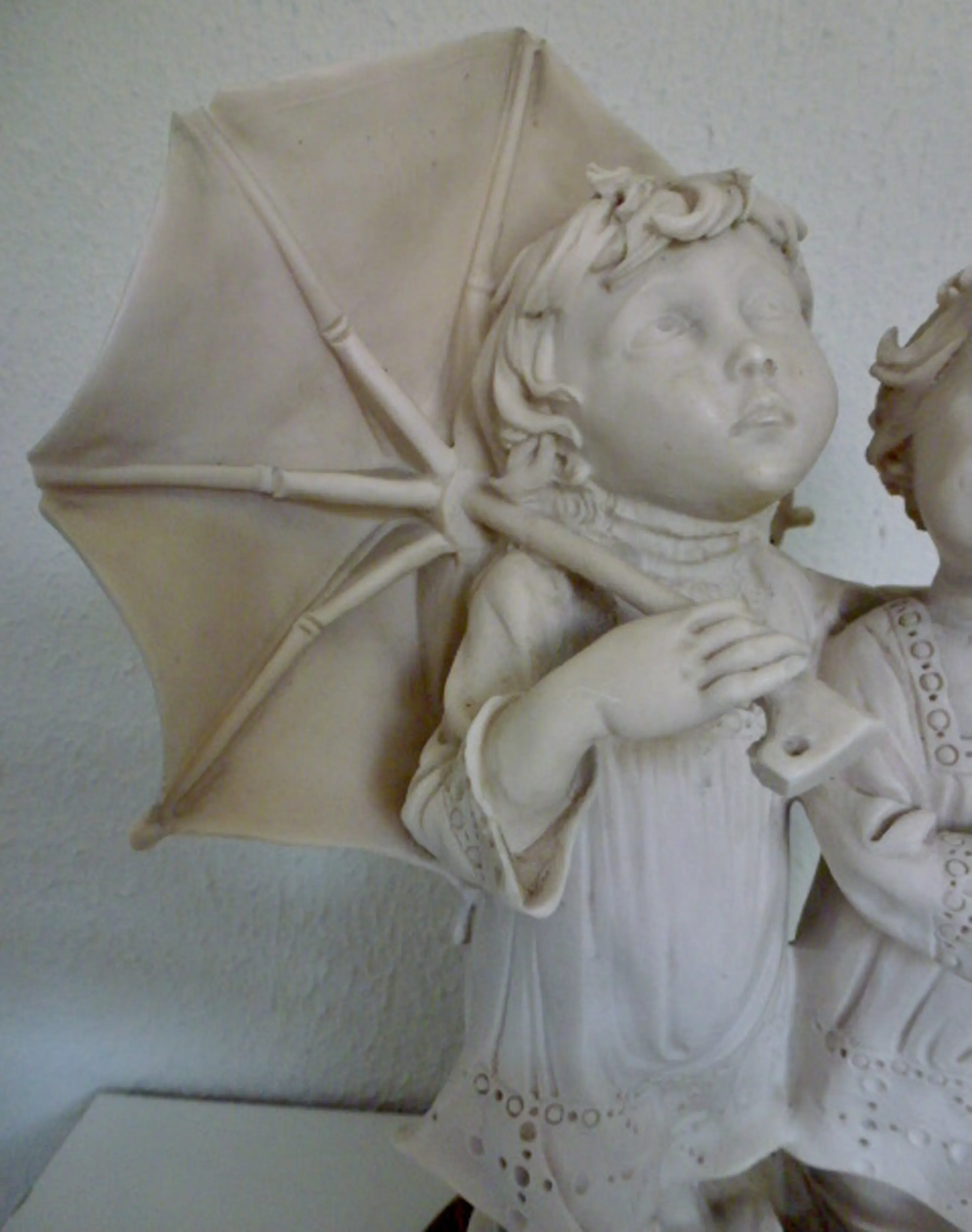 Het beeld heeft enkele miniem puntjes af bovenaan de parasol, niet opvallend, verder is het beeld in een mooie staat.