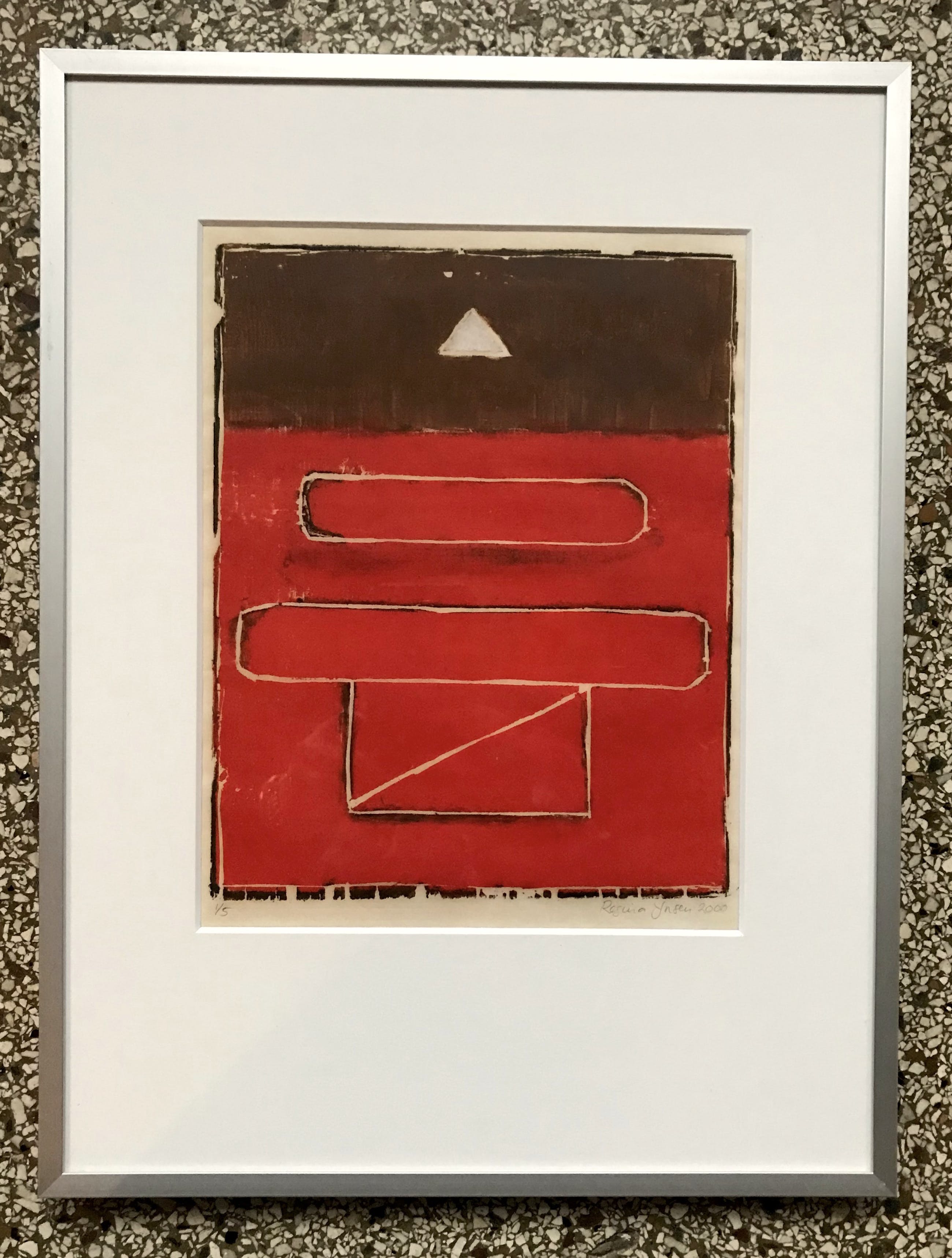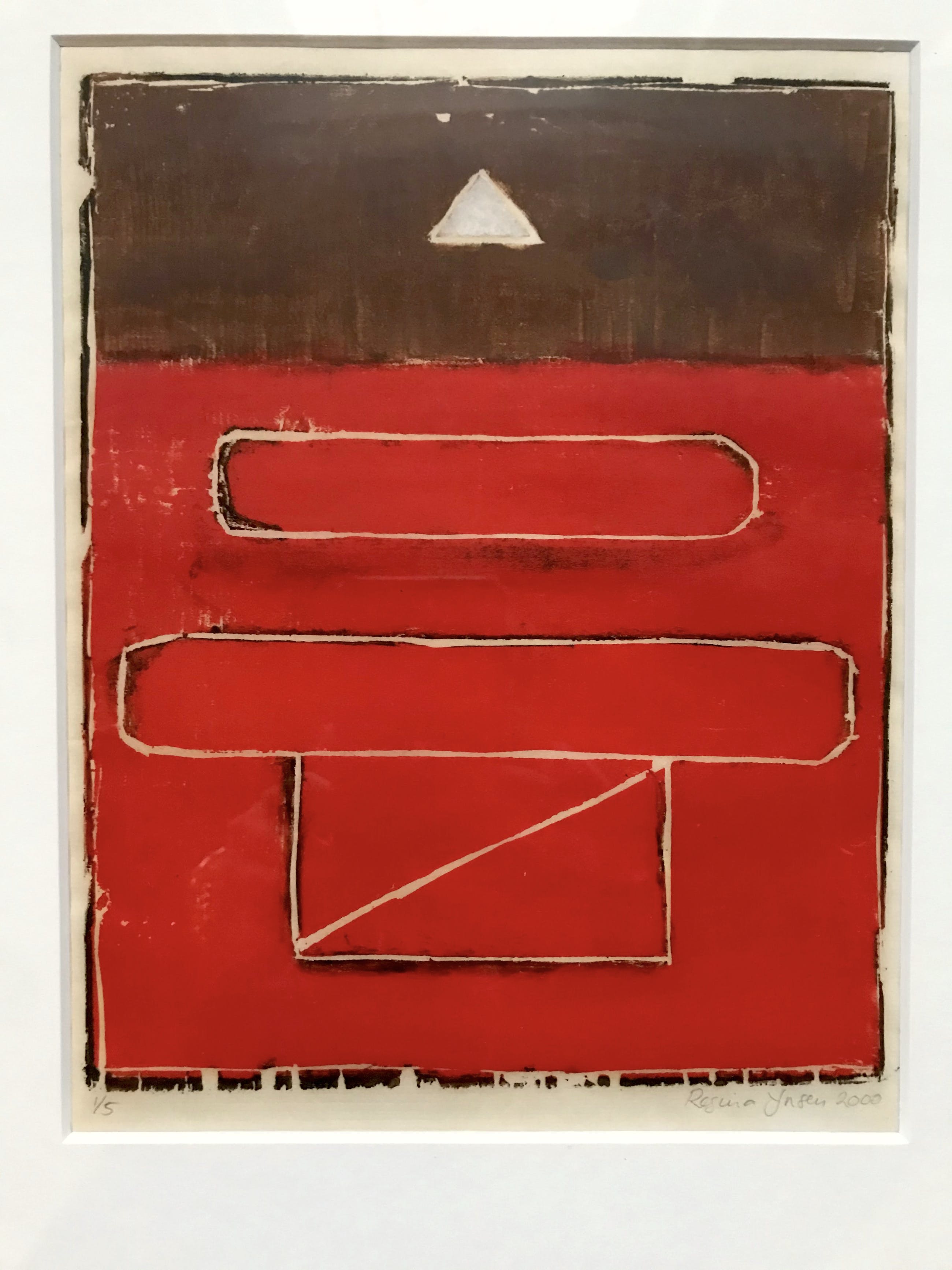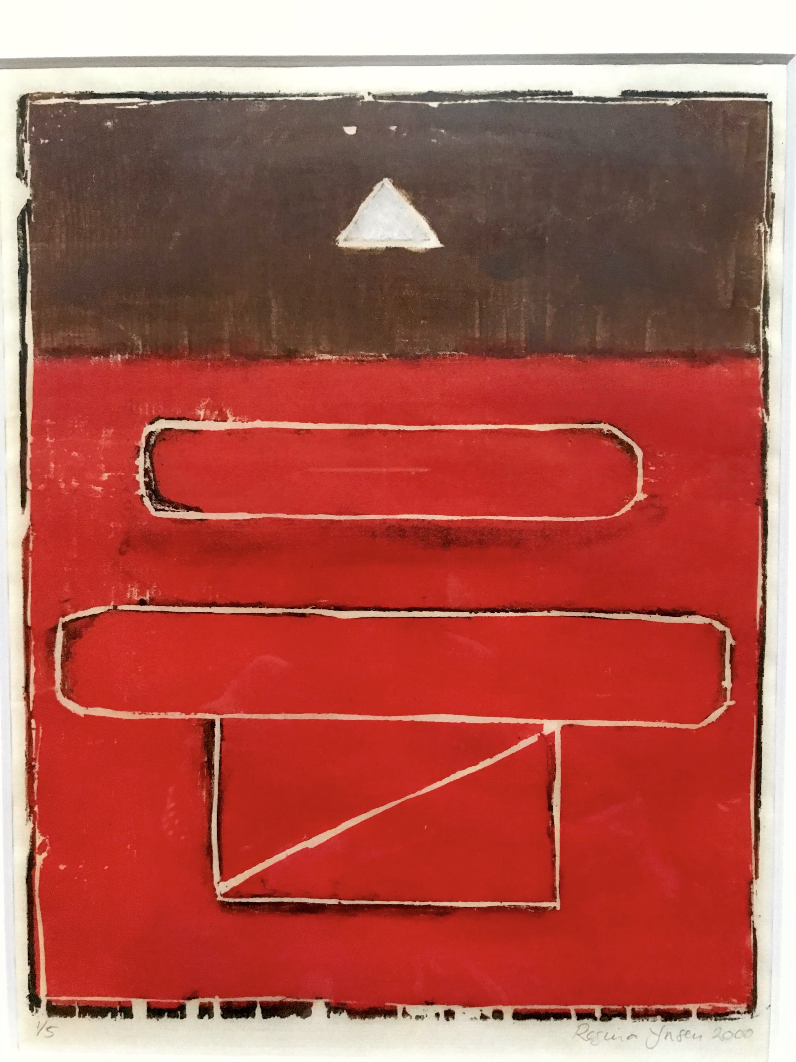 Mooi abstract werk van Ynsen. Ynsen is van oorsprong houtgraveur en schilder. Herkomst: Kunstcollectie Achmea.