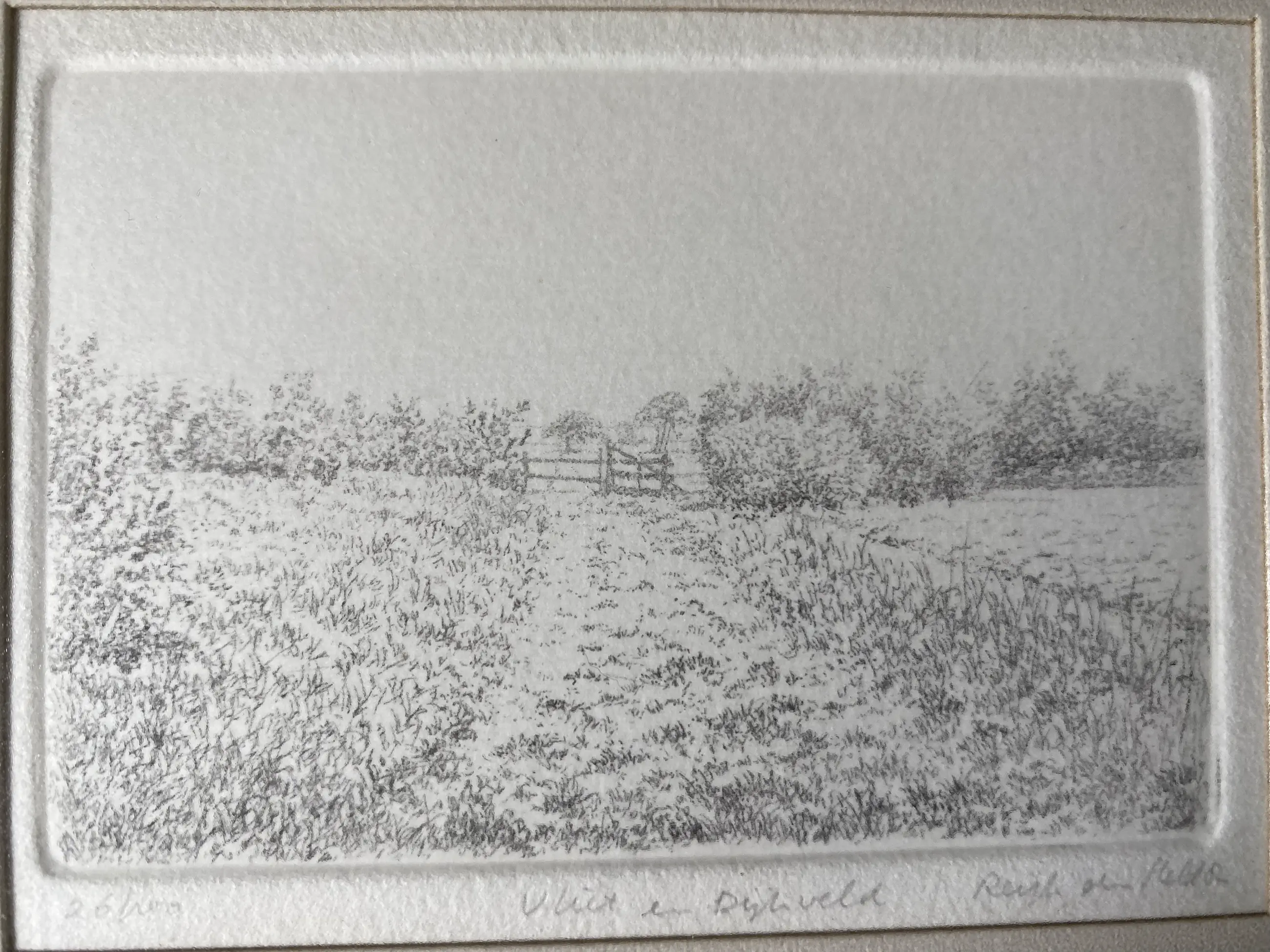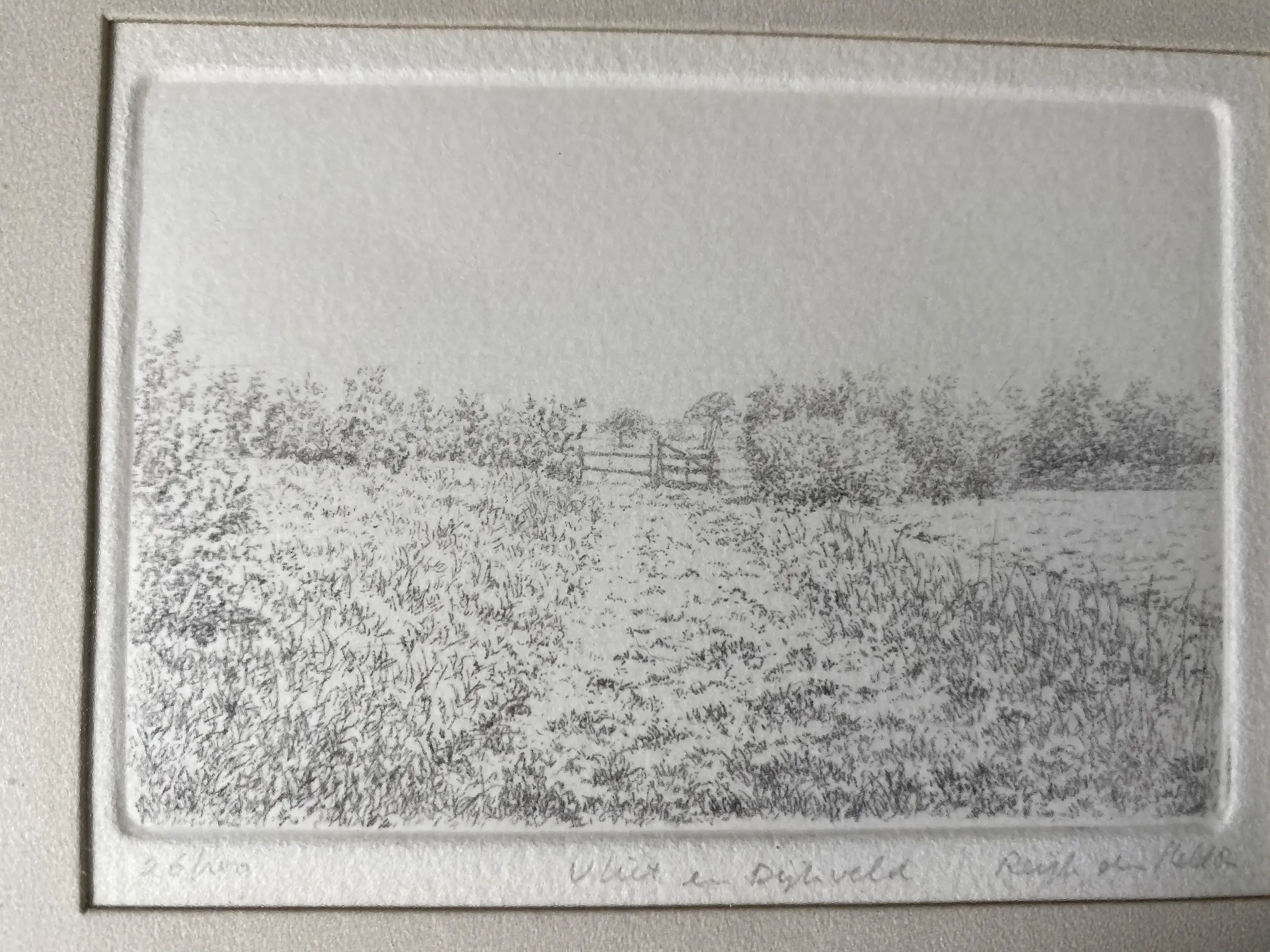 Een werk met lichte en zomerse uitstraling, werk in goede staat, lijst heel eenvoudig.